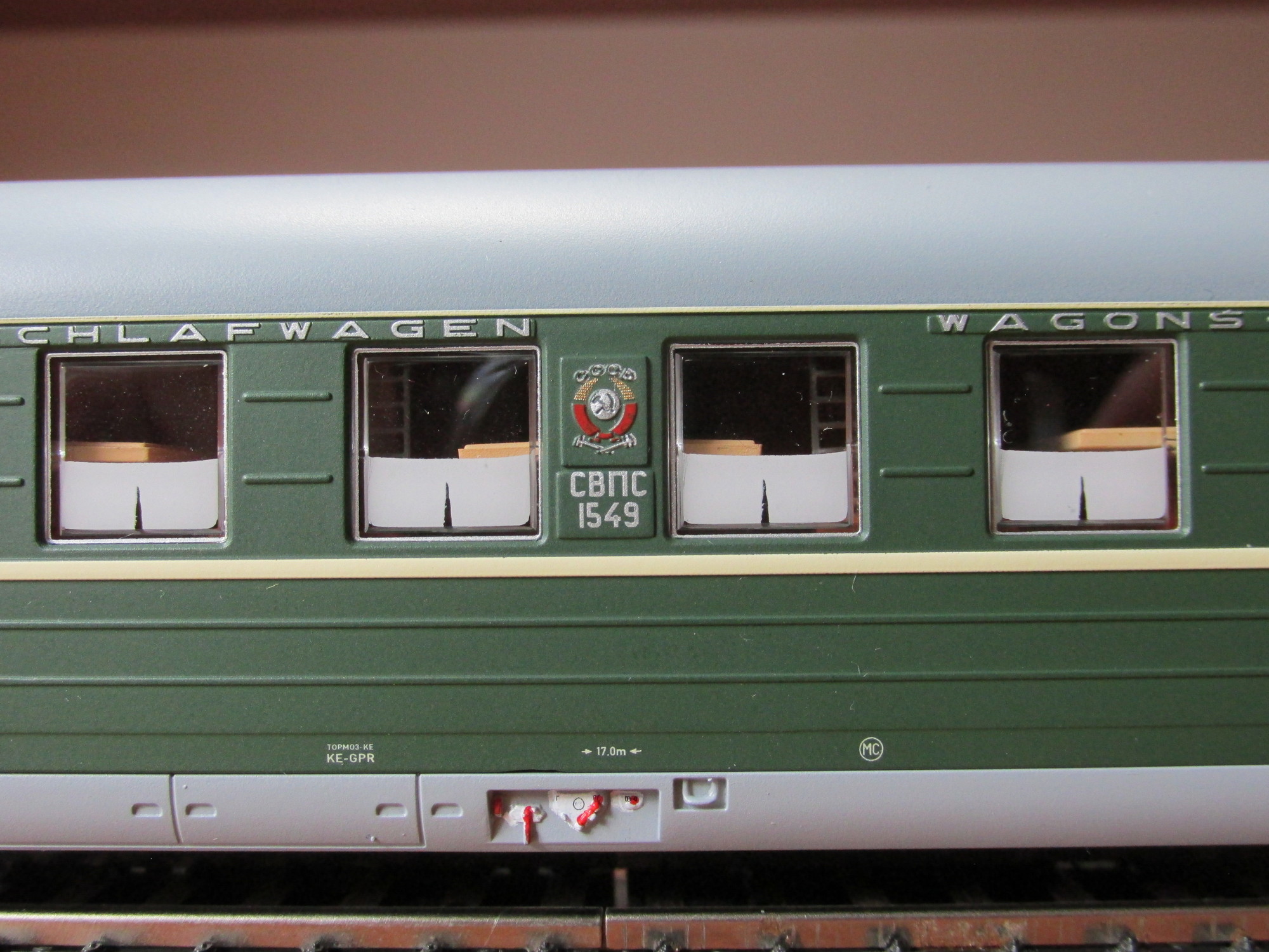 Далее на вагонах 59-го есть накладные цифры, обозначающие класс вагона. Поэтому снова 1549 должен быть с единичками по краям вагона. Я единичку в музее на Рижской смерил, хочется ее в наборе травла сделать.