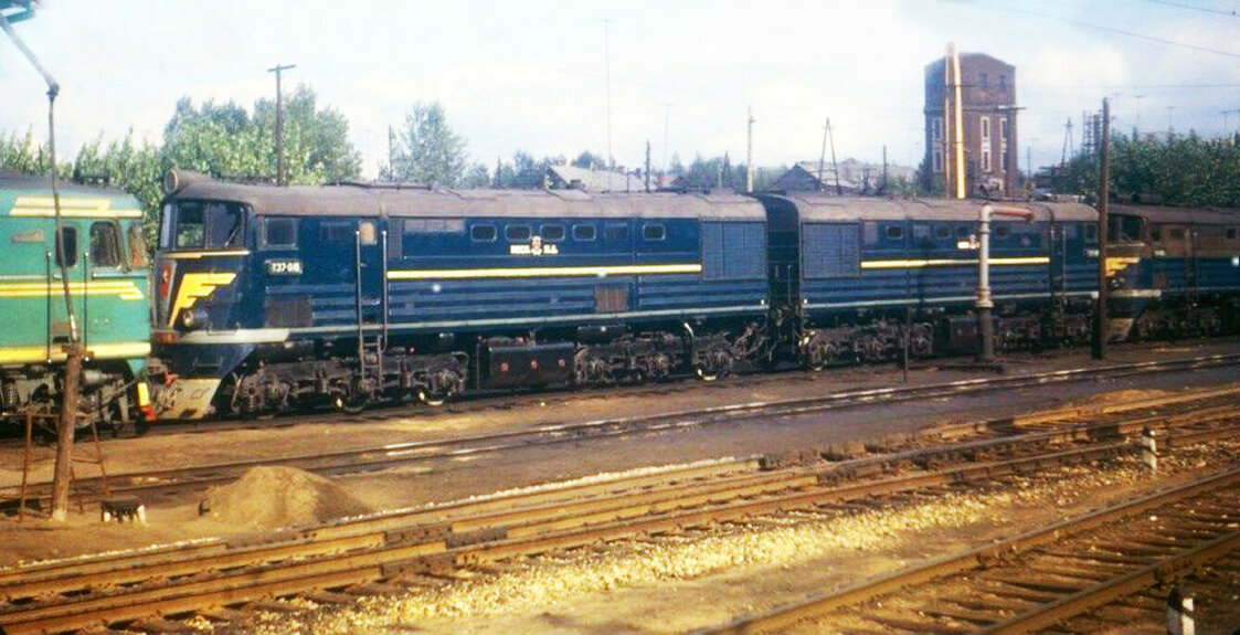 Да, вышеперечисленные локомотивы смотрелись бы с составом из таких вагонов отлично! Ещё ТЭ7 к ним просятся. Это был бы идеальный тепловоз для WLA4 и WLAB4. Нашёл в Сети фото вот таких красавцев ТЭ7-018 и 051 в пункте оборота Можайск (линия Москва - Брест) из тех времён. А какие там ТЭПы ещё стоят! Аж скулить хочетсяivan писав:Юр Саныч, мне кажется, что они не напрягают, вагоны то не только хорошие, но и интересные. Их при возможности и к П36 можно прицепить, скорее всего и ИСу и Сушке, ВЛ23, ЧС2, 2ТЭП60 и т.д. И в отличии от РИЦев того же АКМЕ хоть на себя похожие. Просто появляется затея, чтобы доделать их по возможности. Насчет тележек - разве нам привыкать - все те же РИЦы И от АКМЕ и от Захсенмоделл выпущены на тележках 1435, поэтому приходится выкручиваться, чтобы поставить их на КВЗ-ЦНИИ от ЕТ. Так же и тут. Как-то надо выкрутиться - с тележками. А может кто-то кинет информацию и в АКМЕ о косяке с телегами - может хоть тележки ЦМВ на эллипсах забацают. Можно и самим , переделав тележку от ЕТ Москва-Иваново, добавив на нее противоюзные датчики и при большом желании поменяв колодки на двойные. Насчет циферки класса - можно будет просто в какое-либо травло вложить и единичку и двойку, много места не займет, и прилепить по возможности на 1549. Ну и на другие вагоны, если они появятся.