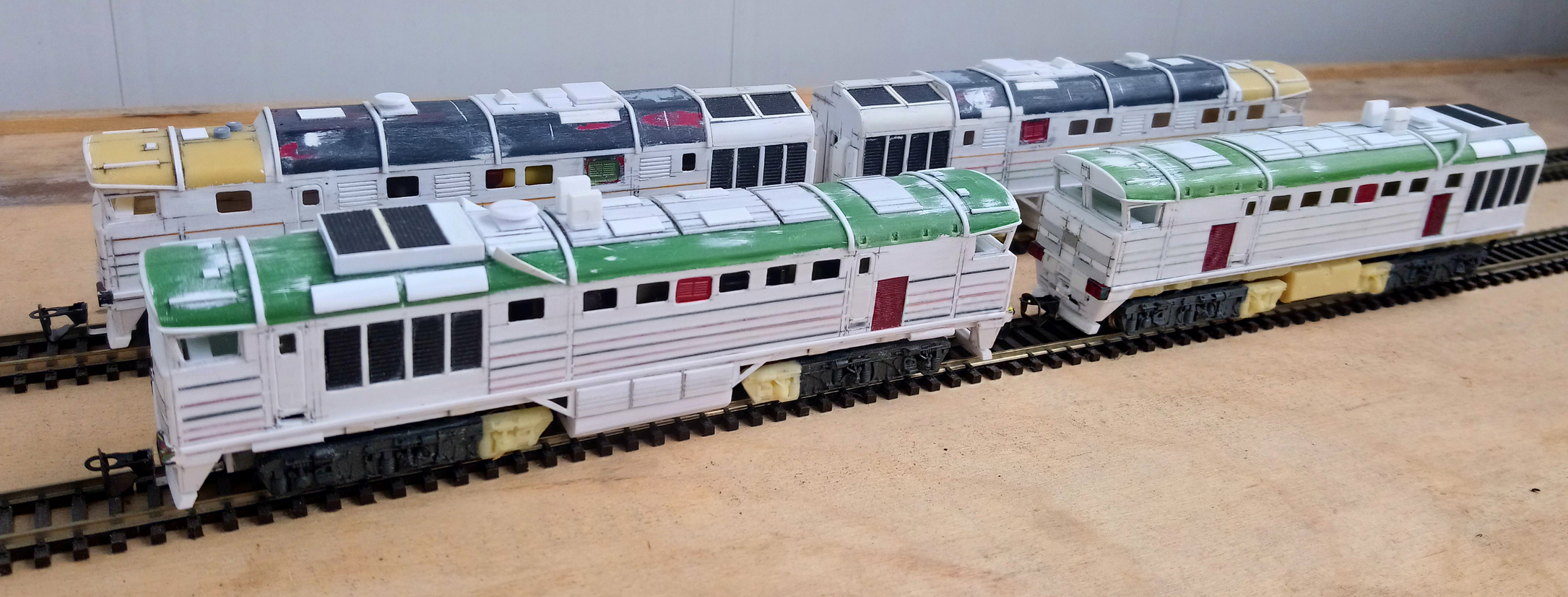 Небольшое обновление. Доделаны две безмоторные головы ДР1А. С плоской мордой - это переделка из ранее сделанной. Привел ее к общему технологическому уровню