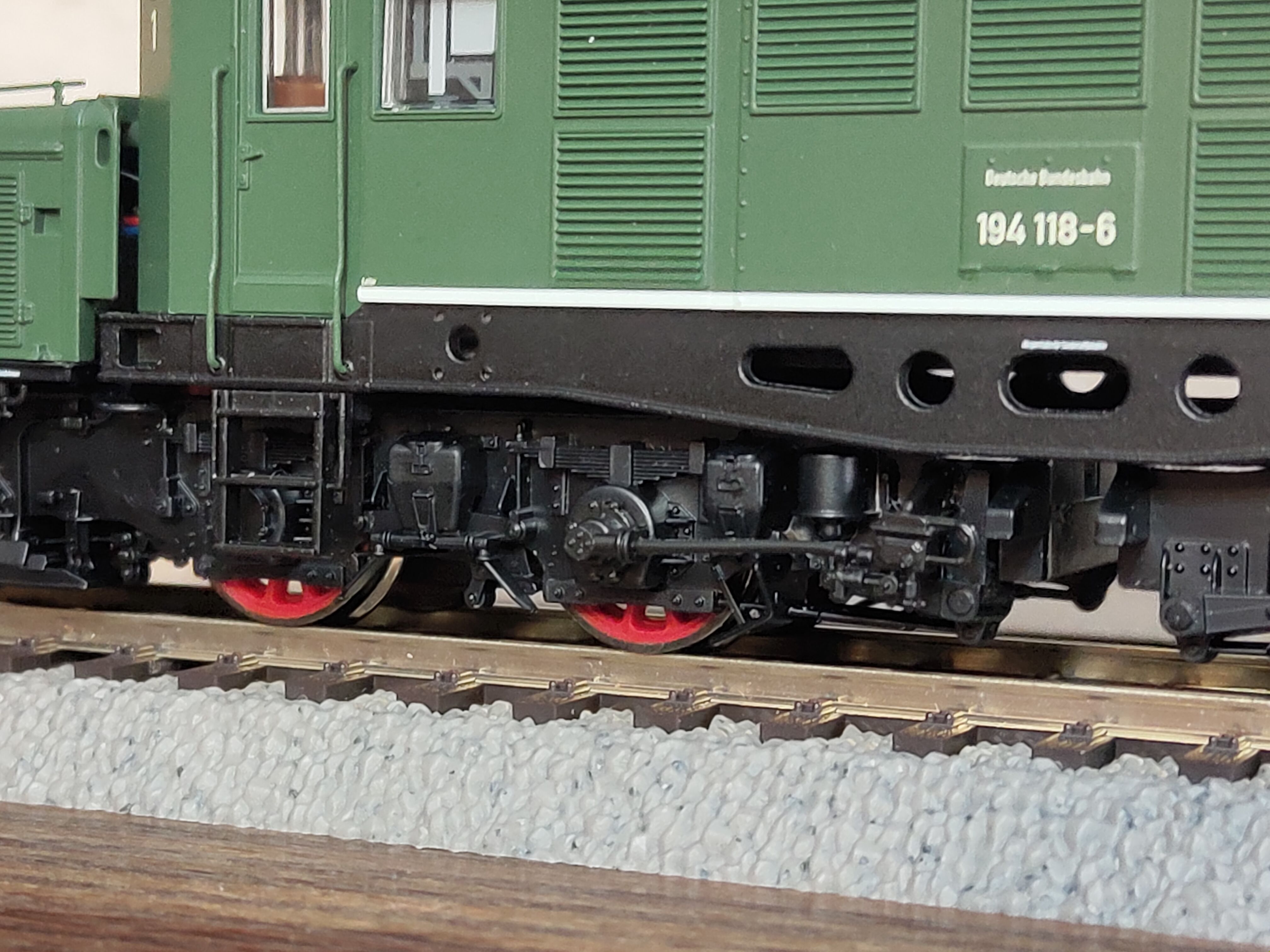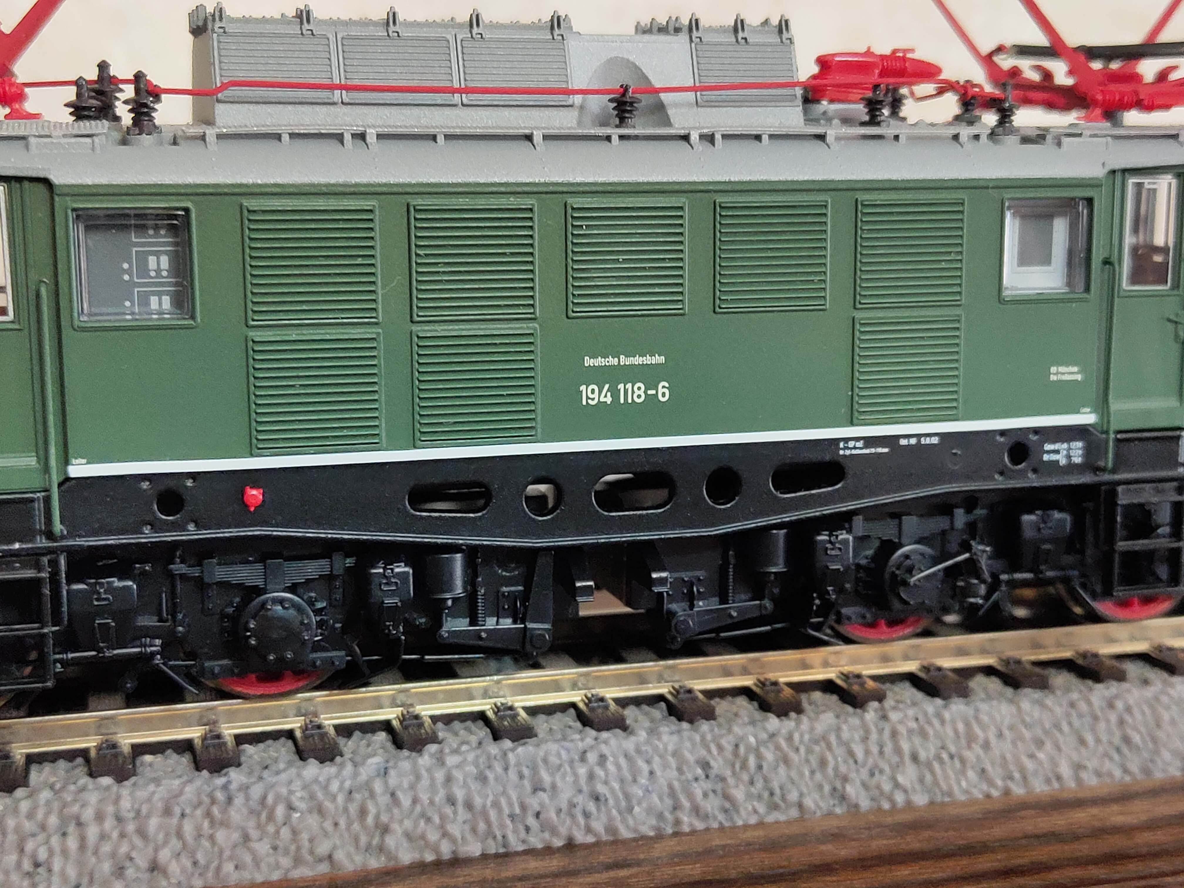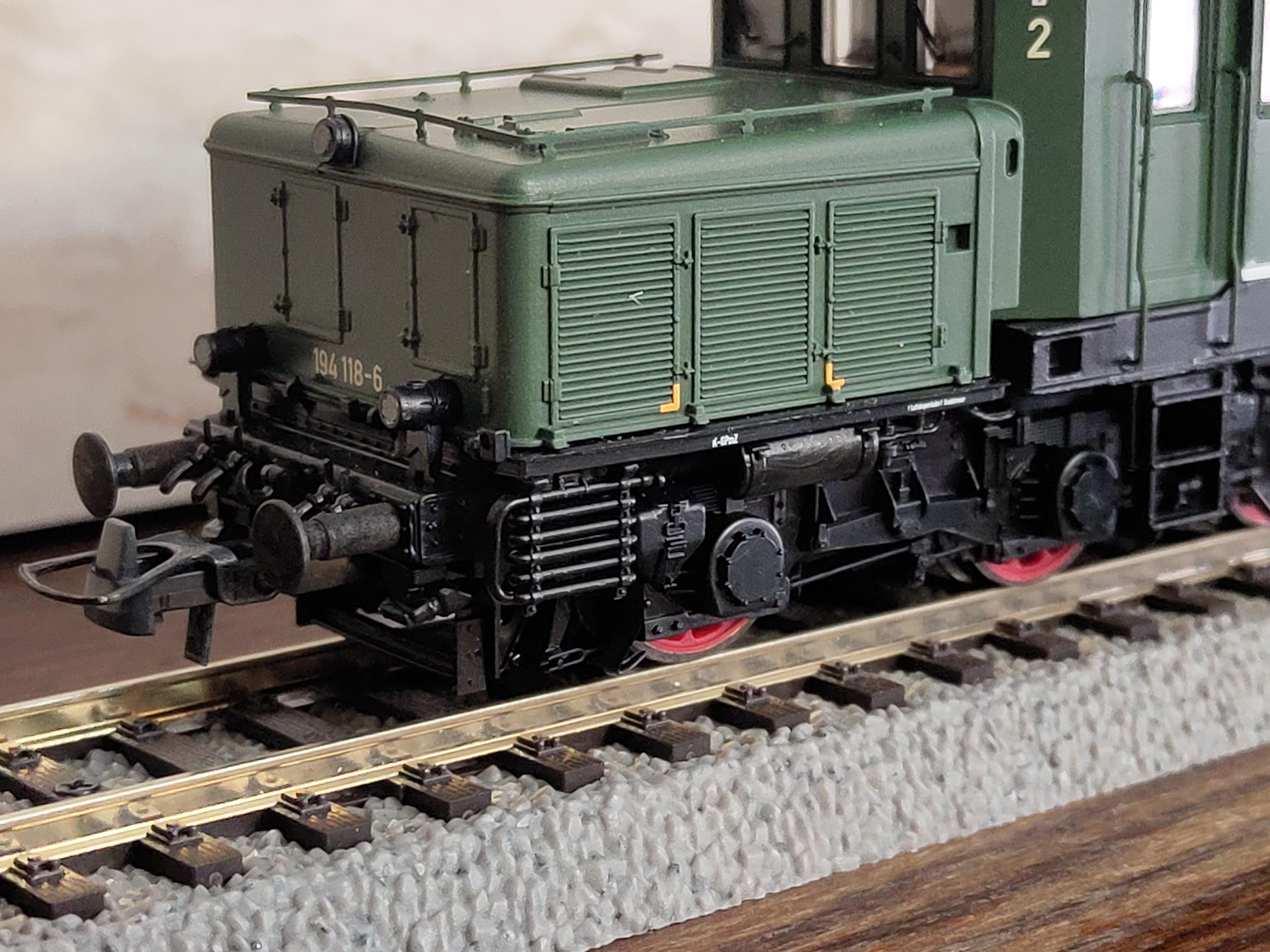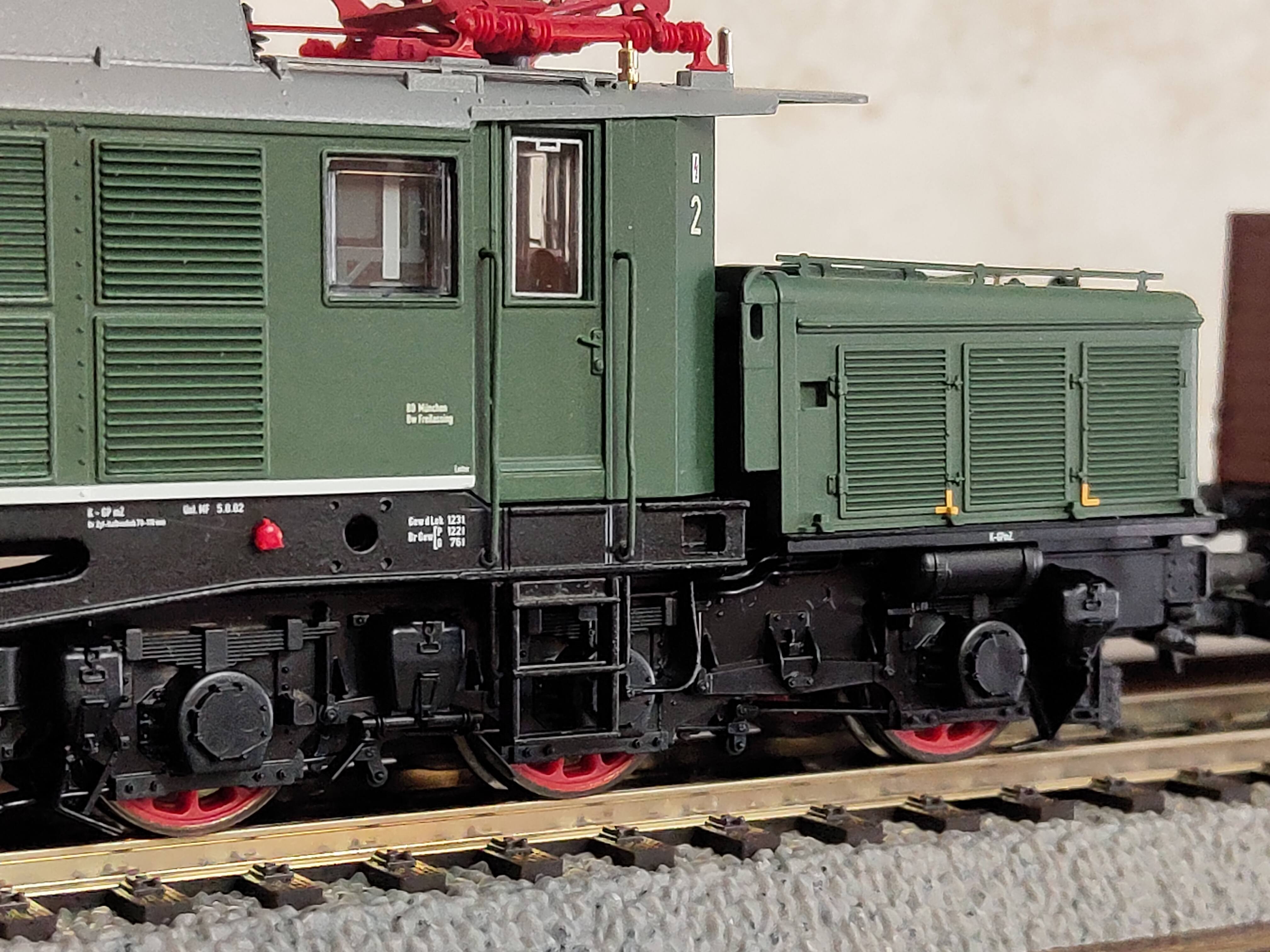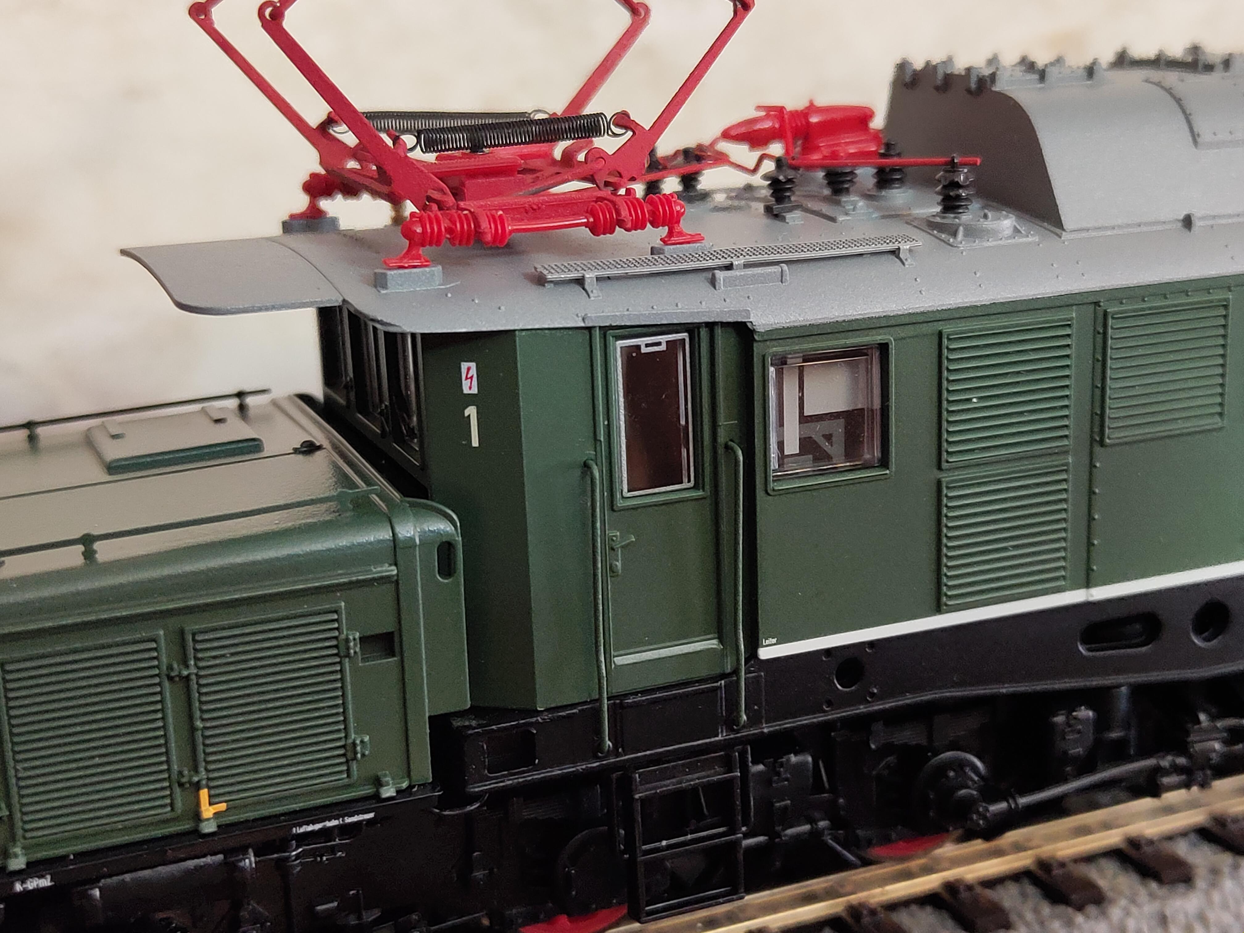 Наконец, фото самой модели в классической зелёной ливрее, хотя и с оригинальными "раллийными" полосами на средней секции. Производитель позиционирует модель, как относящуюся к специальной серии «Edition Freilassing», хотя ничего, что напоминало бы об этом блеском сусального золота, в коробке и даже на коробке не обнаружено. Что искренне порадовало - поручни установленные производителем (сделаны из металла)