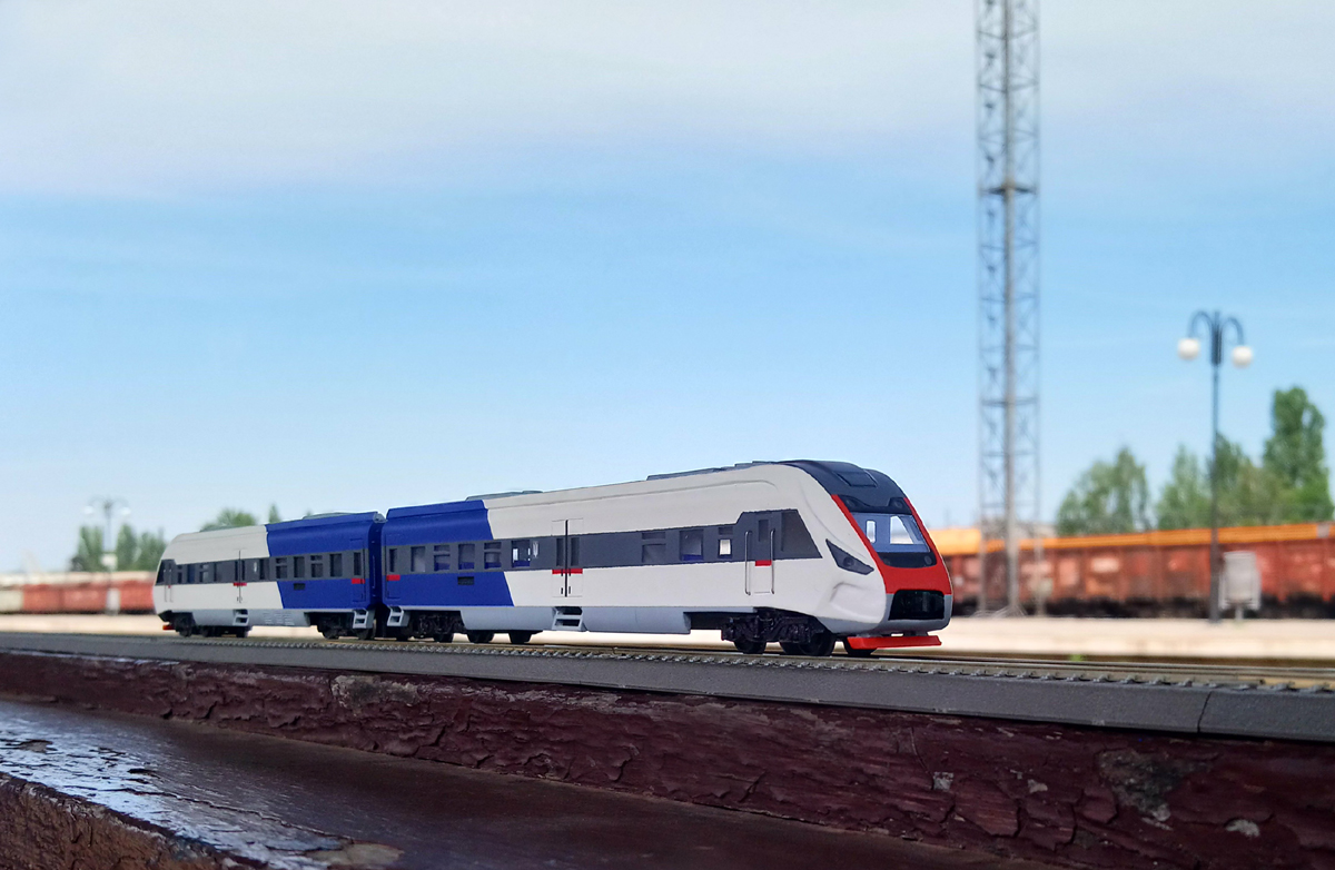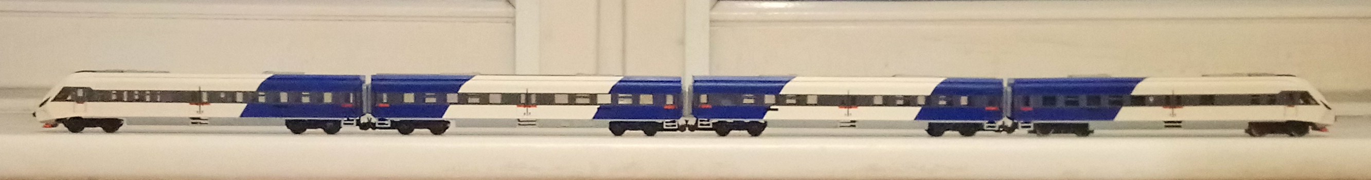 На этот раз даже не знаю, как бы обозвать модель. Это еще не окончательный вариант, но с одной стороны это ДЭЛ01, а с другой - ДПЛ1 (причем как в прямом, так и в переносном смысле :lol: ). Идея была сделать ДПЛ1, но пока делал первый головной вагон, "концепция поменялась" и я решил сделать универсальный состав, чтобы можно было сформировать и ДПЛ, и ДЭЛ. Кто знает прототип ДЭЛ01, сразу увидит не совсем точную крышу. Но поскольку это не единственная неточность, то решил сделать так. В модельном составе будет лучше смотреться :) . В перспективе планирую доделать еще вагонов.