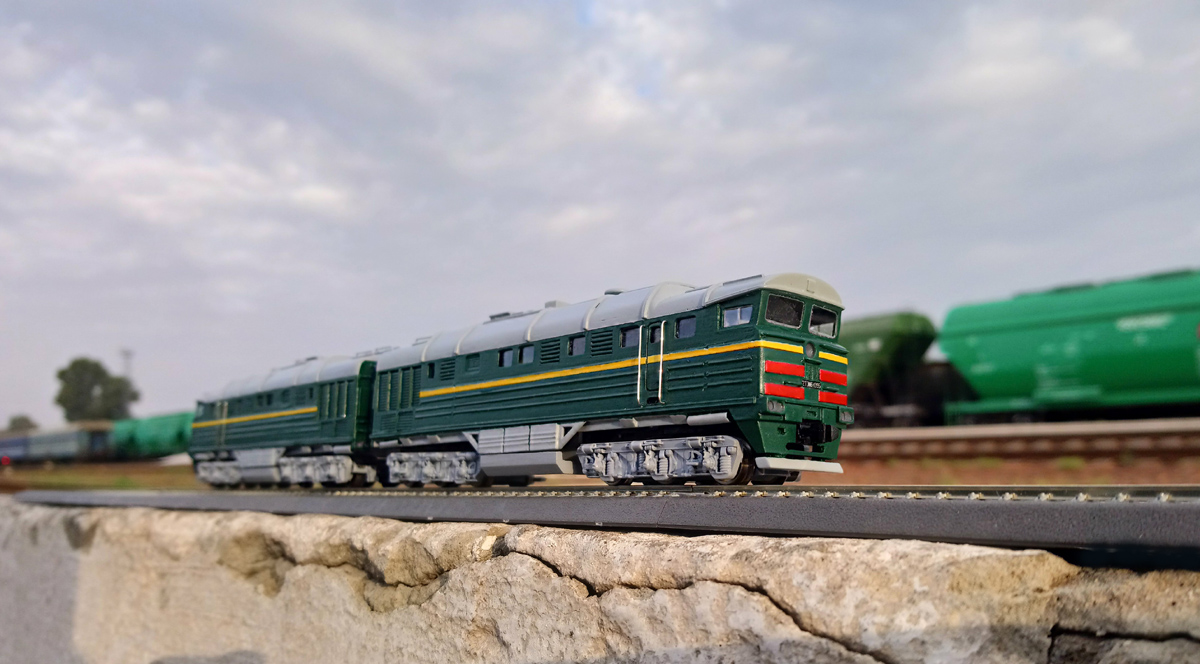 Вот новая фотосессия появилась. К ДЭЛ01/ДПЛ1 доделан промежуточный вагон. 2ТЭ116 и ЧС4 новые. Тепловоз получился трудной судьбы: около двух лет лежал почти в готовом виде, пережил две ходовки, но волевым решением был таки покрашен из-за приближающейся возможности выгулять его в родной среде обитания :)