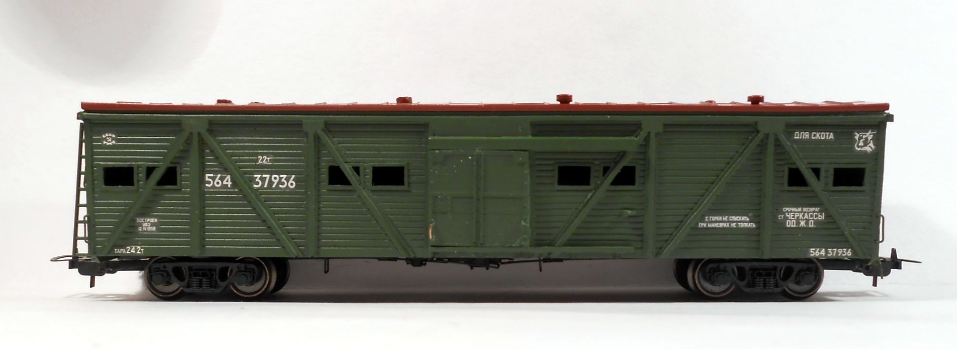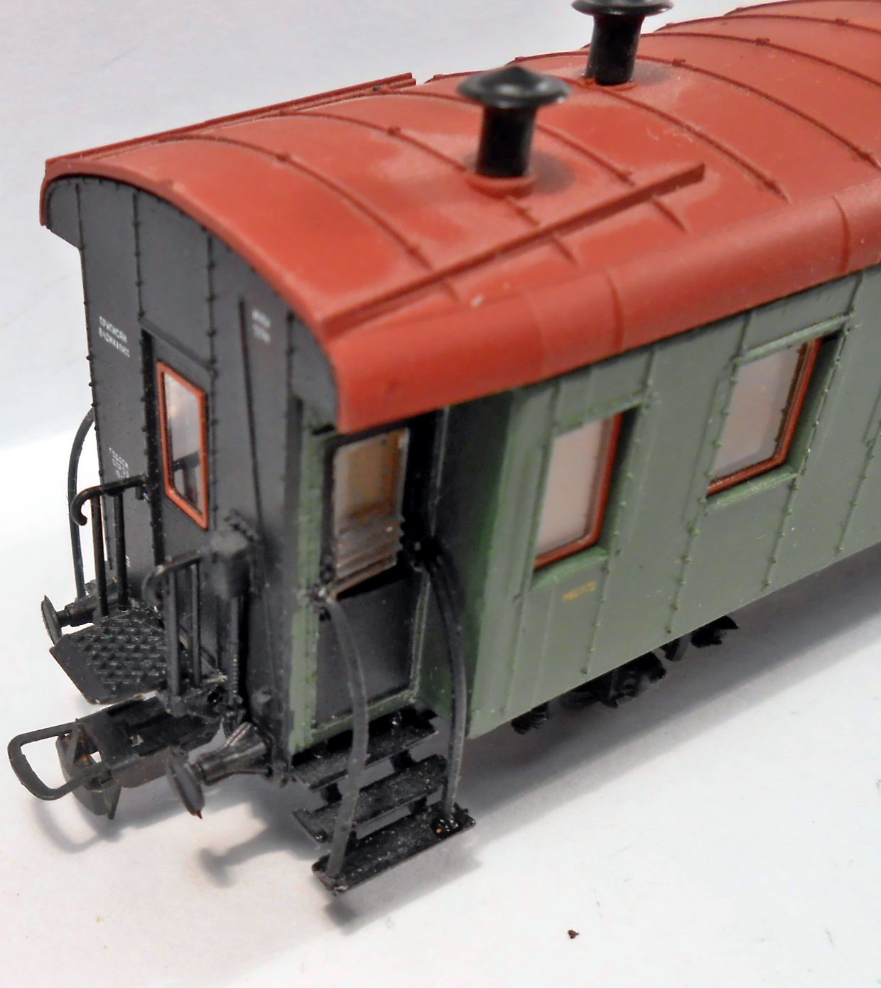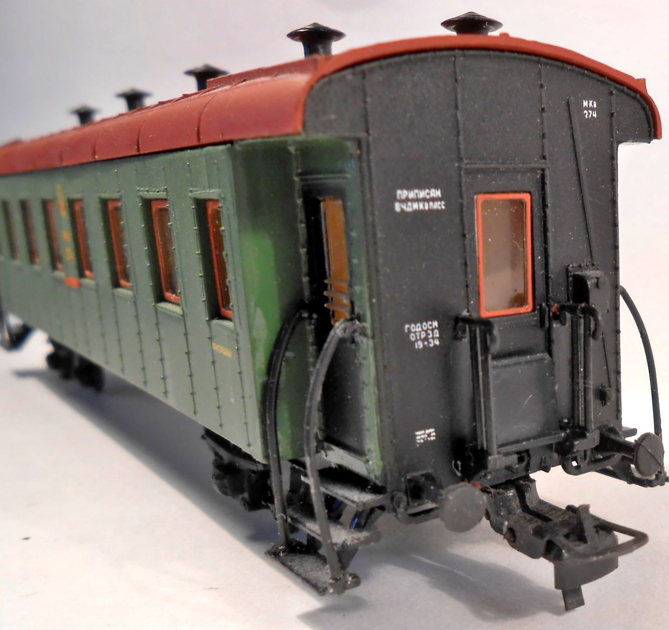 Из доработок подкрасил решеточки на окнах и сделал такие же в торцевых дверях.Еще на фото видно
