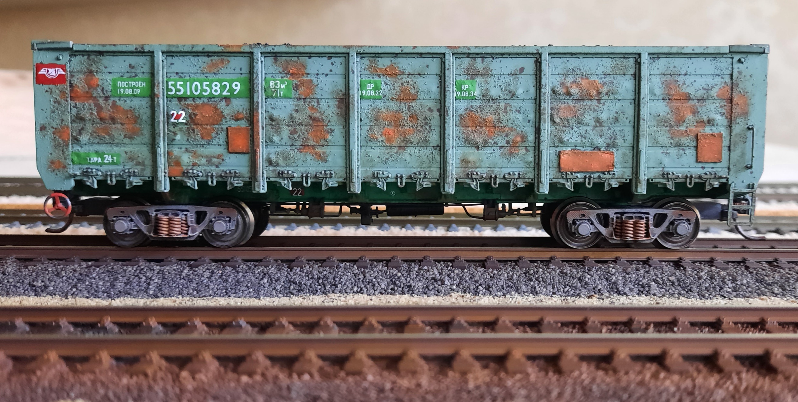 Під цей вагон тепер доведеться зістарити колії, підсадити трави та розкидати сміття на промзоні, бо на відносно нових рейках не виглядає...