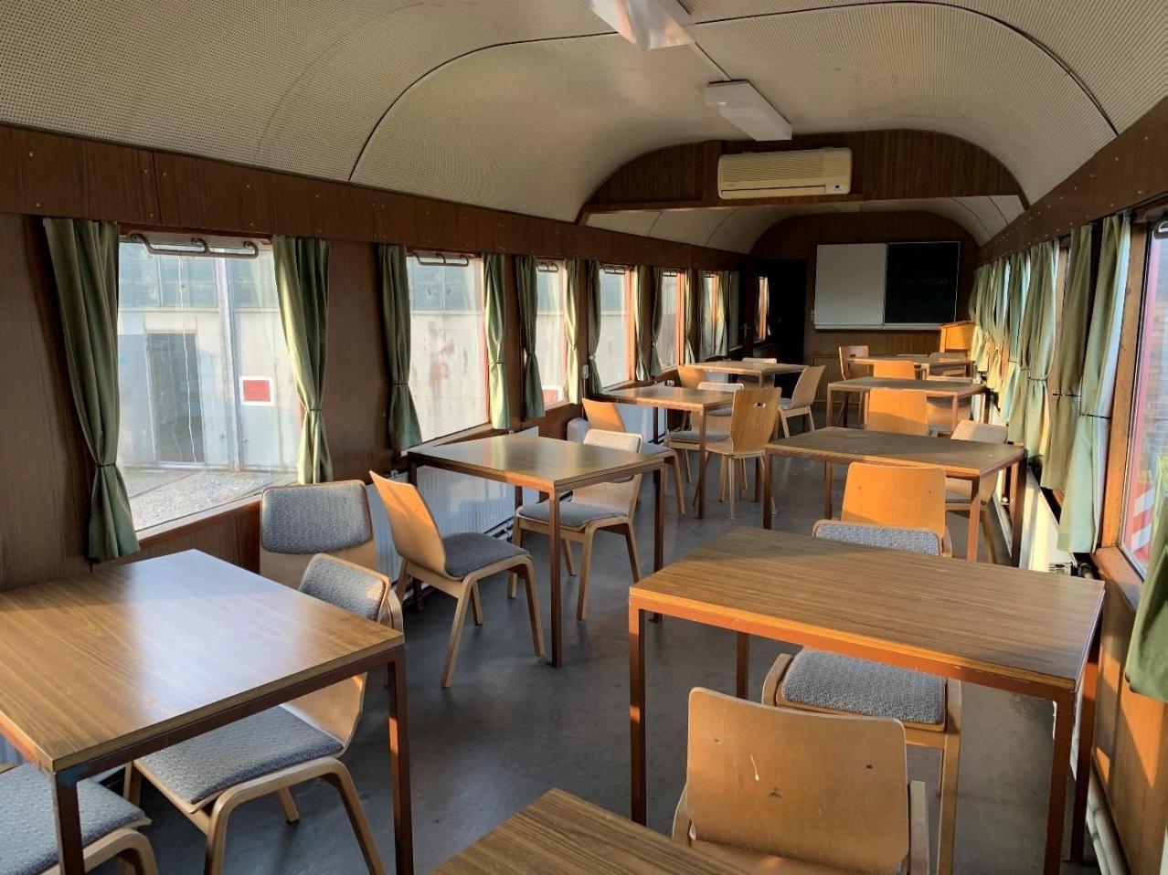 "Тот, кто хоть раз был гостем на сайте, наверняка помнит «учебную машину» БД, которая долгое время стояла на платформе 22 в машинном депо. Это более ранний пассажирский вагон типа 341 с номером 6080 9911 018-1, который КБ распотрошил и переоборудовал много лет назад для учебных целей. В то время была установлена система водяного отопления на масляной основе, а также кондиционер. Столы и стулья вместимостью до 30 человек, классная доска, кафедра, различные встроенные шкафы и отдельное спальное и кухонное отделение с холодильником.