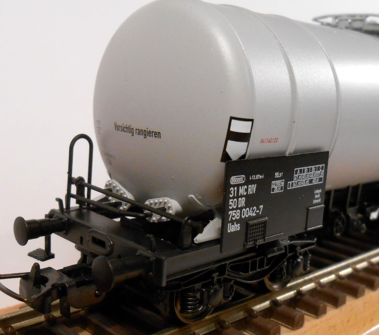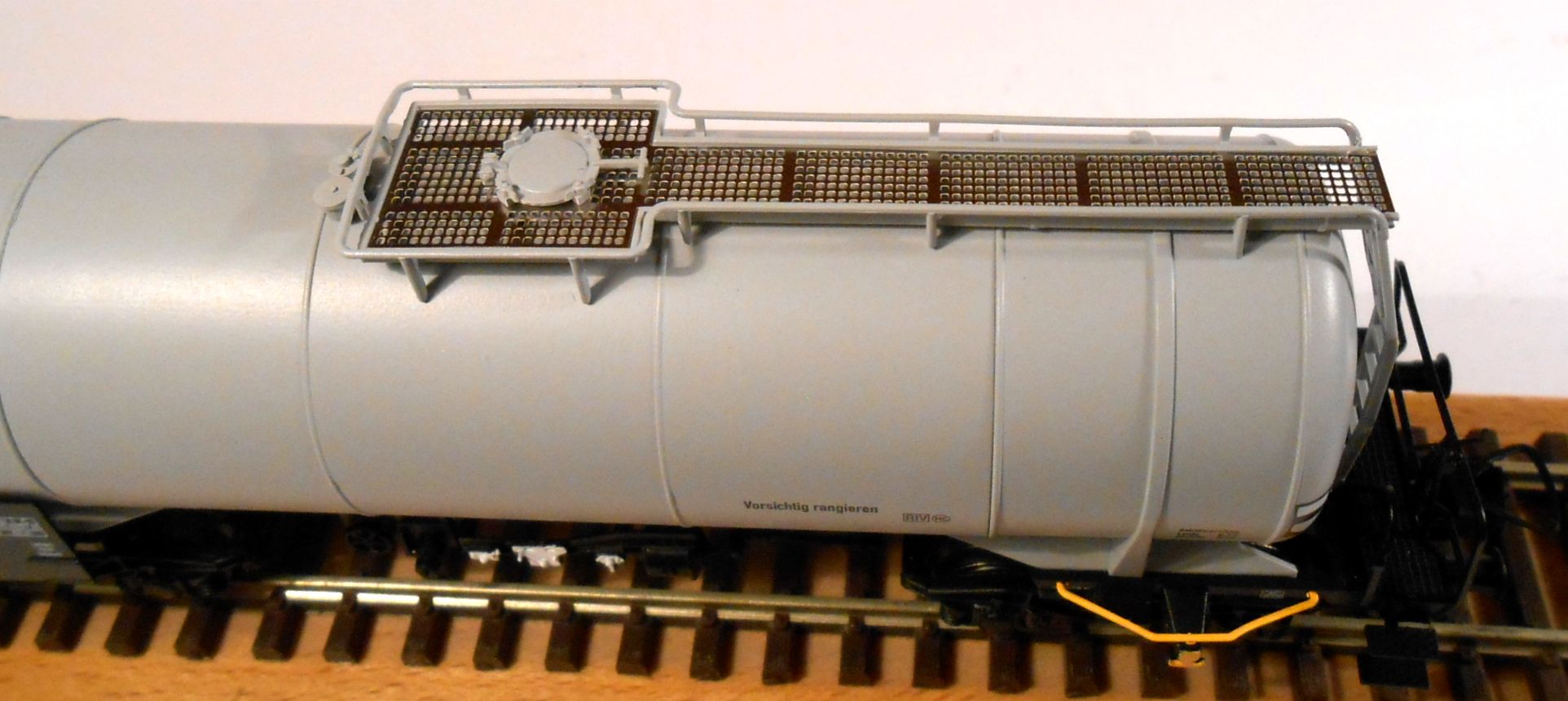 и тяжелых масел.Достаточно детально изготовлено тормозное,включая тележки. Сам вагон довольно тяжелый,до 200гр.Колпары темненные с прототипичным диском.