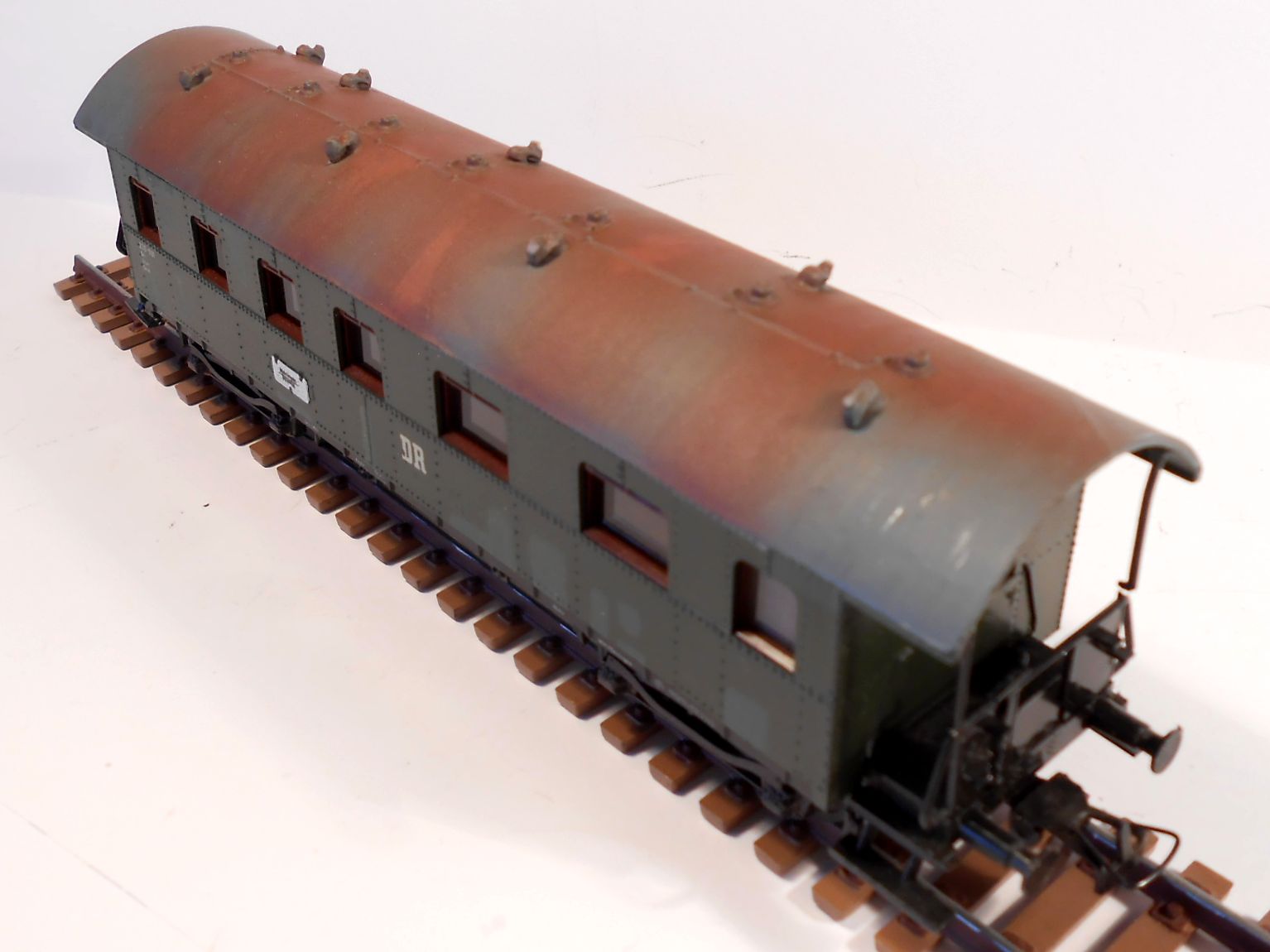 Весьма раритетнейший вагон.Достался убитый,но сохранивший окрас и надписи.