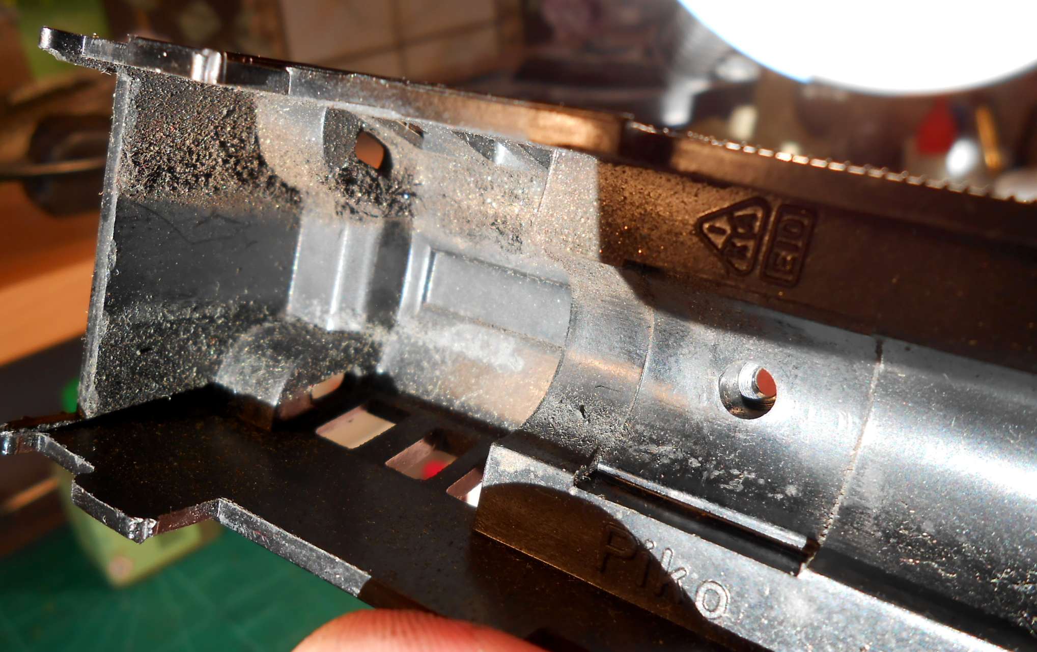 Приятно было с ней работать.Механическая часть выглядит так. Правда я верил что модель практически не катанная за 60 лет,пока не разобрал.На фото стружка