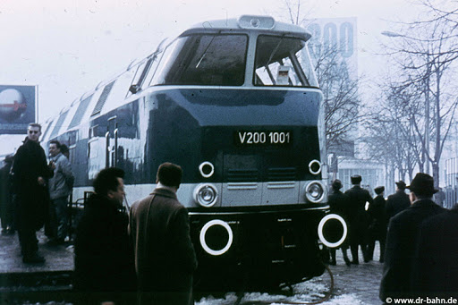 Оказывается, этот лок был синий, и именно с таким лобовым стеклом. На выставке в Лейпциге, в 1965-м году. Нюанс был в номере, который на время мероприятия сменили на V200 1001. Был ли он в работе в таком окрасе - вопрос открытый. Немцы считают, что скорее всего нет. Вместе со стандартной ливреей появилось и другое лобовое стекло (видимо, более практичное при ремонтах или нюансы с безопасностью какие-то - точно узнать не удалось).
