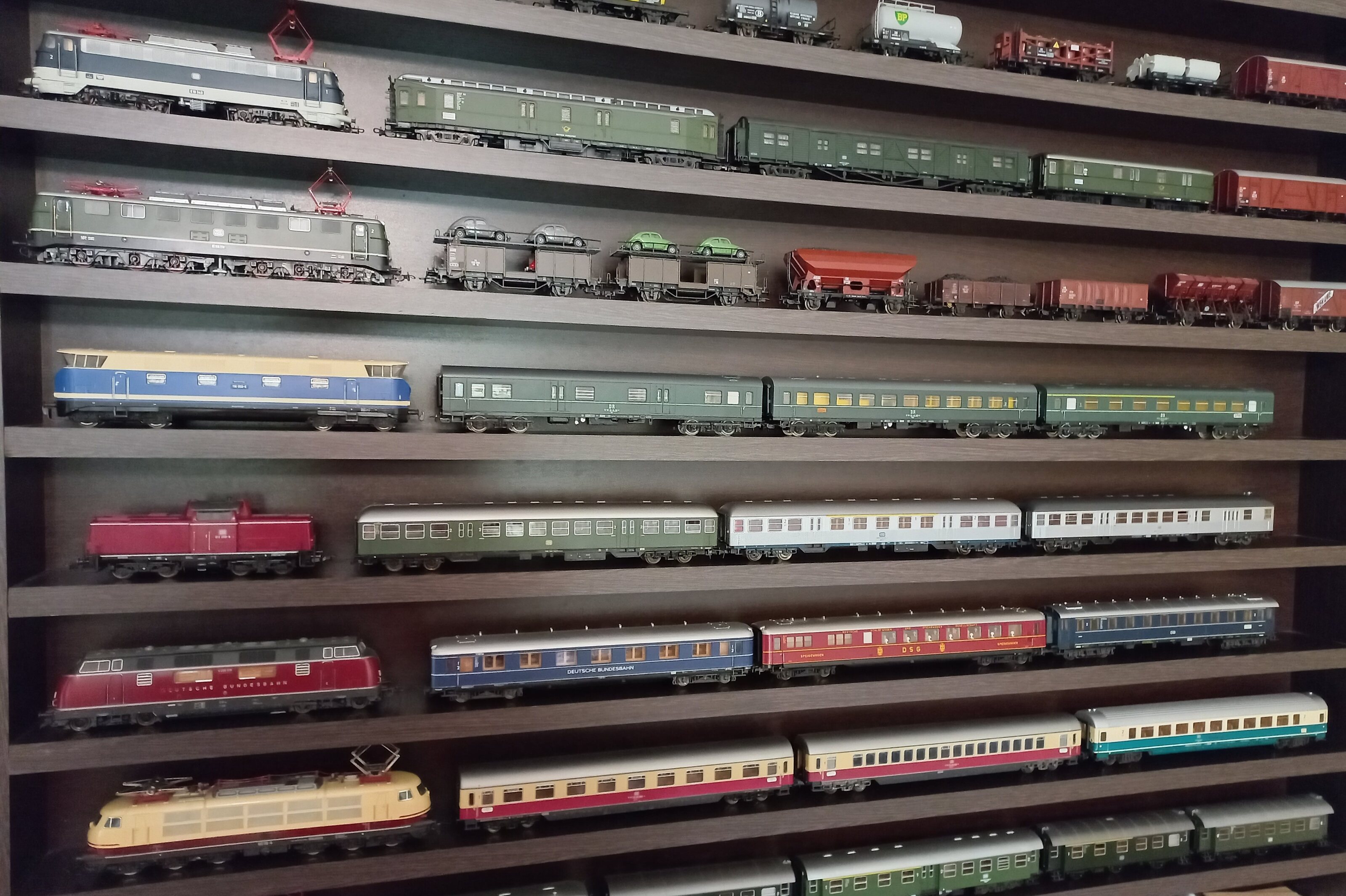 Короче говоря, модель в целом правильная, однако номер не из той оперы. На зарубежных аукционах попадались модели с корректной выставочной маркировкой. Как уже писал, машина нравится именно в этом цвете, потому на историческую достоверность забил. Тепловоз приписан к Дрездену, состав подобрал "Дрезден-Берлин", ГДР-овский аналог "Интерсити" (вагоны - старое "Пико", думаю большинству хорошо известны). Полноценного поката пока не было, но плавность/шумность можно заценить тут:
