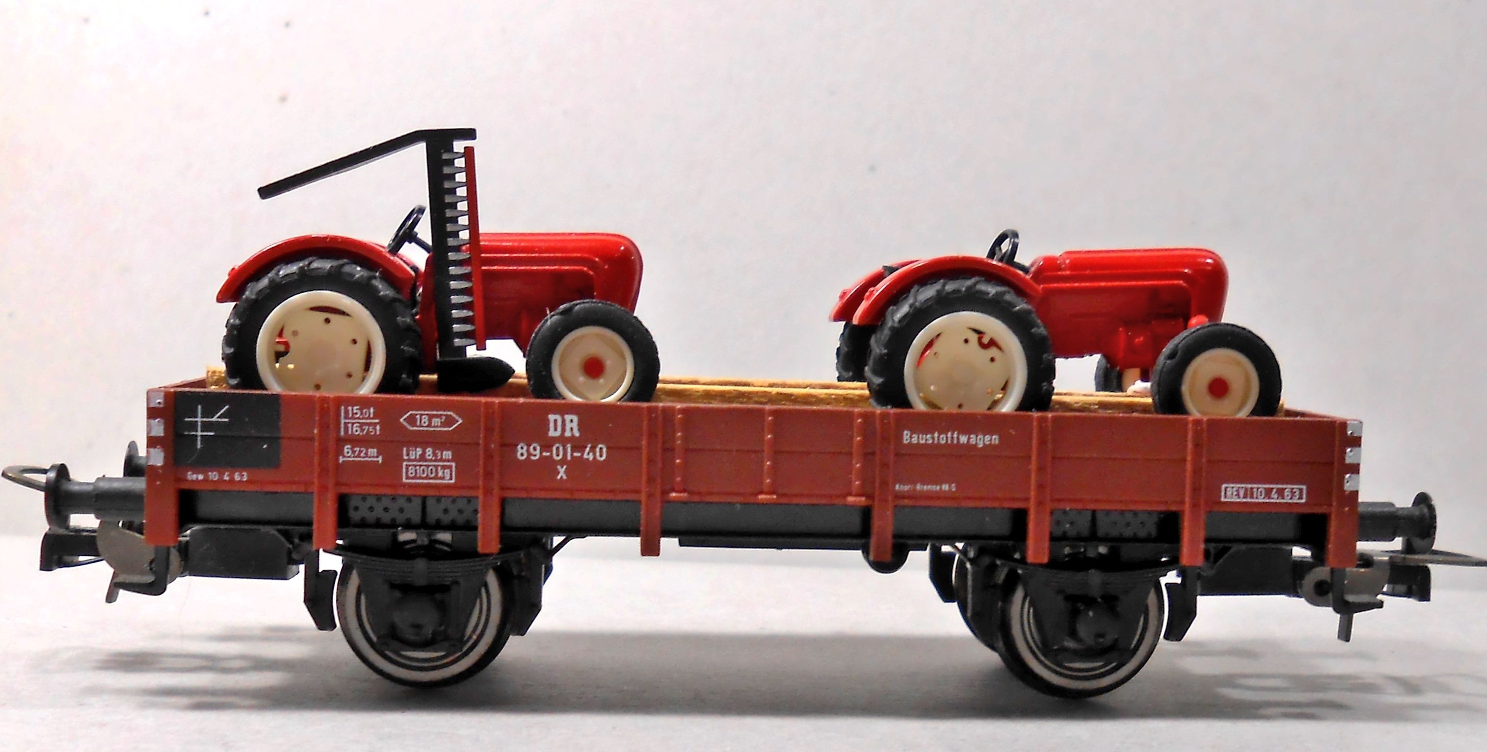 По вагонам пара термосов от Лилипута и платформа с сельхозтехникой.