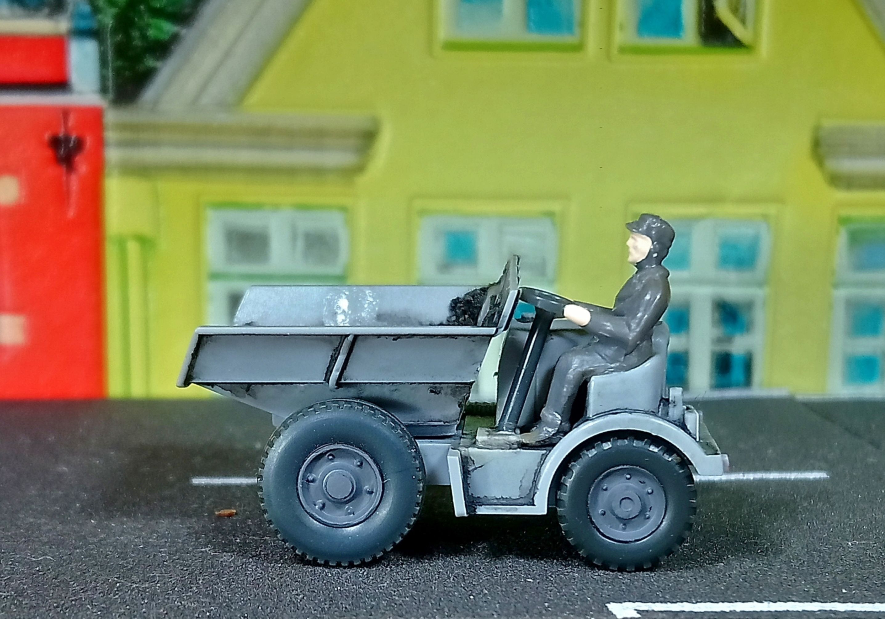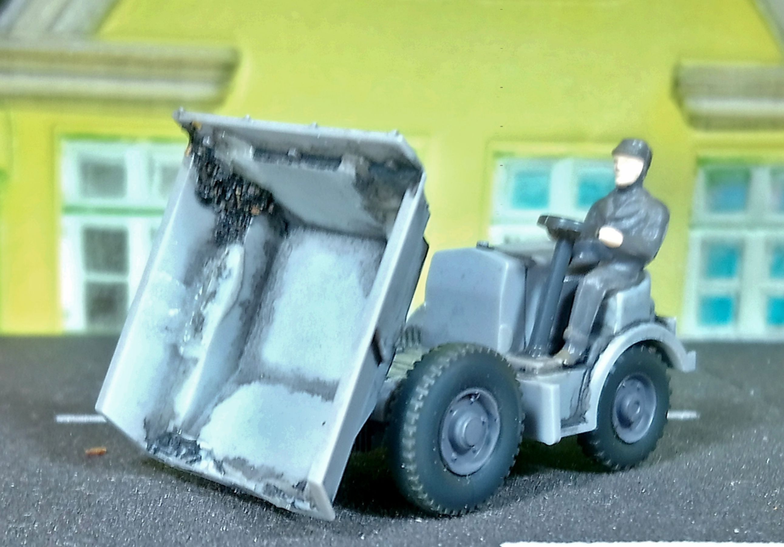 Пришлось восстановить и завысерить.Будет участвовать в угольной разгрузке на макете. Из рельсового транспорта вот такая необычная дрезина от Jouef.Из примечательного по конструкции