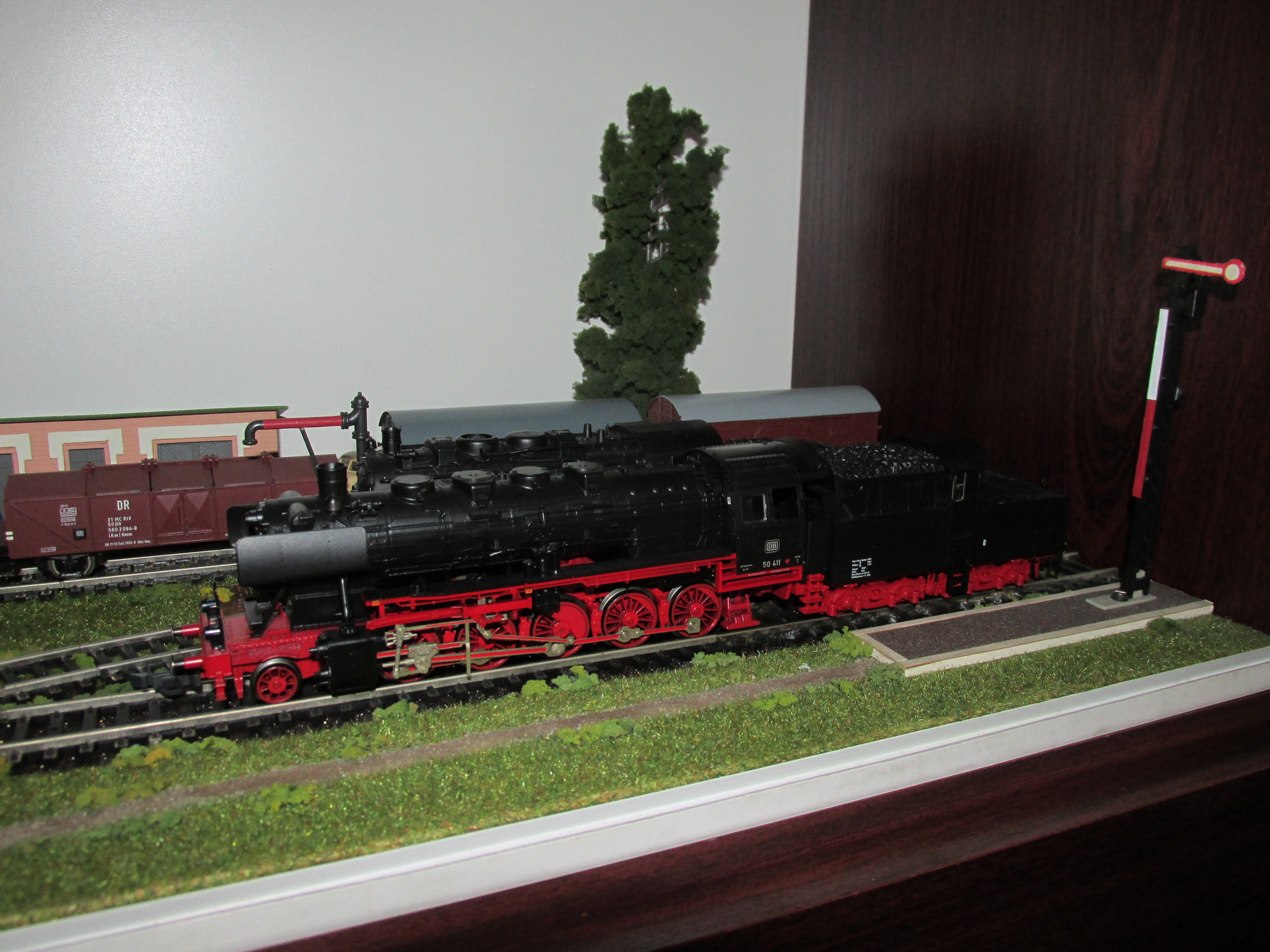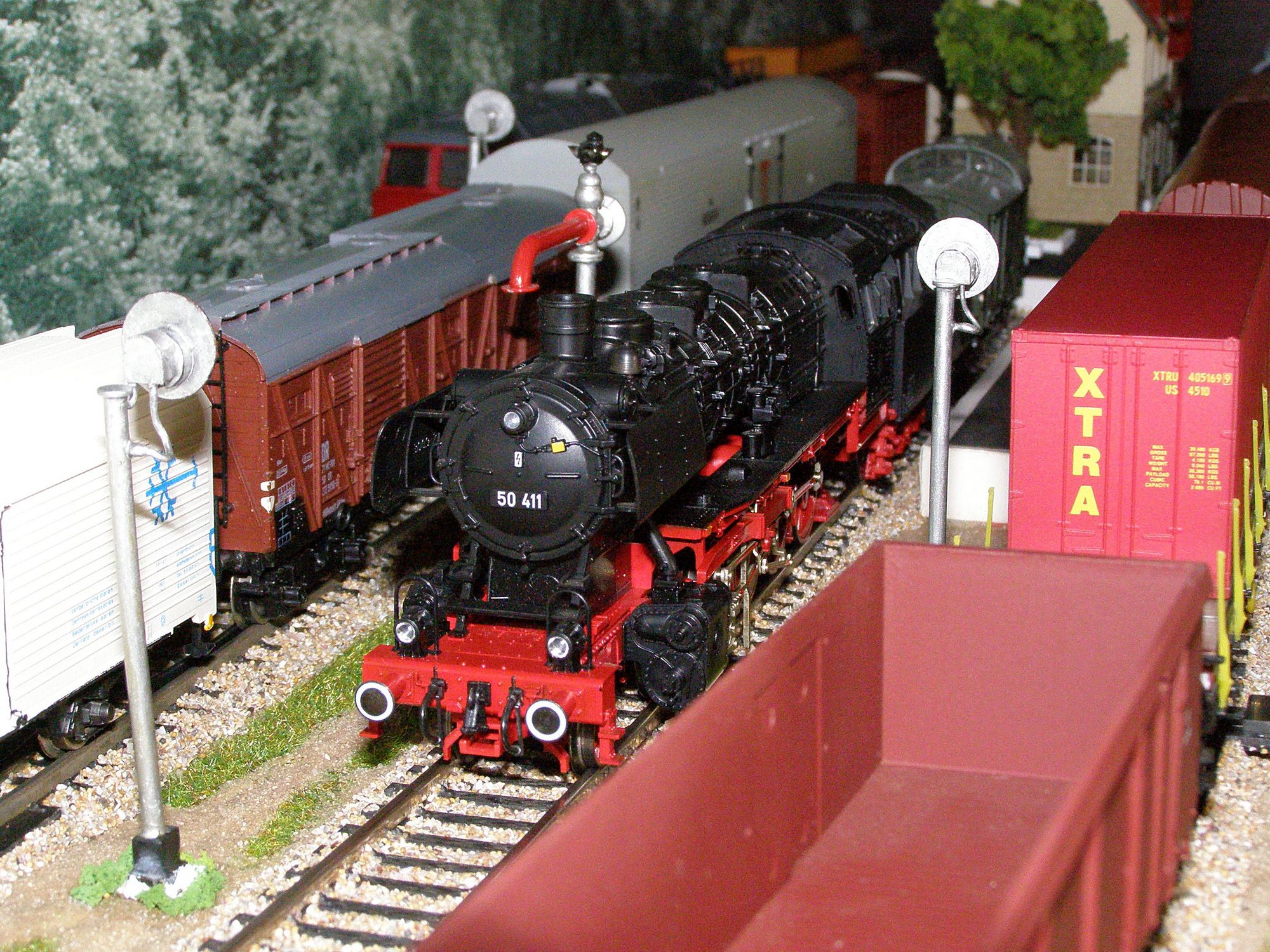Потихоньку продолжаем обзор коллекции. Следующим хочу представить паровоз 50 1124 от Roco. Поступил в коллекцию 22.08.2011. Вообще, к серии 50 у меня отношение особенное. Очень нравятся эти паровозы осевой формулой 1-5-0, гармоничными формами и пропорциями, богатой деталировкой. Нравятся также и другие серии, которые произошли от 50-й и имеют одинаковую осевую формулу и внешнюю схожесть: 52, 42, 050, 051, 052, 43, 44. Что касается модели 50 1124, то паровоз имеет полный привод на колёсные пары самого паровоза и тендера, что придаёт ему отличные тяговые качества и хорошую проходимость по радиусам.