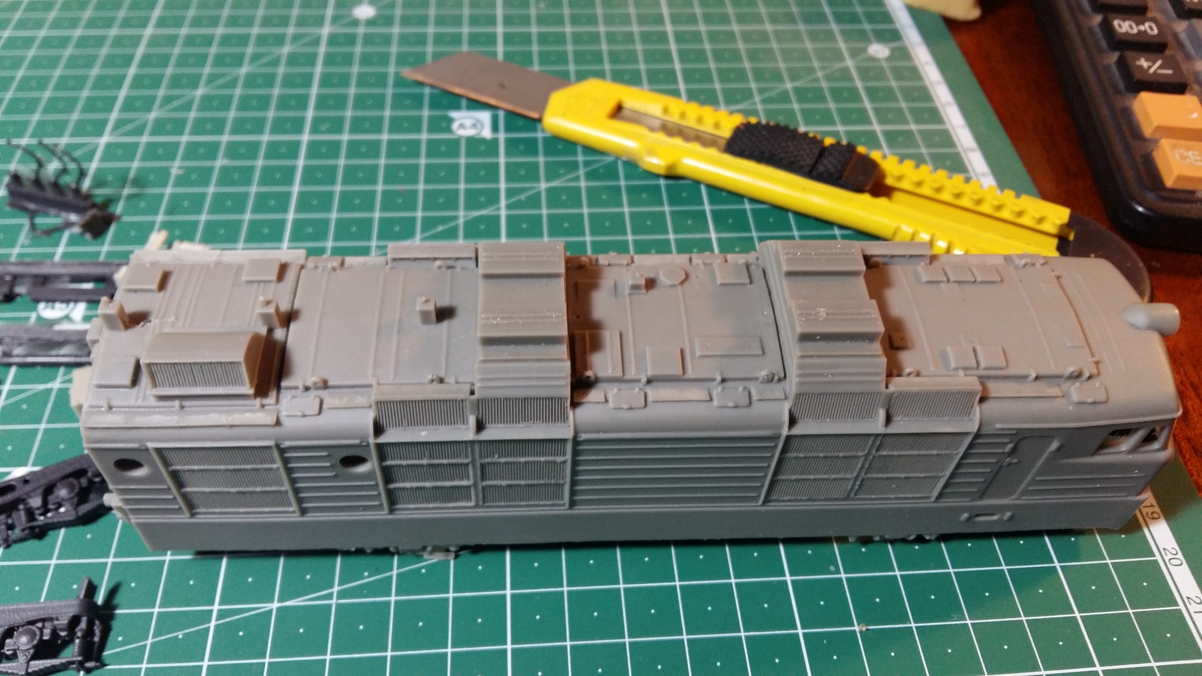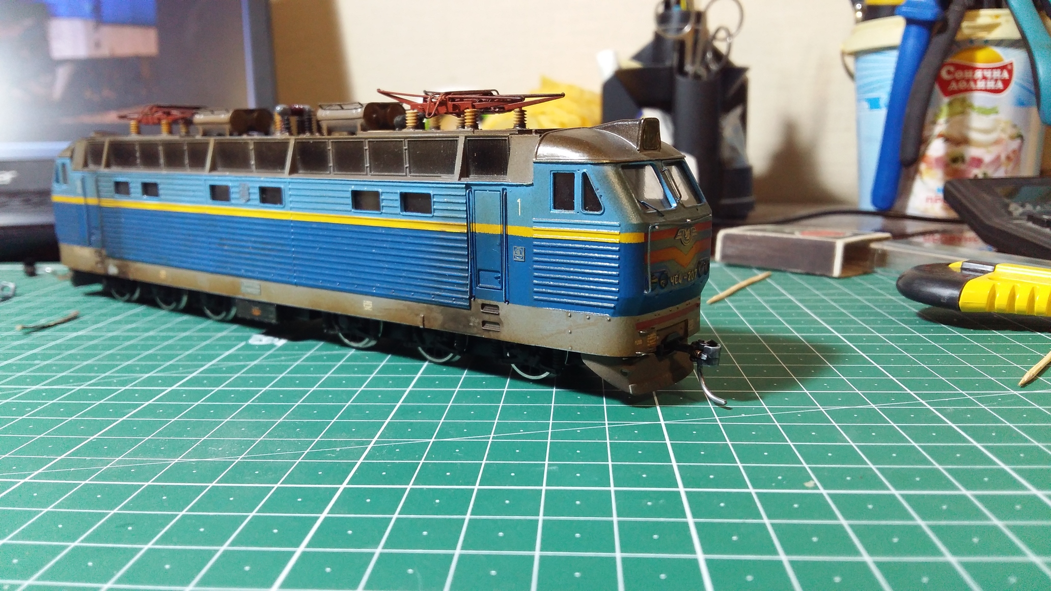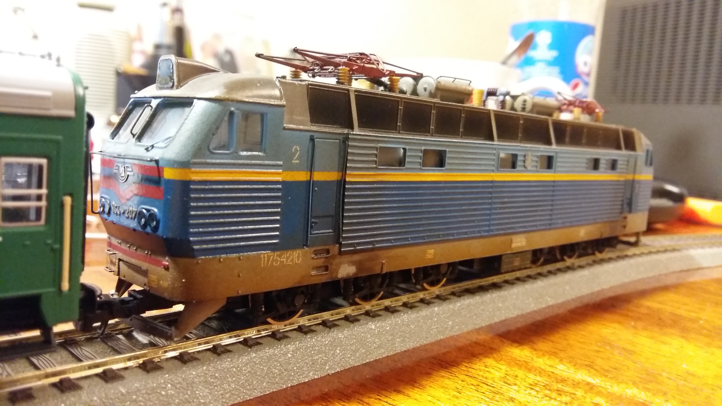 Спасибо - стараюсь не отставать ))). А насчет крыши ВЛ80р да там крышевое очень таки нелегкое в изготовлении вот фото ВЛ80к - изготавливал Ковальчук Юра, но на модели куча нюансов которые попросту надо переделывать. И по поводу донора на ВЛ - думал идеально подойдет пиковский таурус, но оказывается не совсем... Да расстояние колесных пар на тележках совпадает идеально, но двигатель с маховиками уже не становится - карданы вообще короткие и на повороте тележки выпадают. Это стоит пиковский обычный движок без маховиков - фото позже сделаю. За покраску не ругайте - красил Юра с баллона