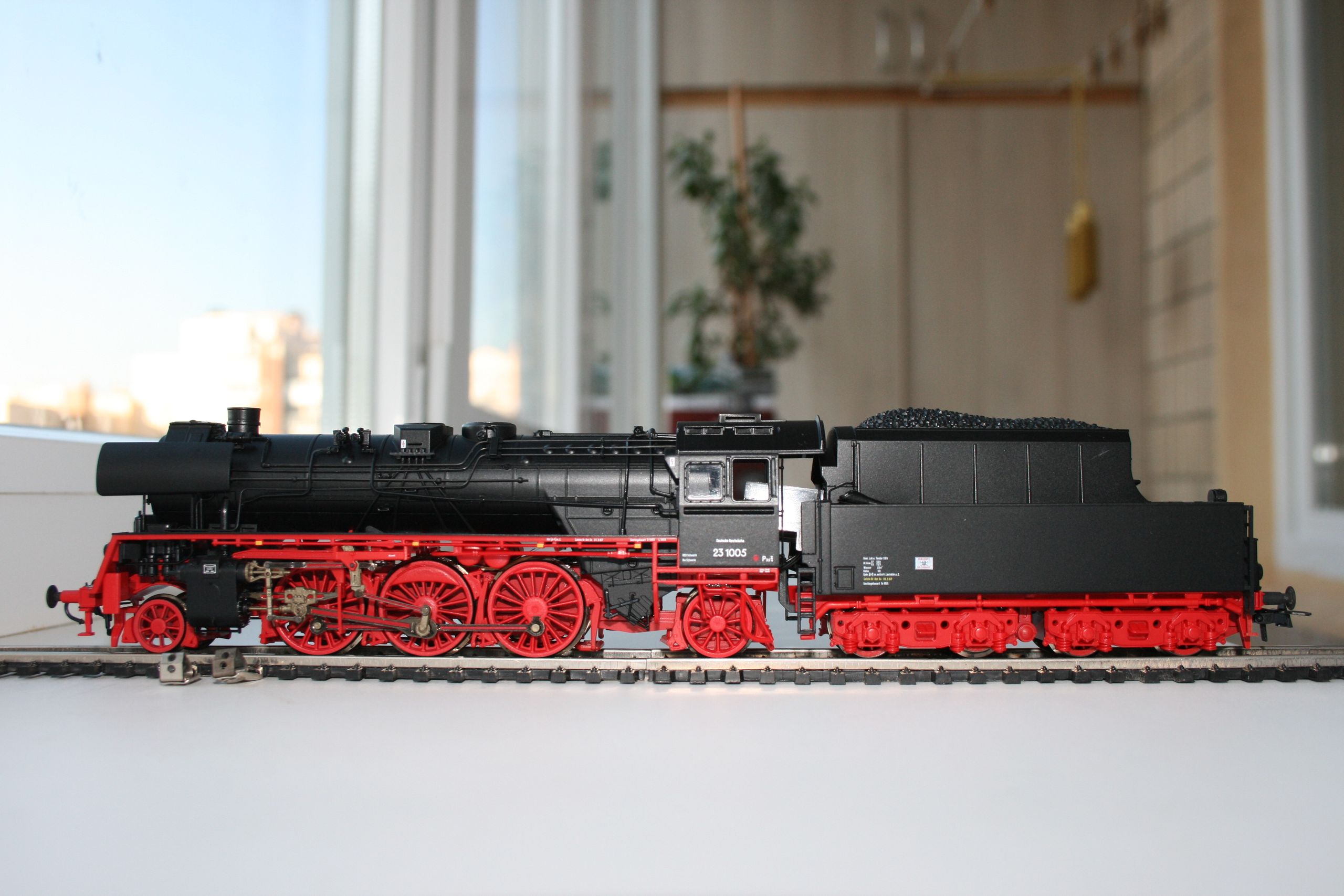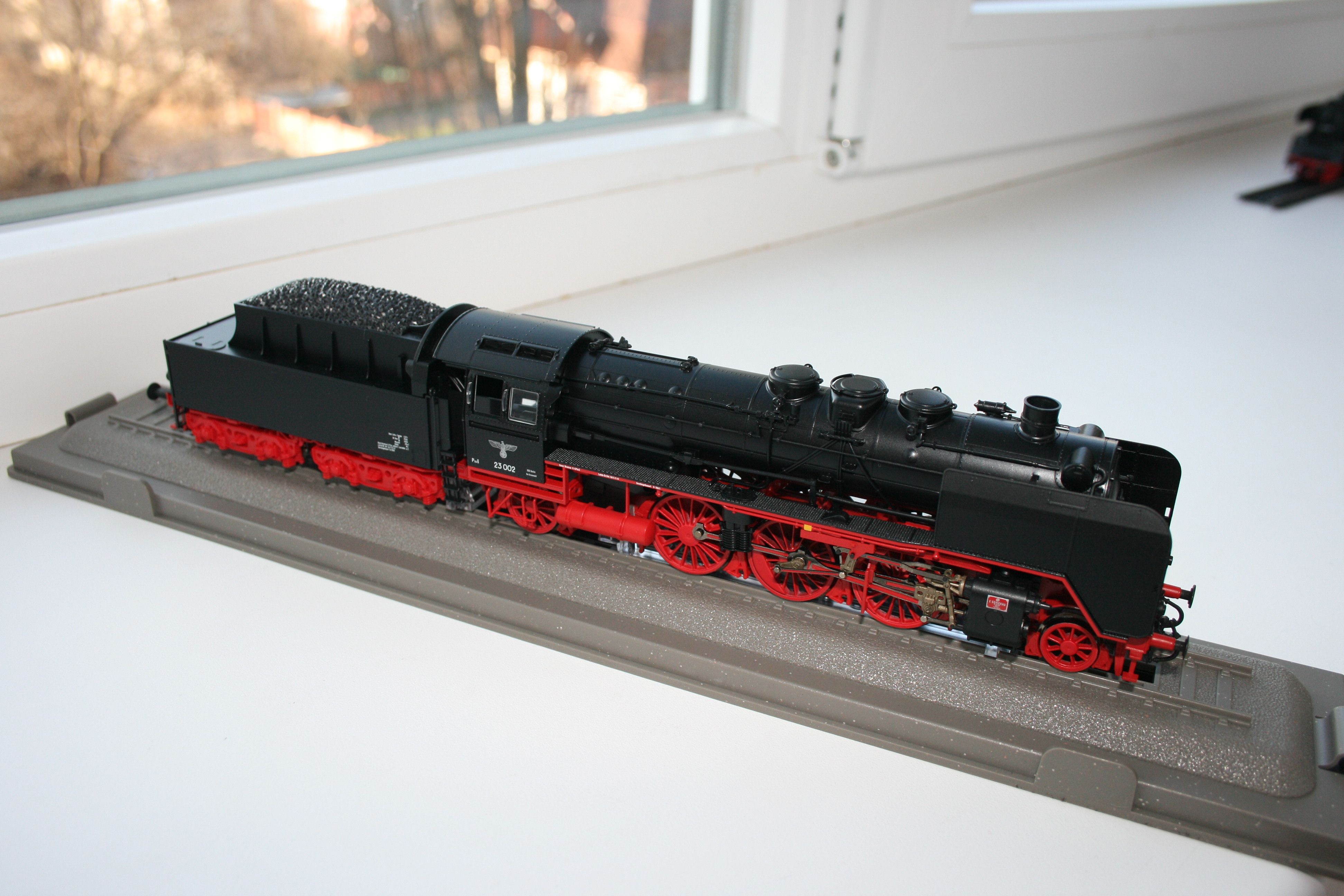 Теперь о моделях. Все они фирмы Роко. Первым был выпущен западно-германский паровоз, затем уже в нашем веке была создана модель 23.10 и последней в 2012 году появилась модель прототипа 23 002. Представляю их все одновременно для сравнения. Возможно фотографии не самые лучшие, но нет времени и возможности возиться с освещением.