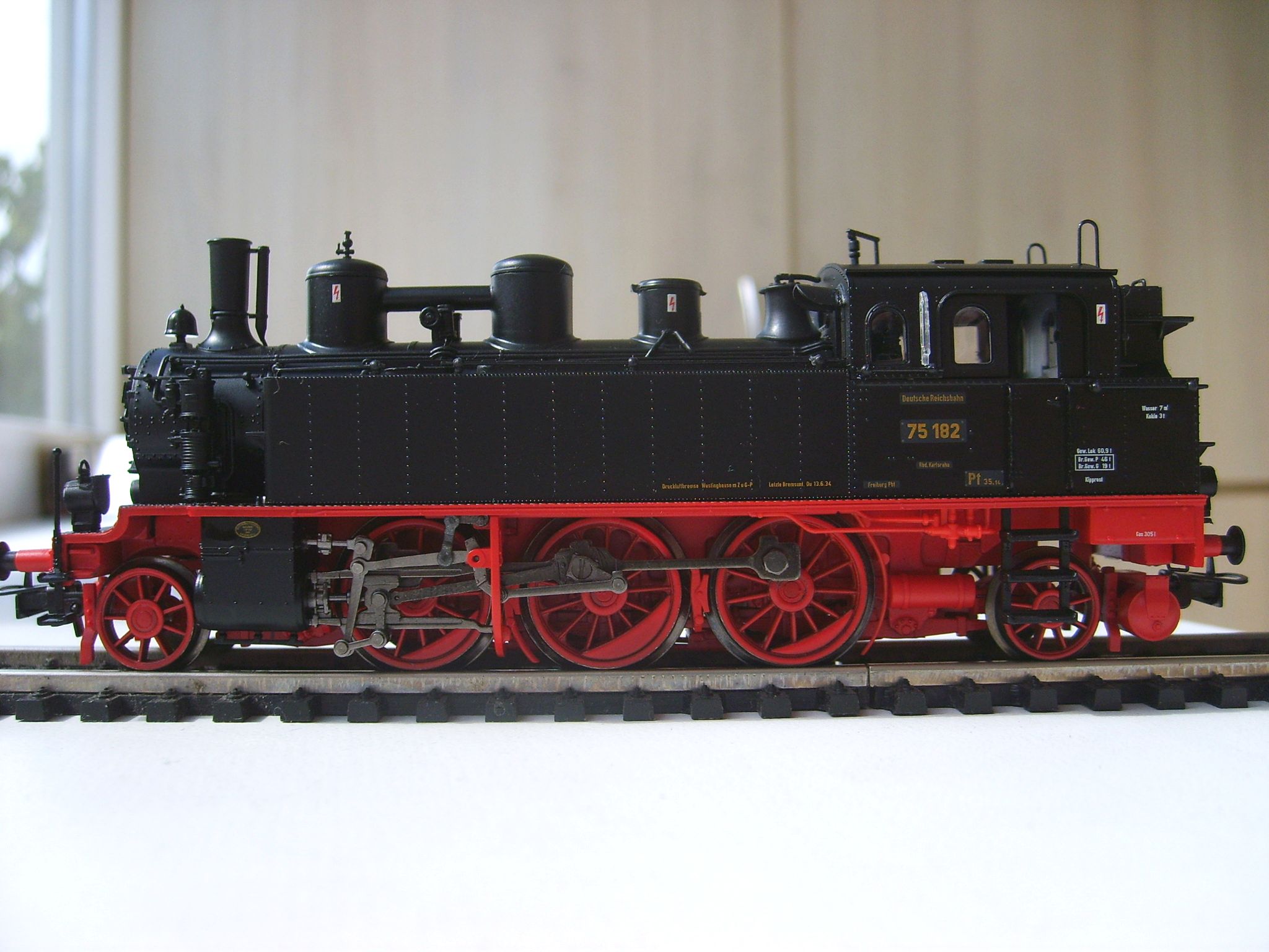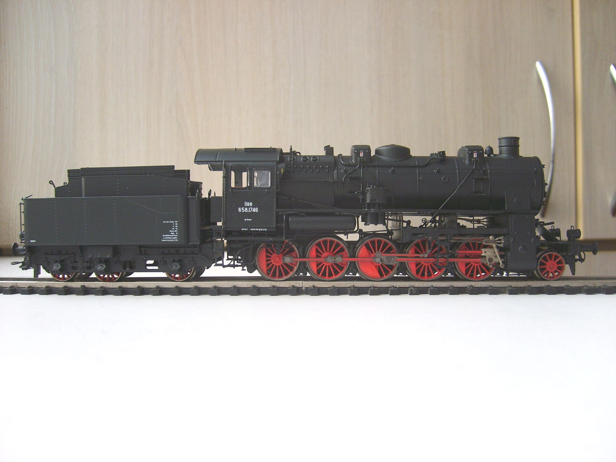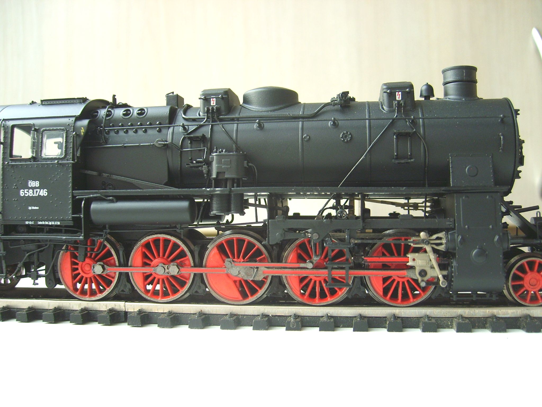 Модель такого паровоза производит фирма Риваросси. У меня он в окраске австрийских железных дорог, в распоряжении которых оказался после второй мировой войны, и где получил серию 658. Модель выполнена очень хорошо, с массой отдельных деталей, которые выполнены очень тонко, в будке есть интерьер и даже подлокотники у машиниста и кочегара окрашены отдельно в коричневый цвет ("под кожу" или, скорее, "дермантин"), свет на светодиодах, однако этот паровоз тоже ещё не проходил "обкатку" и о его ходовых качествах и свете сказать пока ничего не могу.