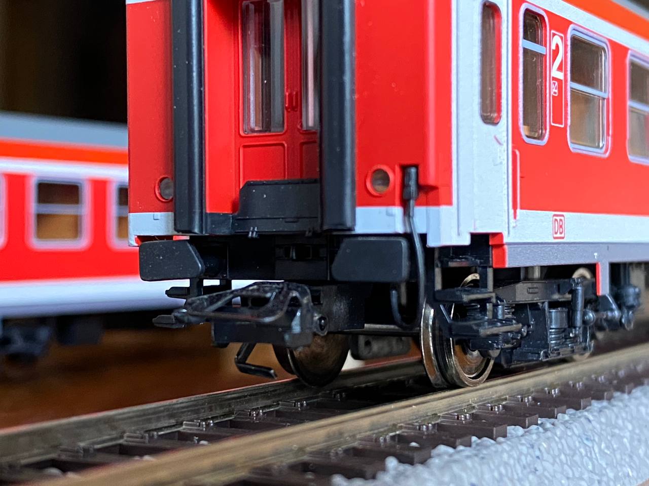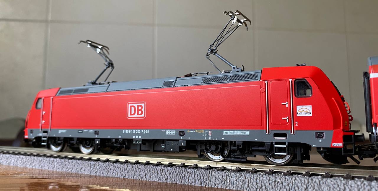 У даному складі використовується BR146.2 виробництва Marklin із вбудованим звуковим декодером, пасажирські вагони ж виробництва Rocо із стартового набору. На всіх рухомих одиницях встановлені зчепки короткої кінематики від Marklin, вважаю їх ідеальними для пасажирських складів у 5-6 епохах через їх масивний футуристичний вигляд.