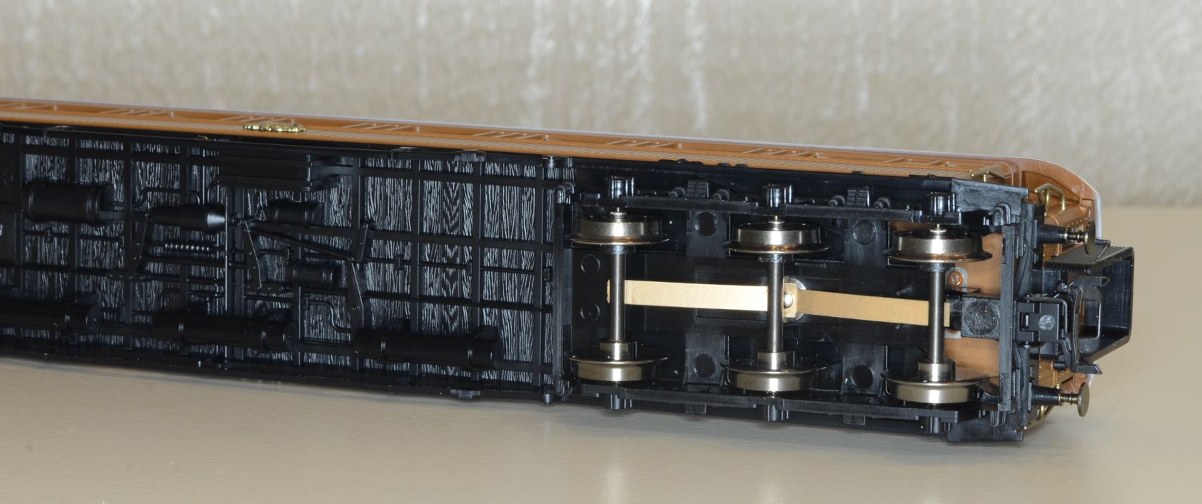2. декодер один, открывающий электронные ключи (транзисторы) в во всех вагонах. Дешевле, но нужно установить токопроводящие сцепки и немного модифицировать плату освещения. Пилить ничего не надо ;)