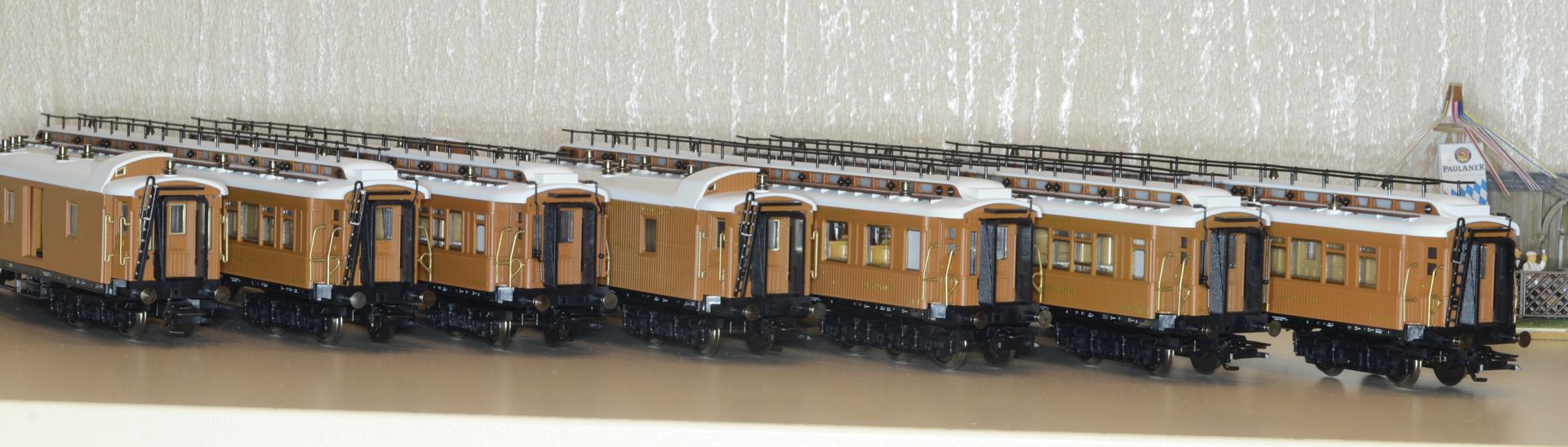 Ну, и напоследок групповое фото (5 вагонов из основного сэта и два спальных из дополнительного):