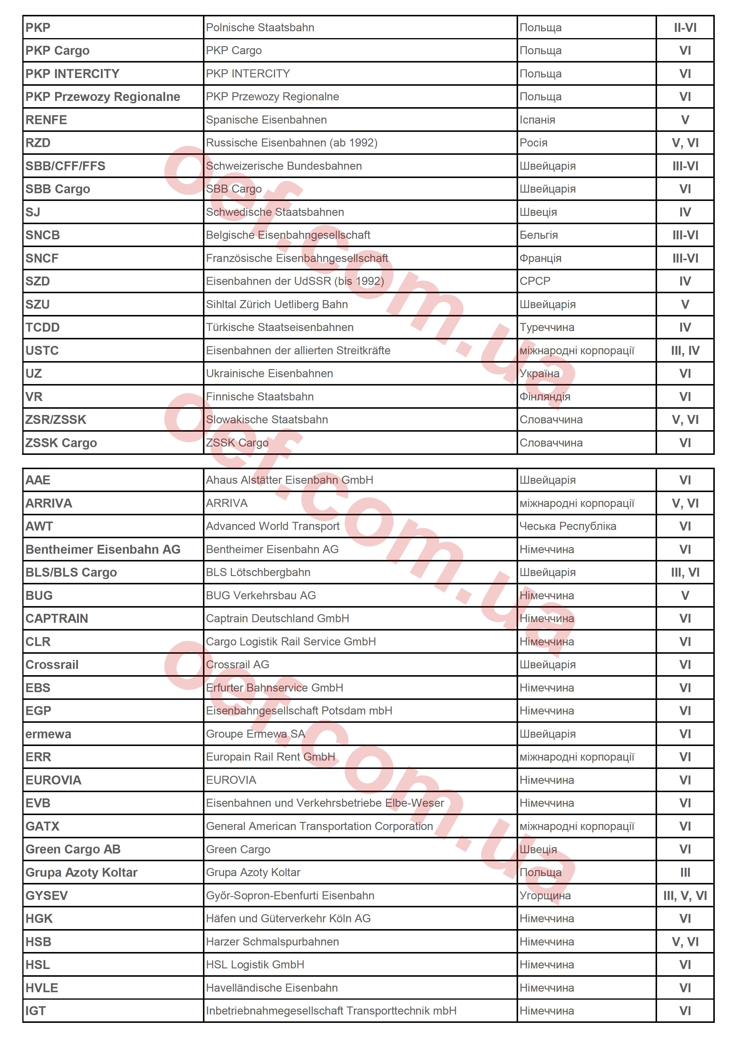 Деякі назви повторюються, але багатьох немає у першій таблиці. Також багато абревіатур походження із США