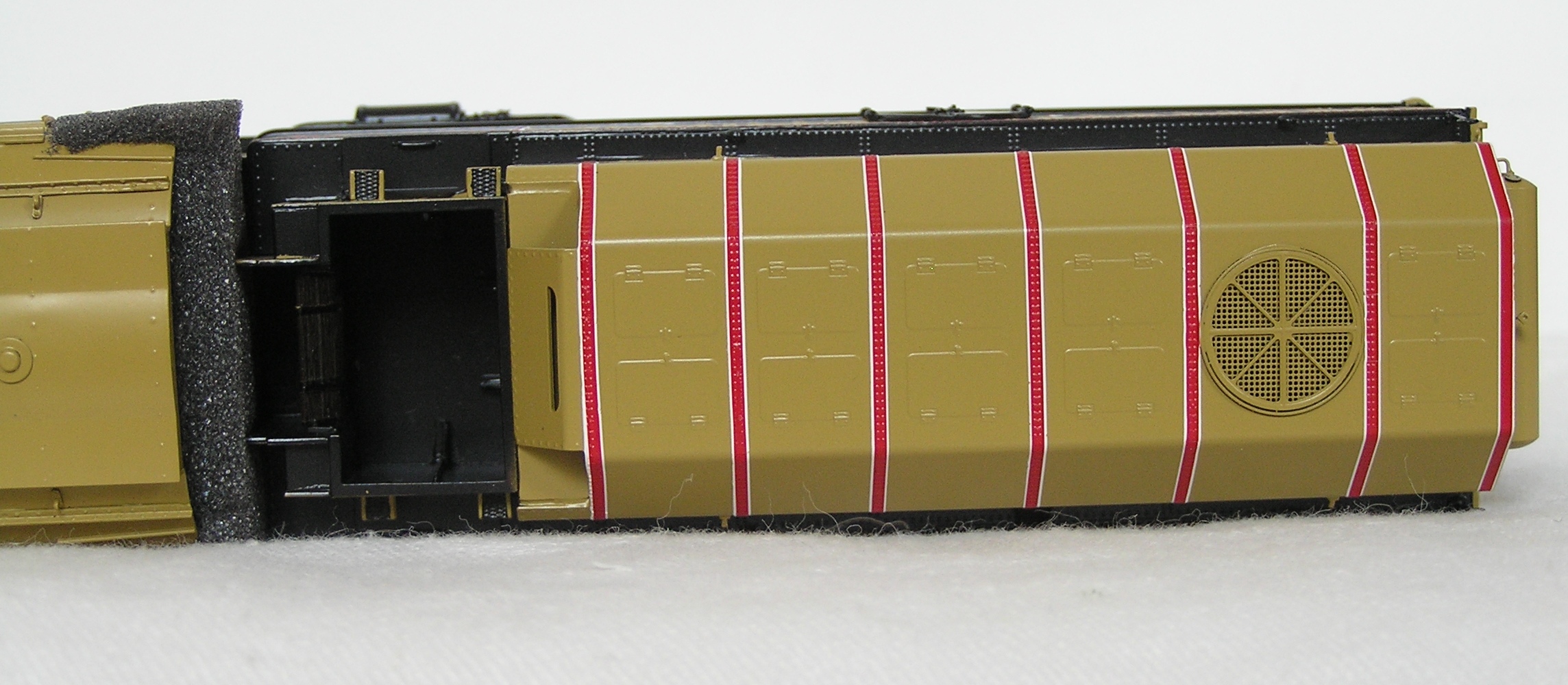 Тендер еще не имеет вентиляционных прорезей, а вентилятор охлаждения находится ближе к корме тердера.