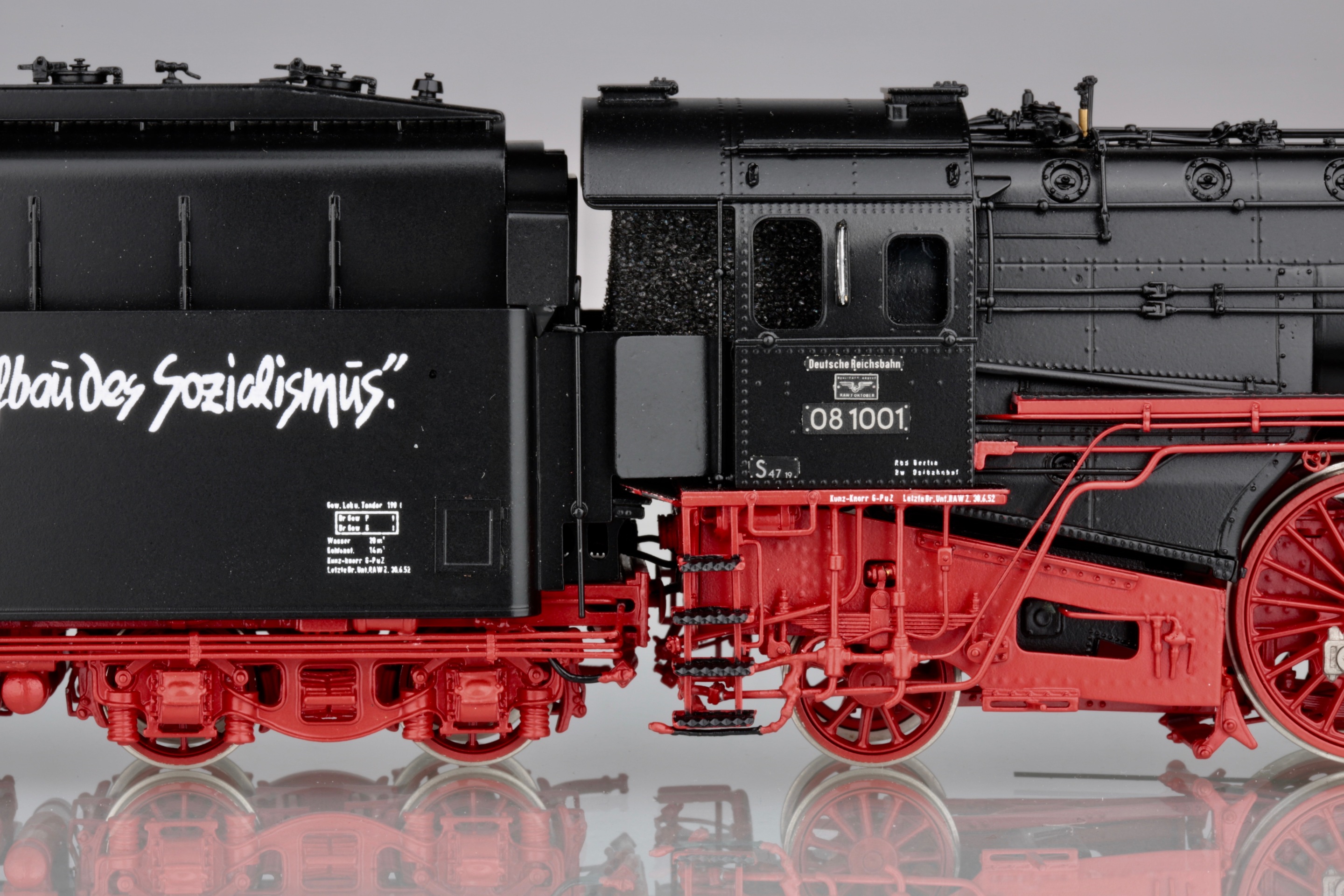 Владимир,пожалуйста,посмотрите официальное видео презентации модели BR 08 от Марклин. Этот ролик Марклин дополнил несколькими архивными фото /причем отличного качества/ этого паровоза.Внимательно посмотрите последнее фото. Еще более внимательно рассмотрите тендер паровоза, отображенный на этом фото. Еще более,более,внимательно и вдумчиво изучите расположение и позиционирование лозунга на тендере.Ну....,и что Вы видите???? Все правильно и я о том же-лозунг на тендере позиционирован, как и на Метакитовской модели на боковой стенке СВЕРХУ!Ссылка на это видео: https://youtu.be/qgEgC3507KU?t=85