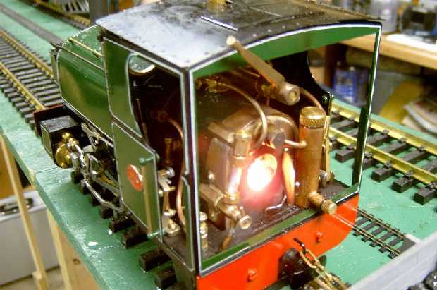 Тип котла: локомотивный - 10 дымовых трубок диаметром 9 мм, одна жаровая трубка 18 мм. Топливо: спирт или уголь.