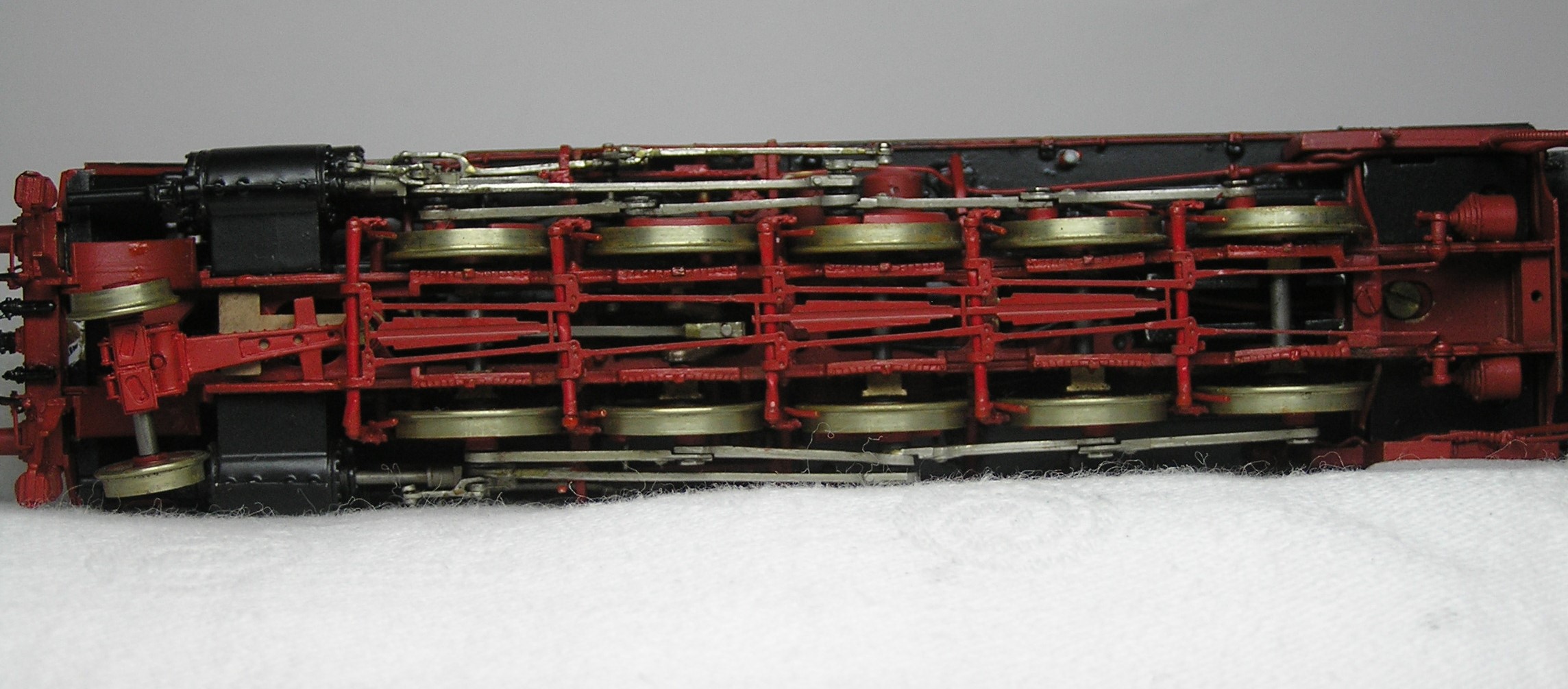 По масштабности, вниманию к деталям , модель паровоза BR 44 изготовленная и собранная мастерами фирмы Weinert, является одной из лучших в HO.Про ходовую часть и раму уже писали, советую обратить внимание на расстояние между тендером и паровозом, оно действительно масштабное, что на моделях очень редко встречается.Модель действительна достойна восхищения по всем параметрам.И на это есть несколько причин.Первая и на мой взгляд самая главная-это не коммерческий выпуск модели, модель, как известно делалась для презентации наборов по самостоятельной сборки.Следовательно, себестоимость изготовления не учитывалась-главное было получить великолепный образец.Вторая причина-это то, что модель изготавливаясь в семейной мастерской Weinert, на территории Германии, а мастера там великолепные.Как известно, фирма Weinert изготовила полностью готовые модели всего 4-х паровозов, все остальные в наборах.Все полностью готовы модели изготовлены в Южной Кореи-уже как коммерческий проект, где себестоимость была определяющим фактором.А, теперь как говорят, почувствуйте разницу между 44 изготовленным в Германии и Т-9 изготовленным в Южной Кореи.( фото прилагаются)Stinky писав:Модель 44го очень серьезно выполнена.Как я понял изготовлена в 80х.То есть были подобные