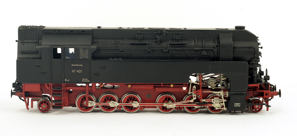 Модель горного паровоза DRB BR 97 401,Art 02810 H.L, ограниченная серия-15 экземпляров,изготовленна в 2006 году по состоянию на 1941 год.Восторженных эпитетов произносить не буду-все можно увидеть на очень подробных фотографиях, сегодня я публикую рекордное количество подробных фотографий,(ровно 100) для более детального ознакомления с данной моделью.Обратите внимание, как выполнен парораспределительный механизм и экипажная часть.Думаю данная модель послужит и примером для многих моделистов, к чему надо стремиться при изготовлении моделей.Приятного просмотра, интересно услышать мнения коллекционеров и моделистов.