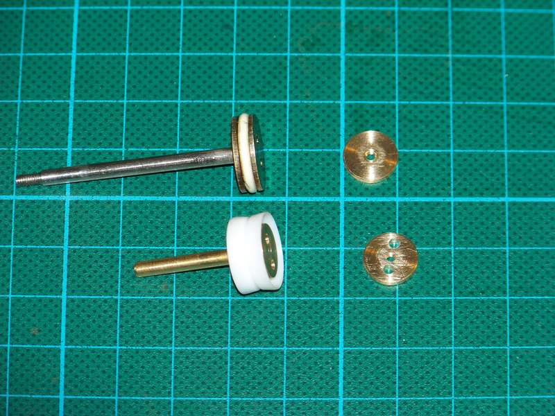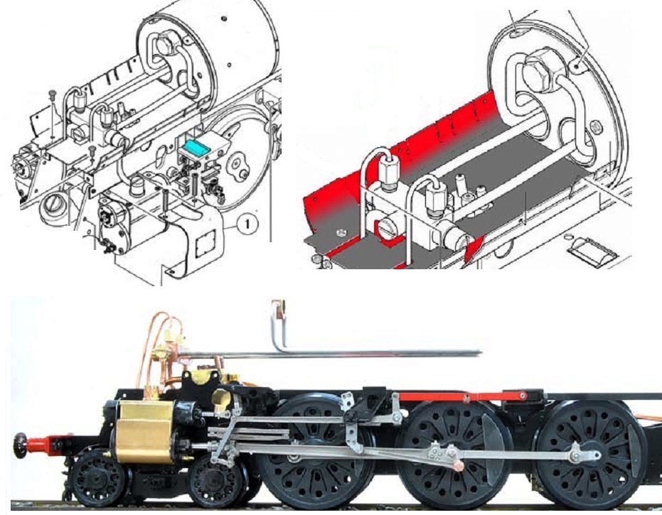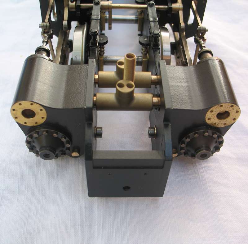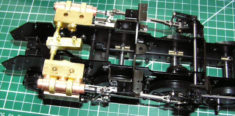 В моделях Aster, как во всем единичном live steam-е, цилиндры применяются двух типов: с коробчатыми и цилиндрическими золотниками. Первые используются чаще, они хорошо прижимаются паром к паровым окнам и минимизируют утечки, хотя сложнее в изготовлении и больше в размерах золотниковой коробки. Кроме этого есть еще один нюанс, важный для копийной модели. С коробчатым золотником ход паровоза вперед обеспечивается при верхнем положении золотниковой тяги в кулисе, с цилиндрическим – при нижнем. В основном все прототипы имели цилиндрический золотник и неправильное положение кулисы в модели сразу бросается в глаза. Чтоб убрать эту кривизну восприятия, между блоком и золотниковой коробкой ставят панель с изогнутыми каналами, по которым пар идет в «правильное» противоположное окно цилиндра. Сам цилиндр состоит из блока, отдельной золотниковой коробки, панели распределения пара, самого коробчатого золотника и крышек. Цилиндрический золотник более компактен и прост в изготовлении. Он полностью соответствует конструкции прототипа, легче перемещается в золотниковом цилиндре, поскольку равнонагруженный паром со всех сторон. Правда, принято считать, что цилиндрический золотник пропускает пар по мере износа. По мне это не проблема – выточить и заменить труда не составит. Традиционный поршень астеровских моделей выполнен из бронзы с двумя проточками под кольца. Кольца - фторопласт.