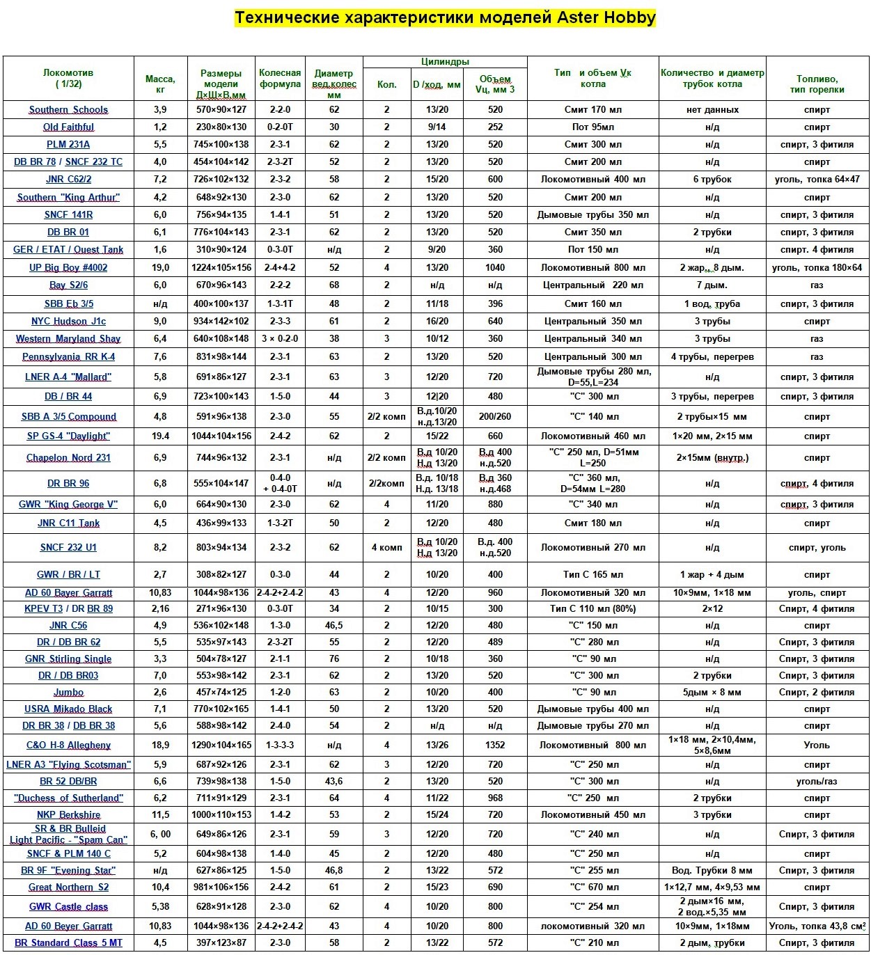 Модель паровоза Deutsche Reichsbahn Baureihe 03 выпущена компанией Aster в 1997 году в количестве 370 единиц. Характеристики модели в таблице выше.