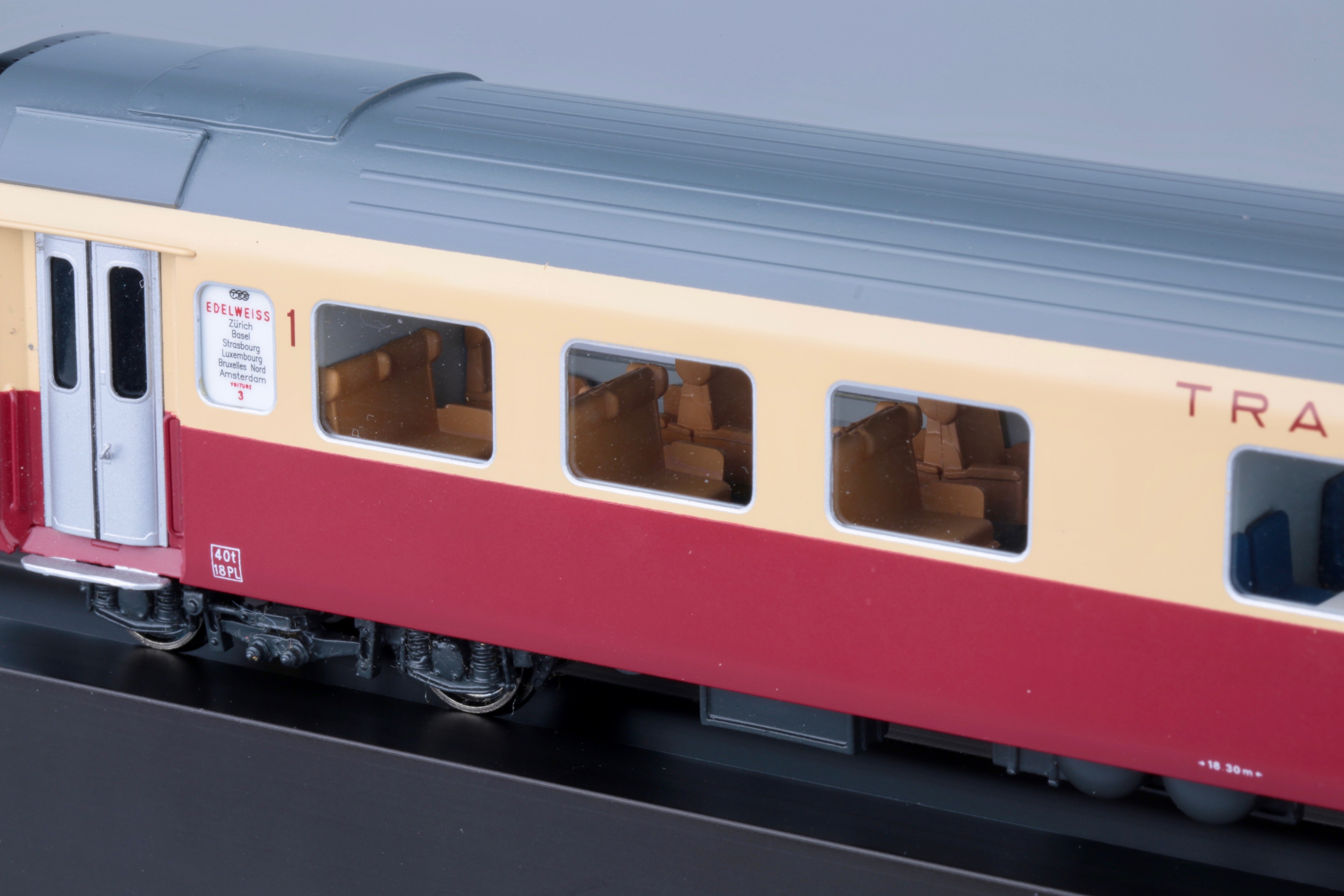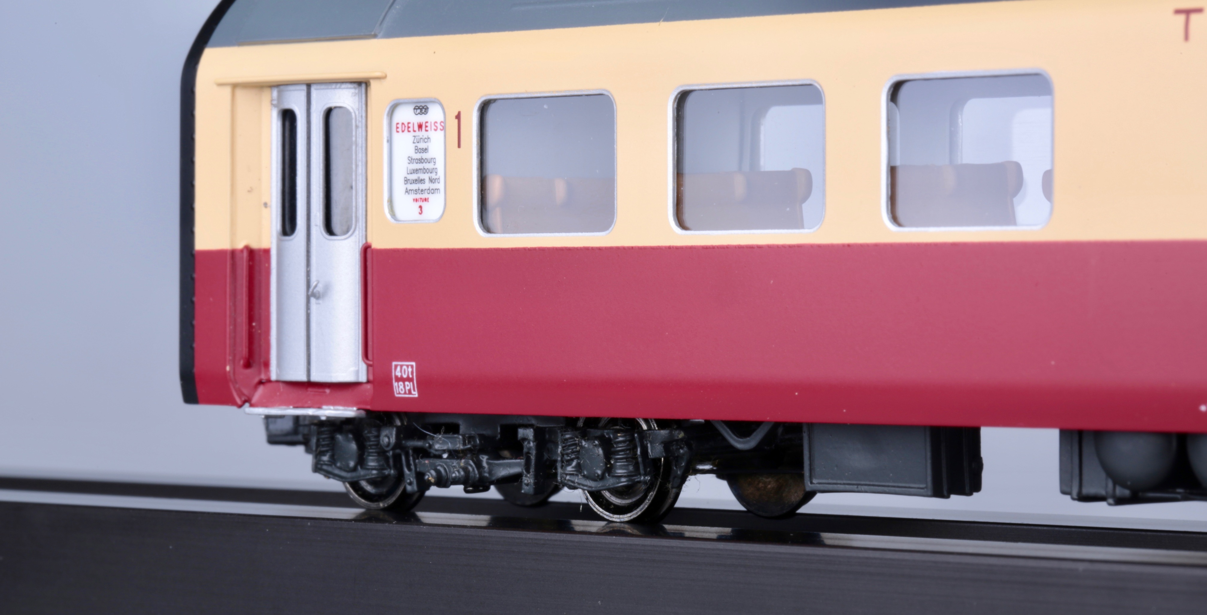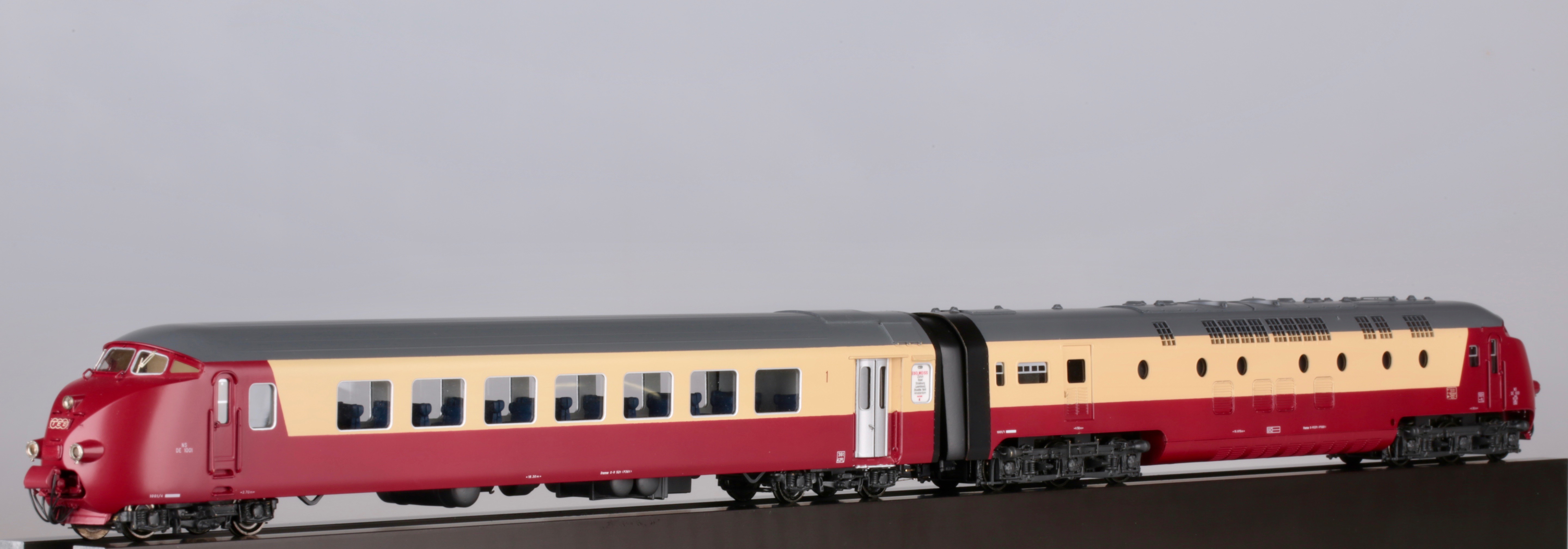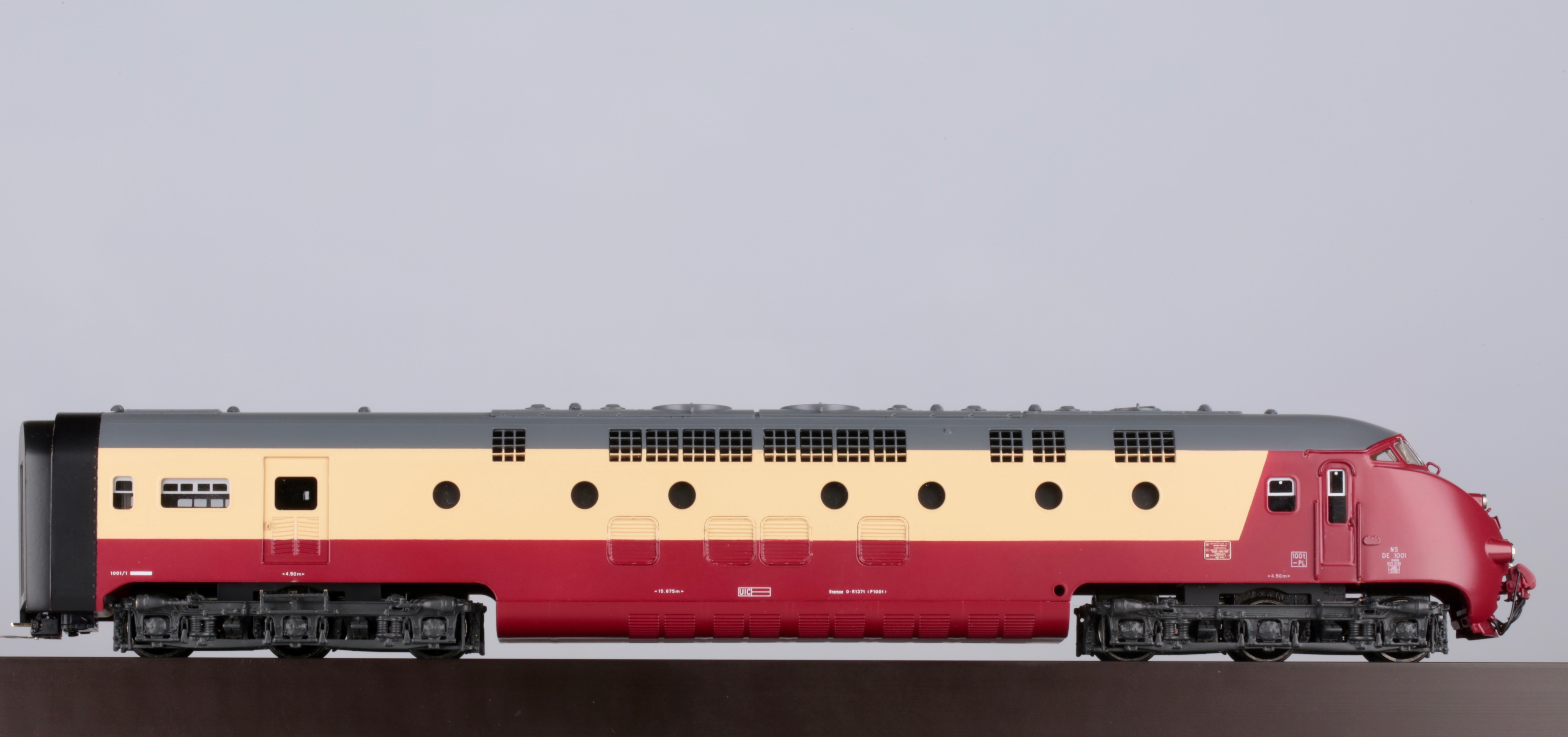 Хочу представить, как всегда совершенно редкую, латунную модель, которая вызывает огромный интерес у многих коллекционеров.Но все беда в том, что найти ее практически невозможно,а если выпадает такое счастье и находится подобная модель ,но с другим артикулом, ( там экземпляров в несколько раз больше чем у меня )покупатели с обезумевшими глазами, от свалившегося на них такого счастья, выкладывают 5000 долларов США.Одним словом-"моя прелесть". Завидуйте молча, оваций не надо, модель скоростного дизель поезда NS DE 1001 TEE Эдельвейс, Art HO-056/1, от великолепной швейцарской компании Lemaco,изготовлена в 1995 году-всего 15 экземпляров.Длина поезда-1135мм,вес-1кг 814 гр, проходит идеально радиус -540 мм, современное светодиодное освещение в вагонах.