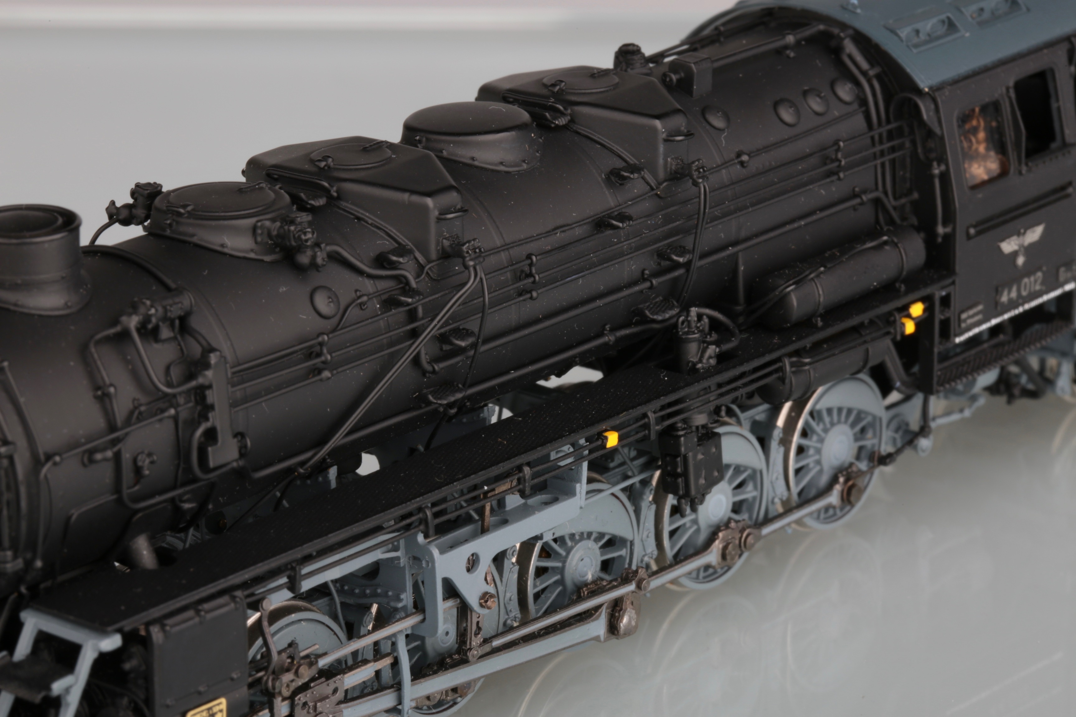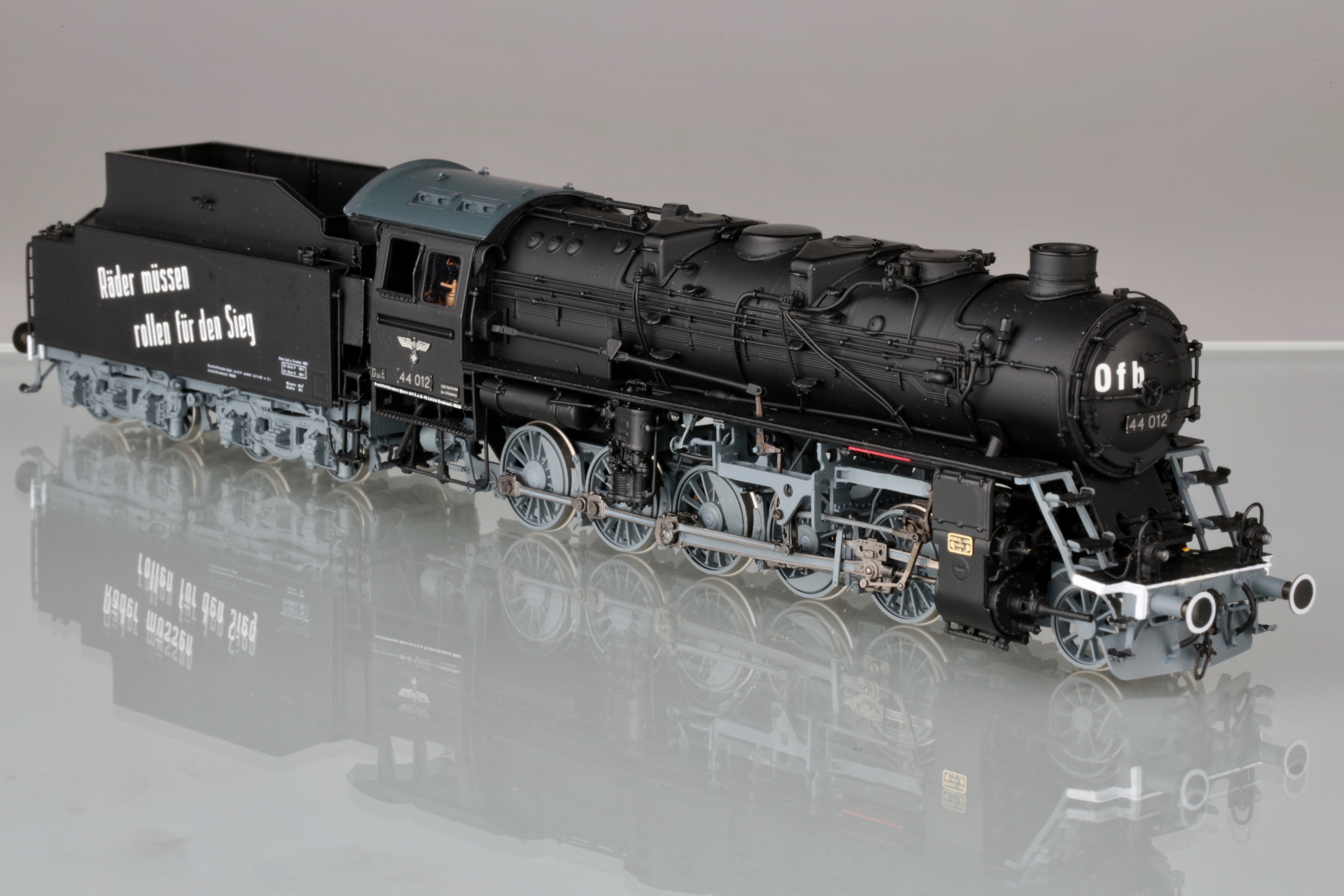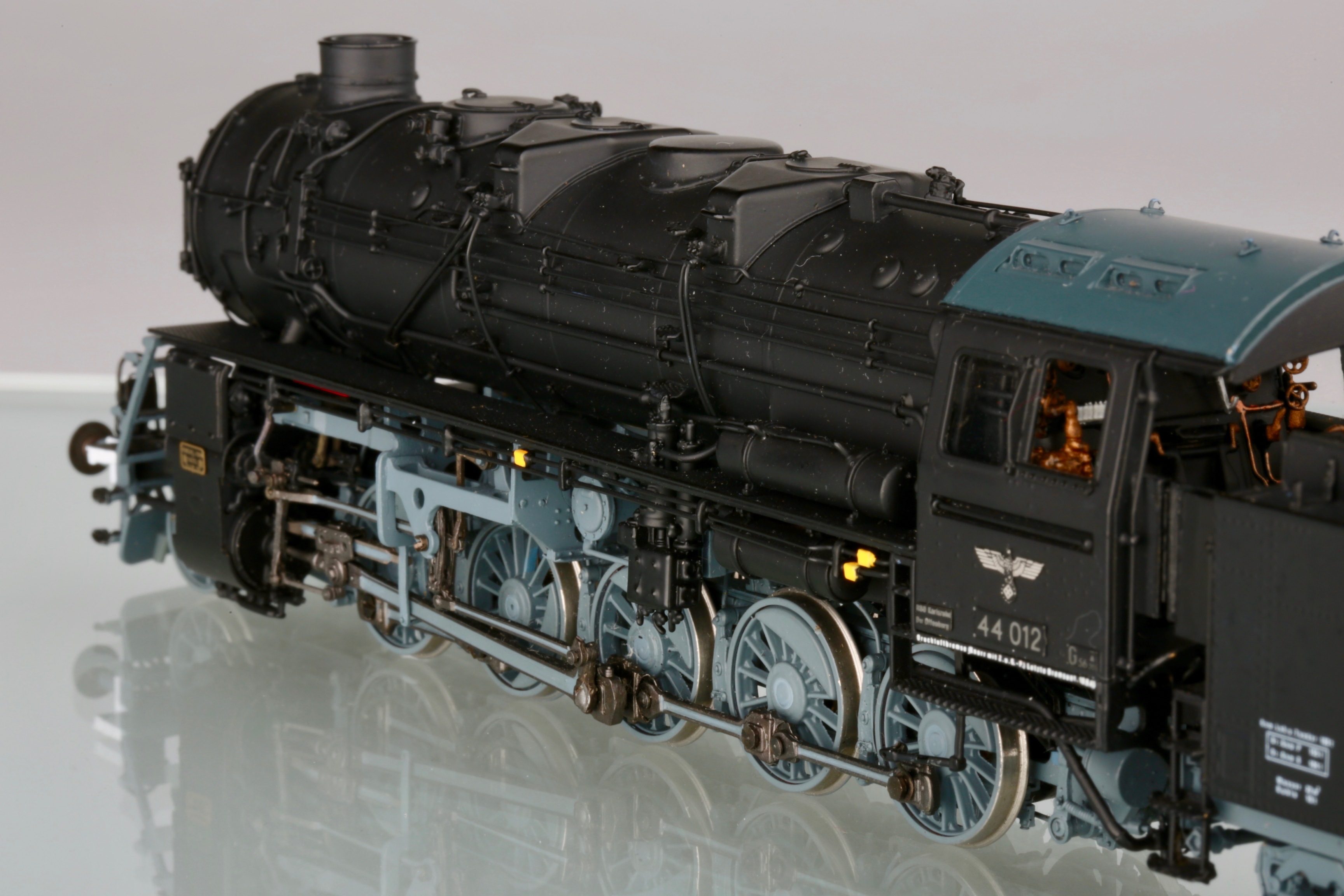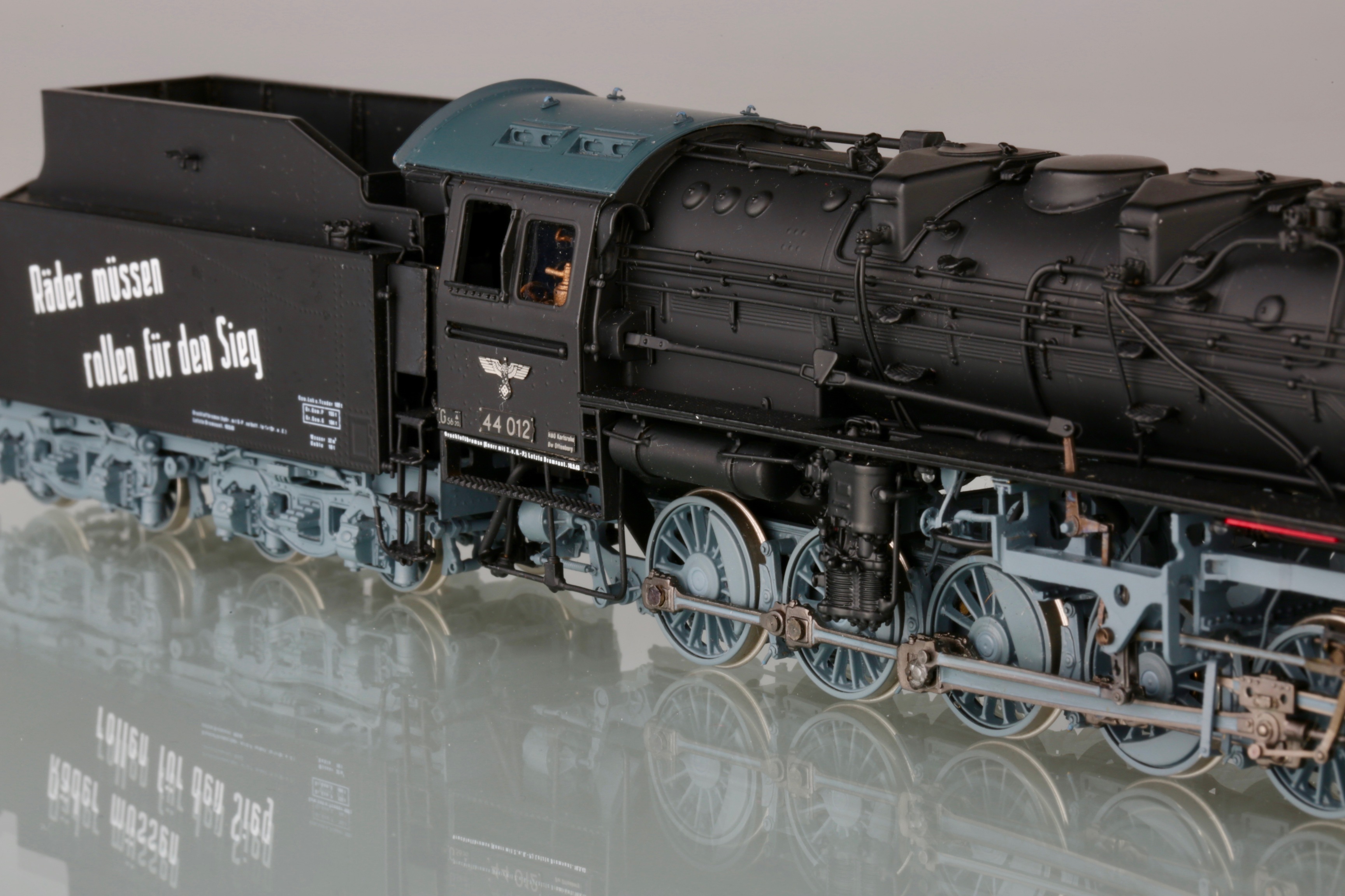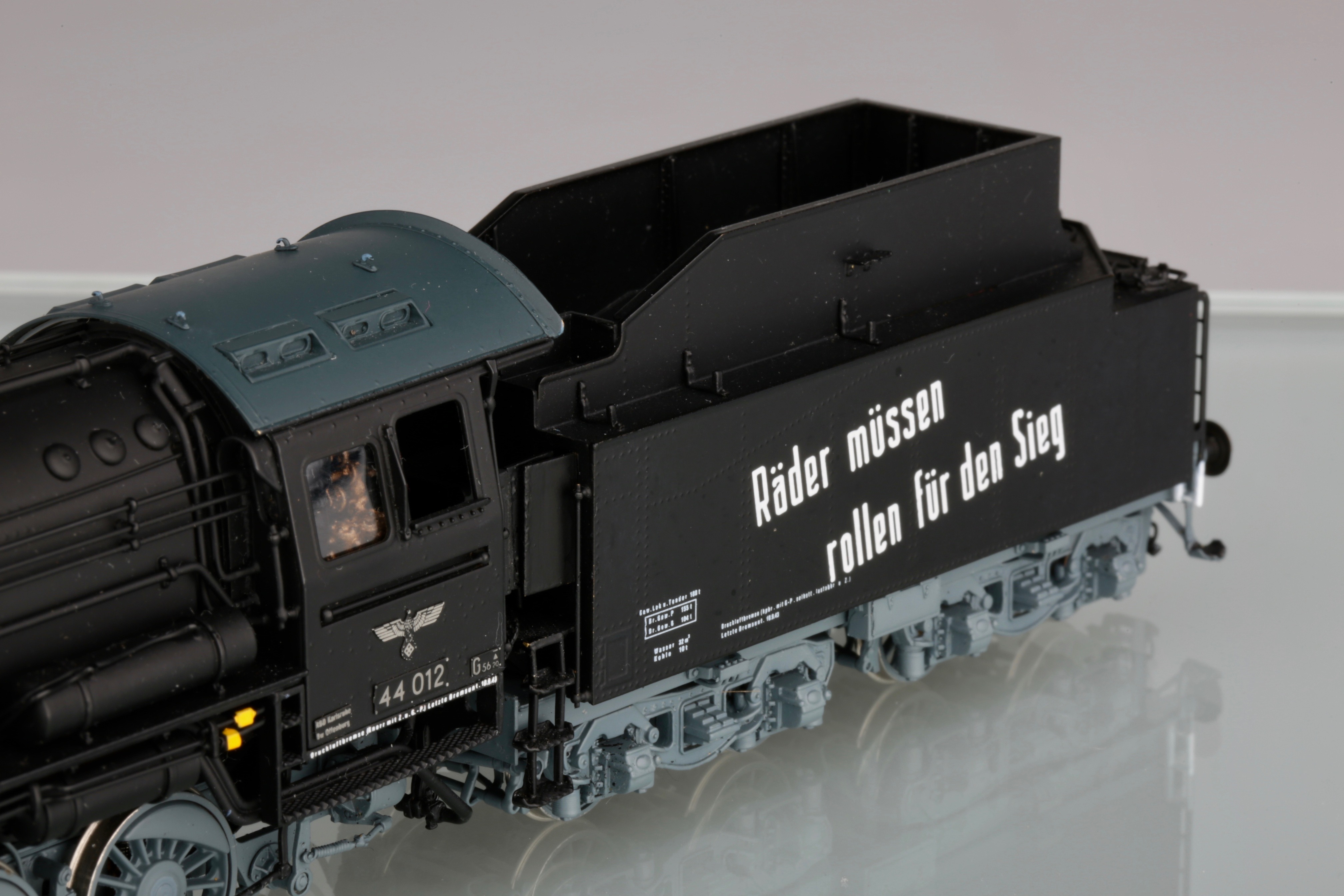 Я не отрицаю, что надписи существовали. Но есть ли фото паровозов, именно бр44 с такими? Пусть это будет не 012, пусть другой номер. Но чтоб такая надпись, в таком стиле, так же нанесена и добавлена на крышке котла. Все варианты, что я нашёл, были исключительно на латунных моделях и отличались по составу слов и аббревиатуре на крышке котла. Живых фото, я не нашёл увы. Я к чему это пишу - если производитель так стремится к копийности, а коллекционер к владению копийной моделью, то наверняка у первого должно быть документальное подтверждение, а у второго непоколебимая уверенность в производителе, либо свои подверждения данных украшений. Не спорю, что модель смотрится интереснее, чем просто чёрный кузов. Но тогда выходит одно из двух - либо производитель обманывает в гонке за барышами, либо коллекционер отодвигает в сторону историческую достоверность и покупает то, что ему нравится.