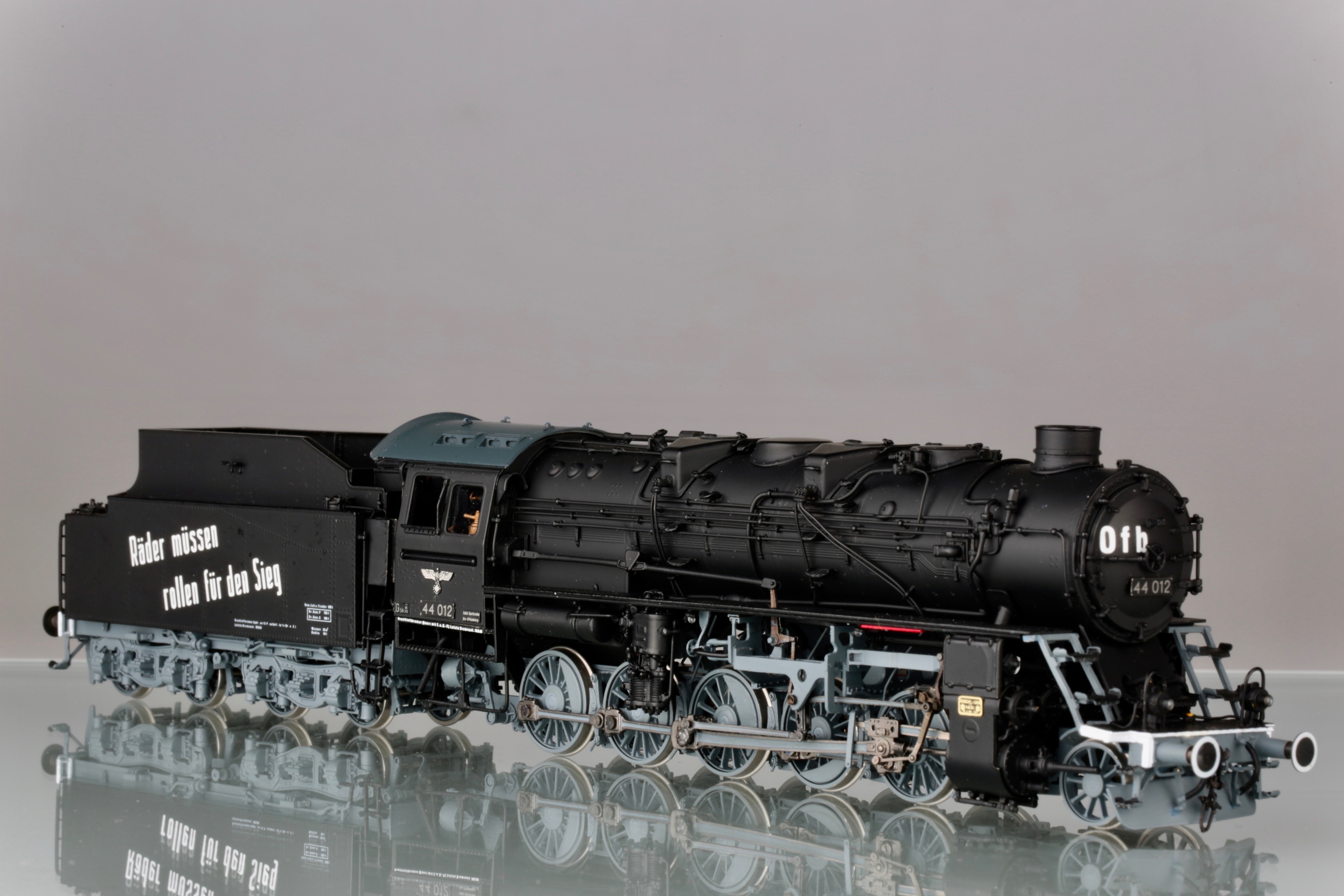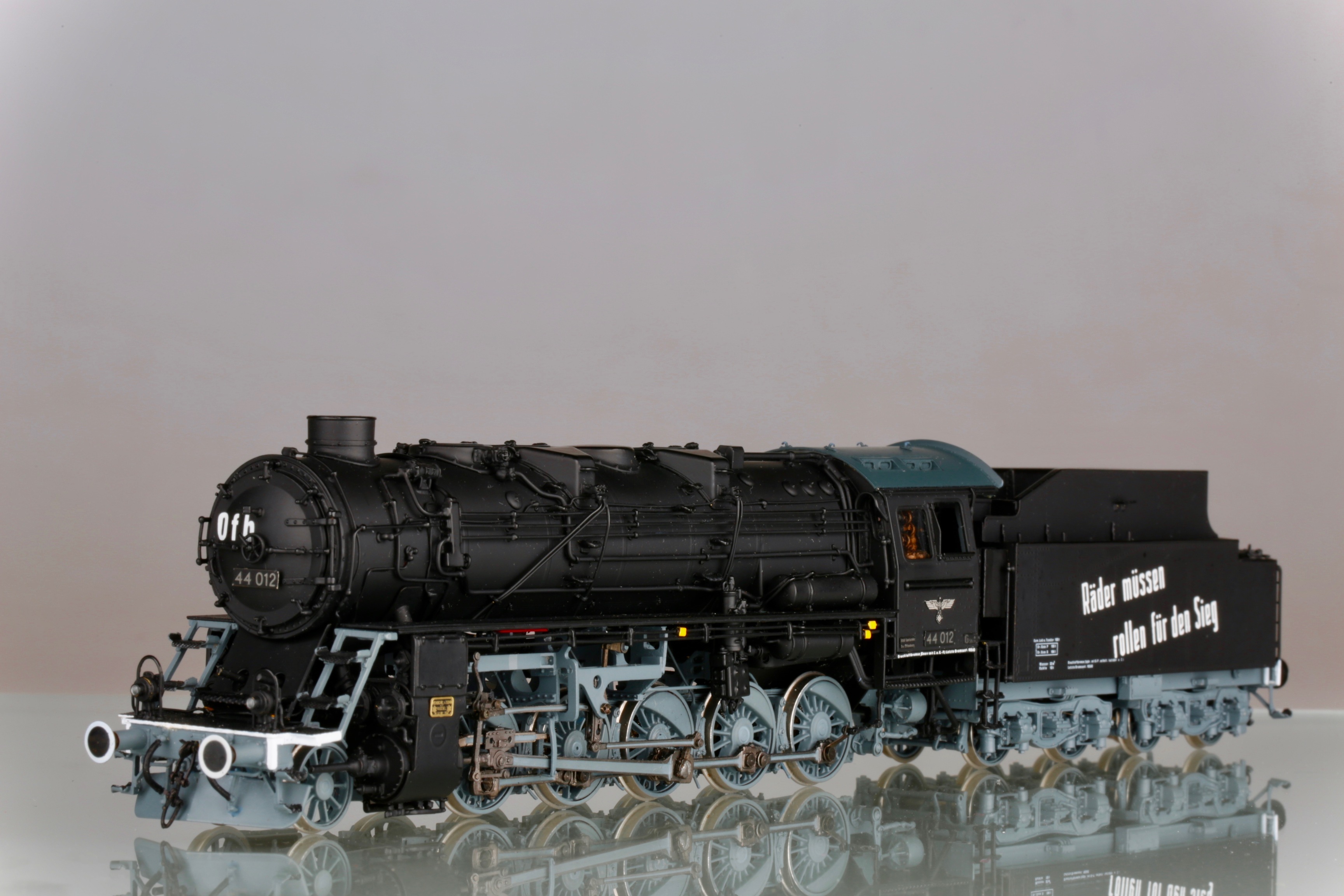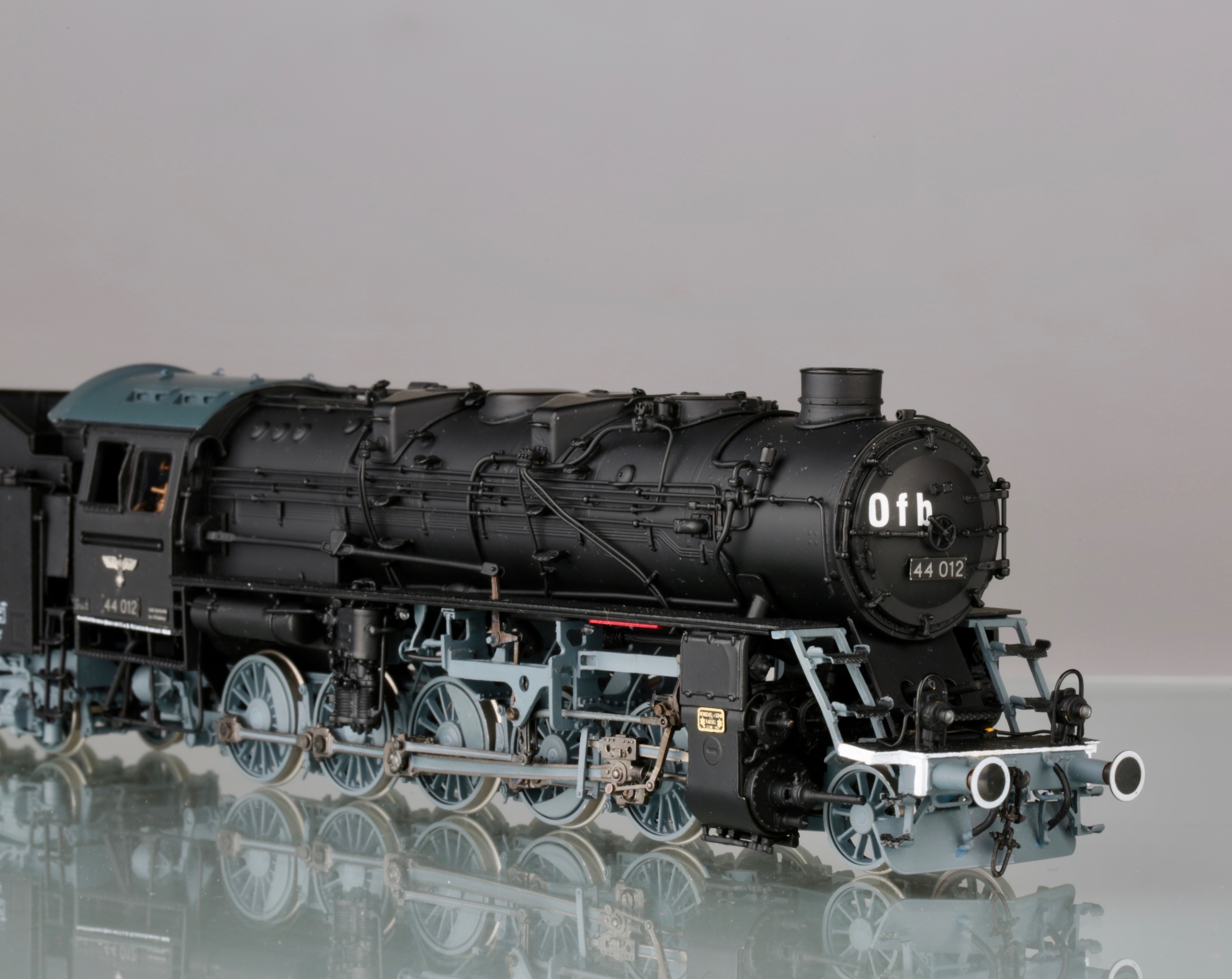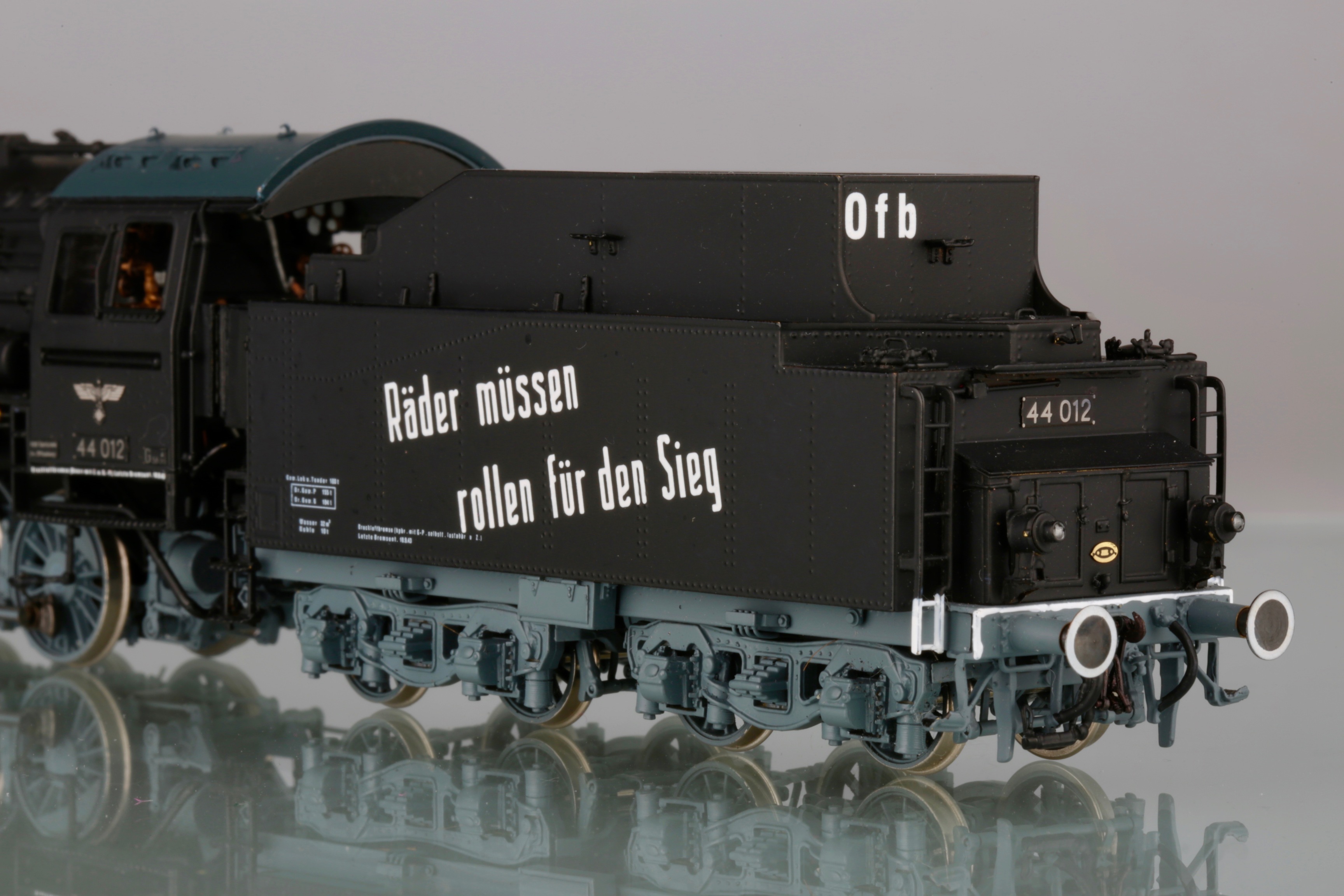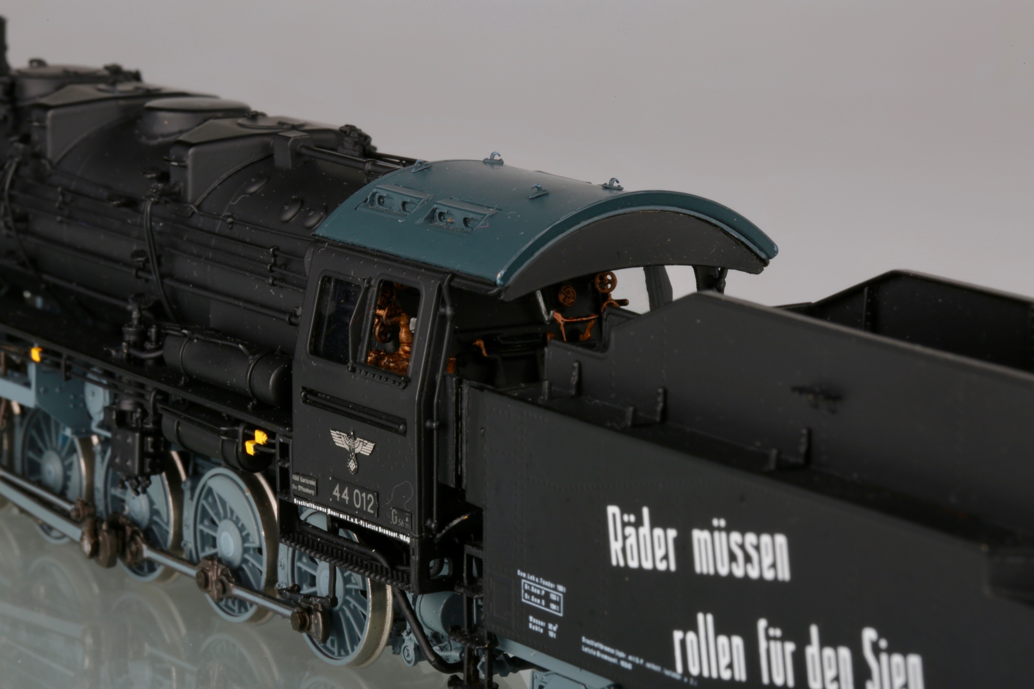 Я не отрицаю, что надписи существовали. Но есть ли фото паровозов, именно бр44 с такими? Пусть это будет не 012, пусть другой номер. Но чтоб такая надпись, в таком стиле, так же нанесена и добавлена на крышке котла. Все варианты, что я нашёл, были исключительно на латунных моделях и отличались по составу слов и аббревиатуре на крышке котла. Живых фото, я не нашёл увы. Я к чему это пишу - если производитель так стремится к копийности, а коллекционер к владению копийной моделью, то наверняка у первого должно быть документальное подтверждение, а у второго непоколебимая уверенность в производителе, либо свои подверждения данных украшений. Не спорю, что модель смотрится интереснее, чем просто чёрный кузов. Но тогда выходит одно из двух - либо производитель обманывает в гонке за барышами, либо коллекционер отодвигает в сторону историческую достоверность и покупает то, что ему нравится.