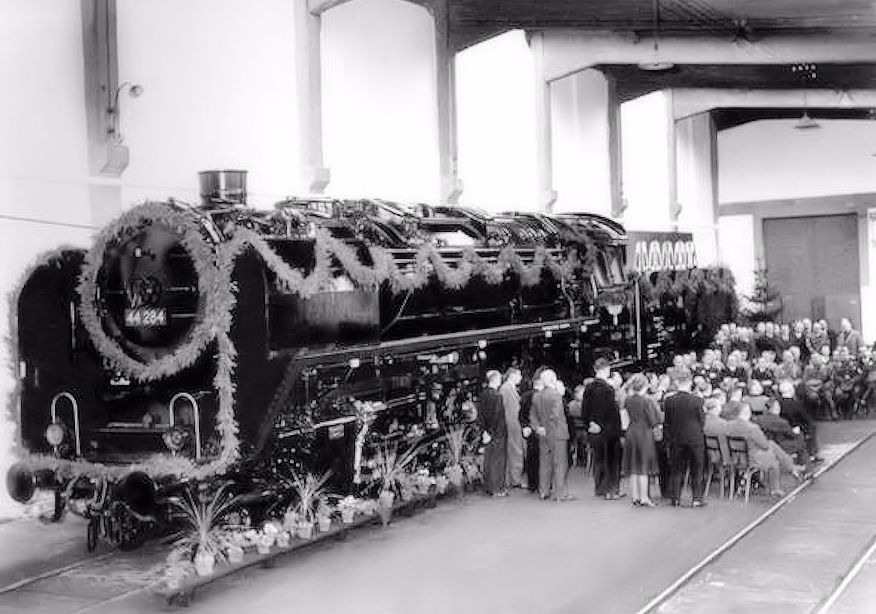 La 44 284 es "botada" en la fábrica polaca Werk Chznow-Krenau en 1940. La bonita foto de la ceremonia oculta la realidad: Posiblemente muchos de los operarios que la construyeron eran mano de obra esclava. Foto RVM.