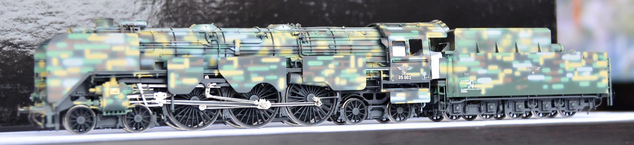 Никогда локомотивы DRG не окрашивались в танковый панцергрей. Включая и 05 003 после так называемой ре-модернизации в обычный паровоз. Возможно я видел и не все фото 05 003 после апгрейда, но если есть поделитесь. С пропагандой и свастикой на дымоотбойниках в 1945 году.