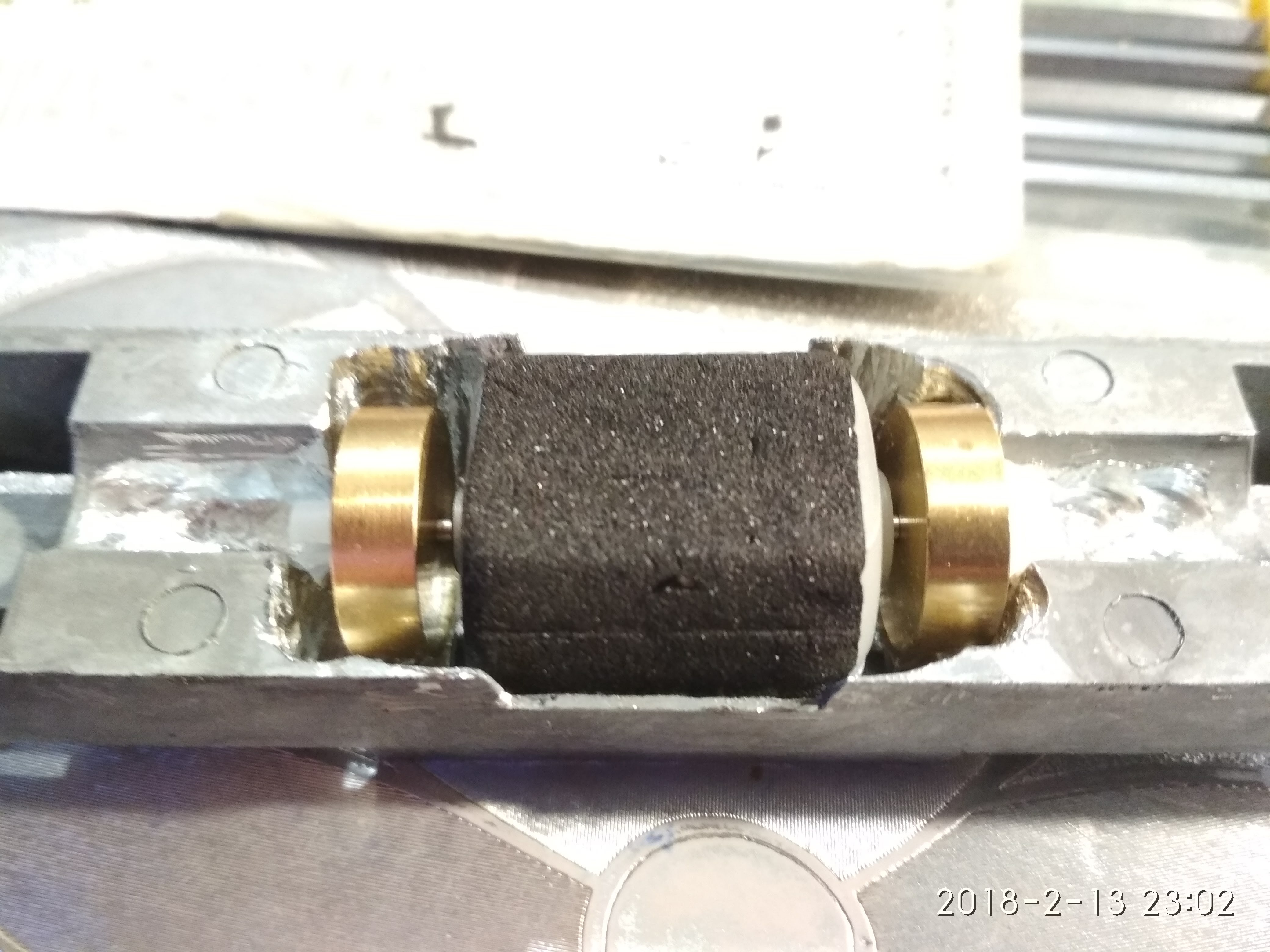 Балласт подпилил, карданы укоротил. Контактная планка стала на место. Контакт с мотором как на родном.