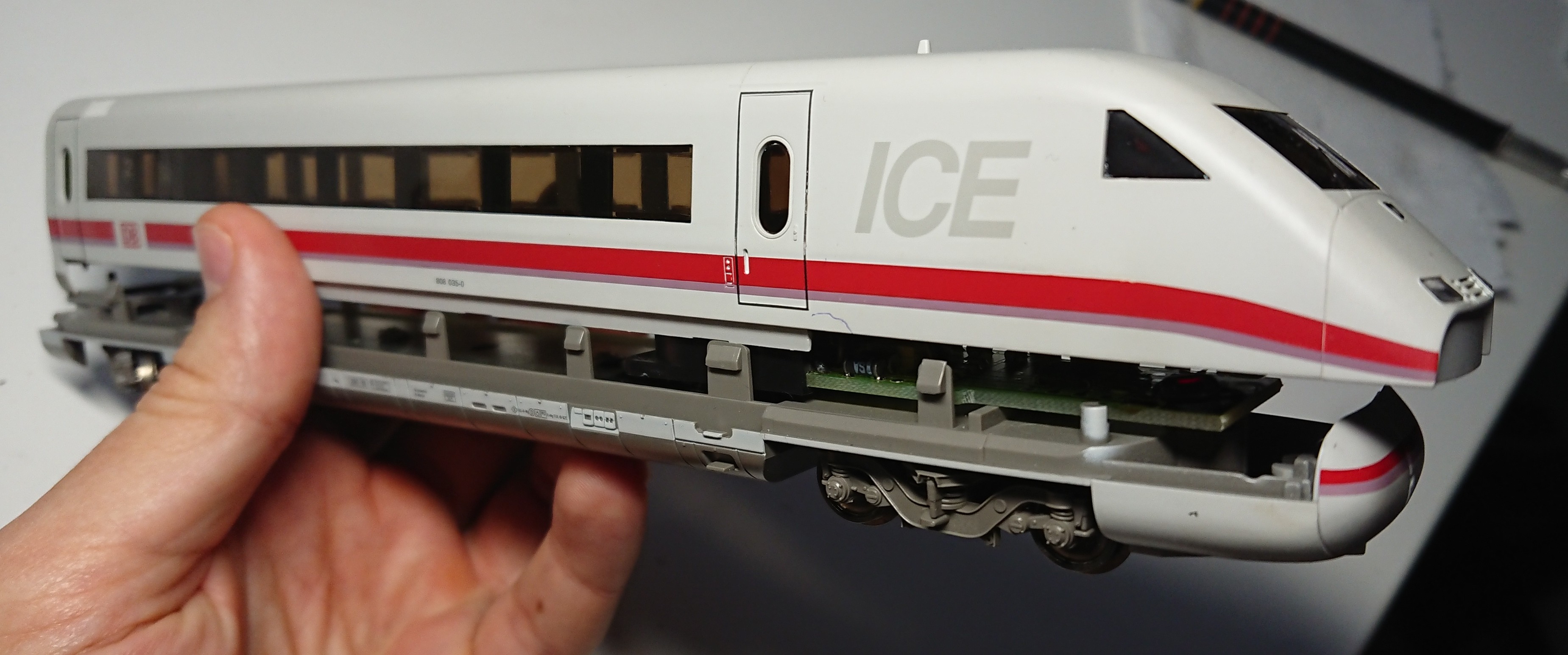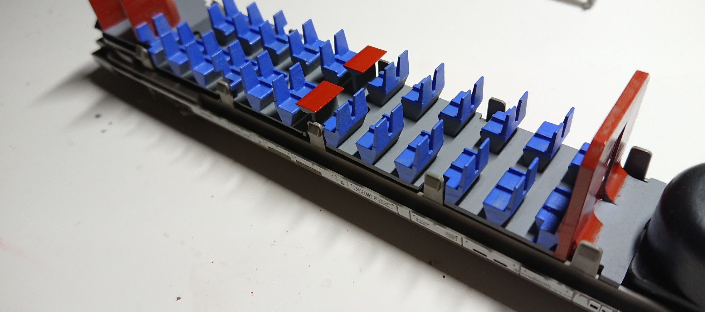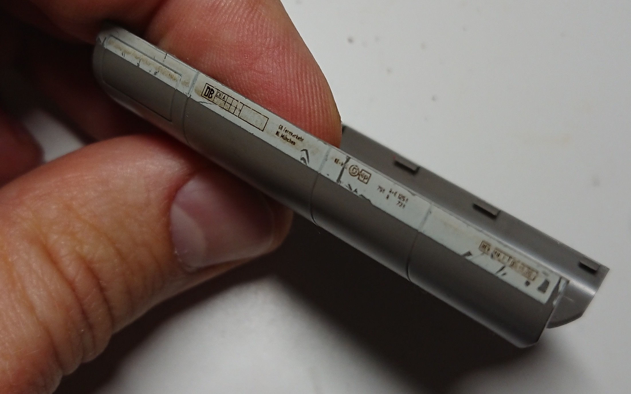 Заглушка с морды была с обломанными креплениями. Полистирол и эпоксидка решили вопрос: Копрус, редуктора, внетрянку - всё отмыл и отчухал. После высыхания собрал и получлось это: Далее предстоит работа над хвостовым вагоном. Он уже отмыт, но еще ожидает работ над ним. Дали будэ...