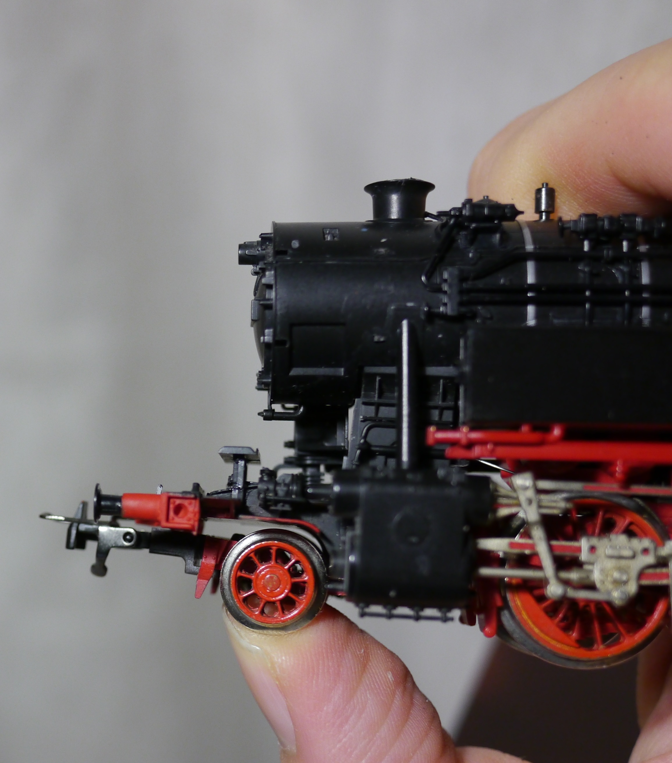 Насколько мне известно, 65 014 был аналогичен 015 (и, соответственно, 018). В том плане, что у него верх будки ("окошки" вентиляции) и водоподогреватель были другой системы (с 001 по 013 был установлен системы Кнорр). Это тянуло за собой другое расположение трубопроводов и насосов. Поэтому, собственно, Фляйшманн и выбрал этот диапазон номеров - достаточно было только поменять надписи на табличках.Muton писав: ↑28 листопада 2021, 15:54С реальными паровозами вообще ситуация интересная. Их всего-то 18 штук было, но каждый из них чем-то отличался от собратаУ меня на модели нанесен № 014 (его фоток не нашел), посмотрите в качестве примера 013 и 015.