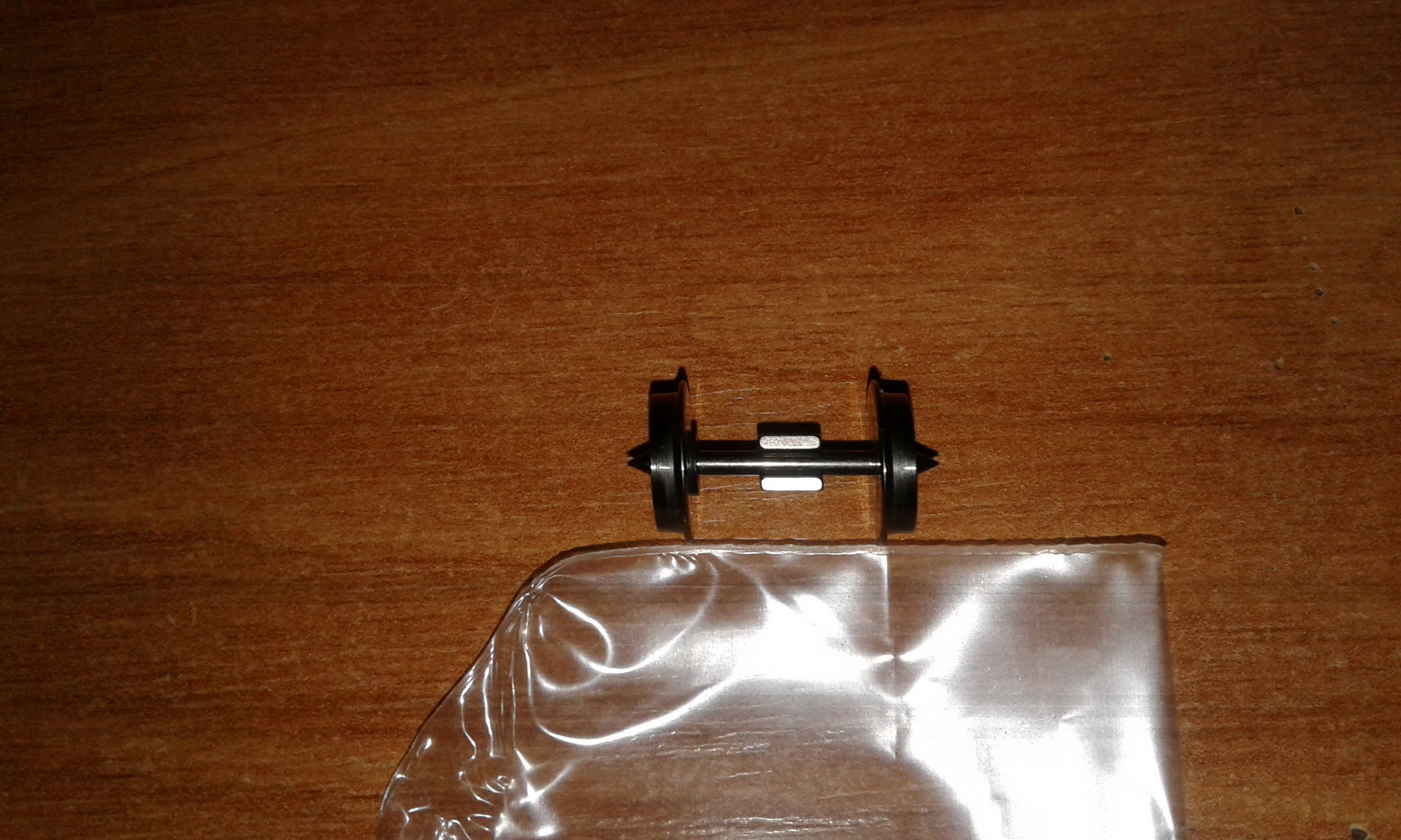 Для обеспечения токосъема применил односторонне изолированные колпары, таким образом, напряжение будет сниматься с рельс через оси и скобы-держатели. Для работы датчика Холла применил два маленьких неодимовых магнита 5х2х1 мм. Установил их на оси колпары с противоположных сторон и зафиксировал эпоксидкой.