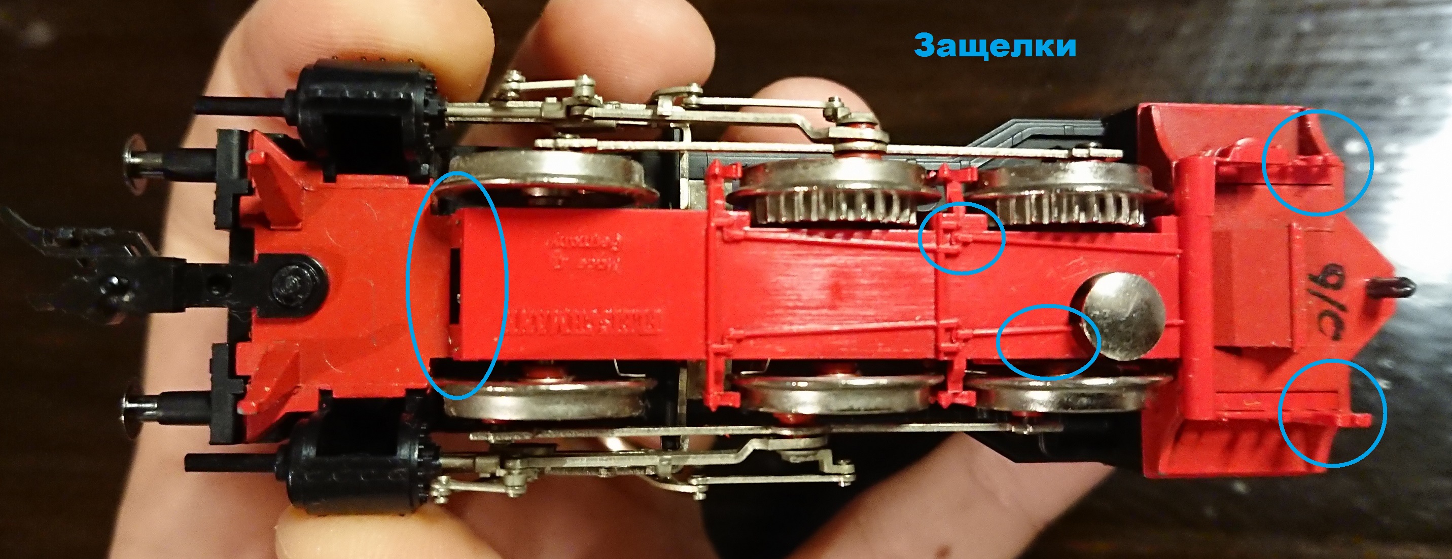 Чтобы зацепить свету на штатную функцию декодера, нужно снять днище: На фото отметил, где находятся защелки, поскольку у меня возникла некоторая проблема с теми двумя, что посередине. Надеюсь, - кому-то еще поможет. Поскольку я тут убил минут 20 пока снял...