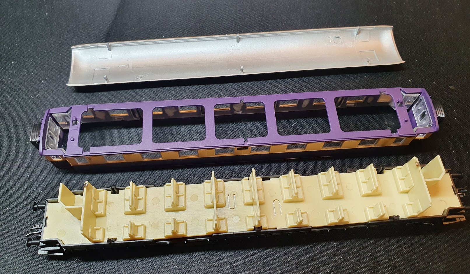Снимаем вагон с основания, аккуратно поддеваем защёлки крыши, и снимаем её