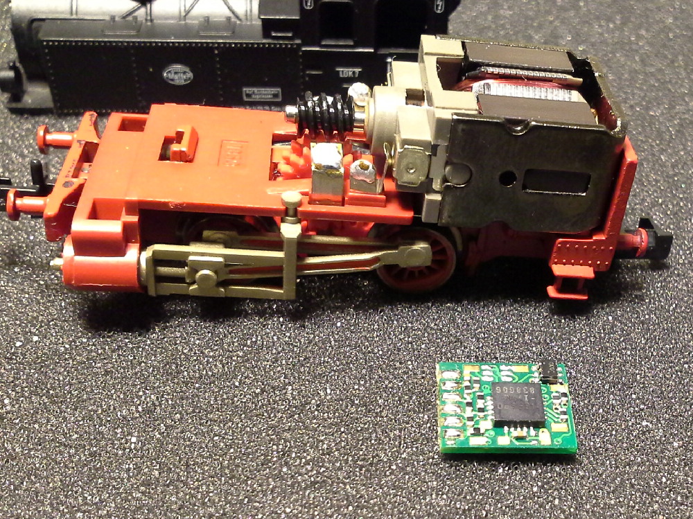 ... Даже при толщине провода 0,03 мм2 корпус не садился на место. При таких размерах каждая десятая доля миллиметра на счету! При окончательной сборке были "танцы с бубном": двадцати-тридцатикратное снятие/установка корпуса. В итоге им же (корпусом) повредило изоляцию, за счет чего возникло КЗ. Спалил один декодер (такое бывает, но это проблемы установщика, т.е. мои), заказчик получает модель за заранее оговоренные деньги. Фото не делал, уже было не до этого, но пришлось протачивать в пластиковой крышке двигателя углубления для укладки проводов.
