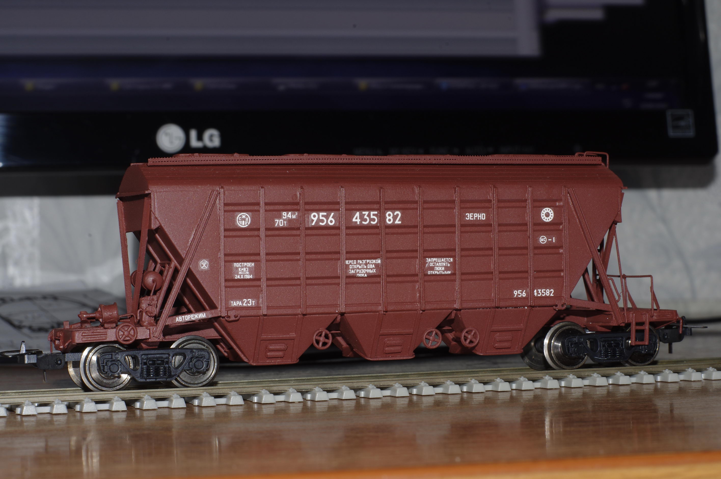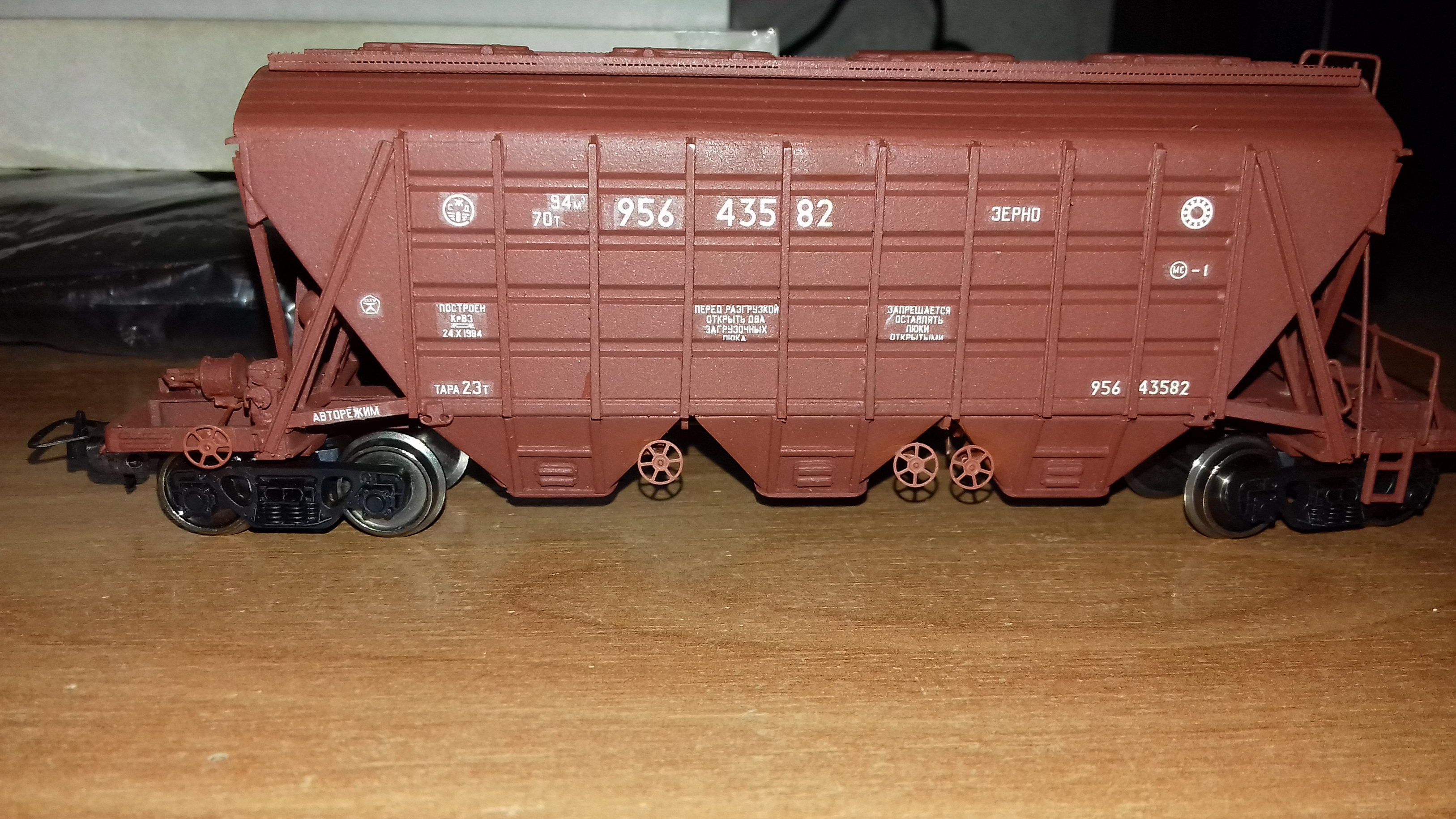 Сейчас же мог добавить небольшую доработку хоппера-зерновоза работы Виктора Орешко. у кого есть этих хопперы, знают, что тормозной и разгрузочные штурвалы отлиты из смолы и выглядят, скажем, не сильно аутентично - довольно толстые из-за отливки, четырехлучевые штурвалы, к тому же разгрузочные просто приклеены осями к бункерам без всякой имитации самого разгрузочного механизма. Решил это подправить, применив травленые штурвалы от Platinum Rail, припаяв их к осям из булавок. Также сделал имитацию трех разгрузочных рычажных механизмов.