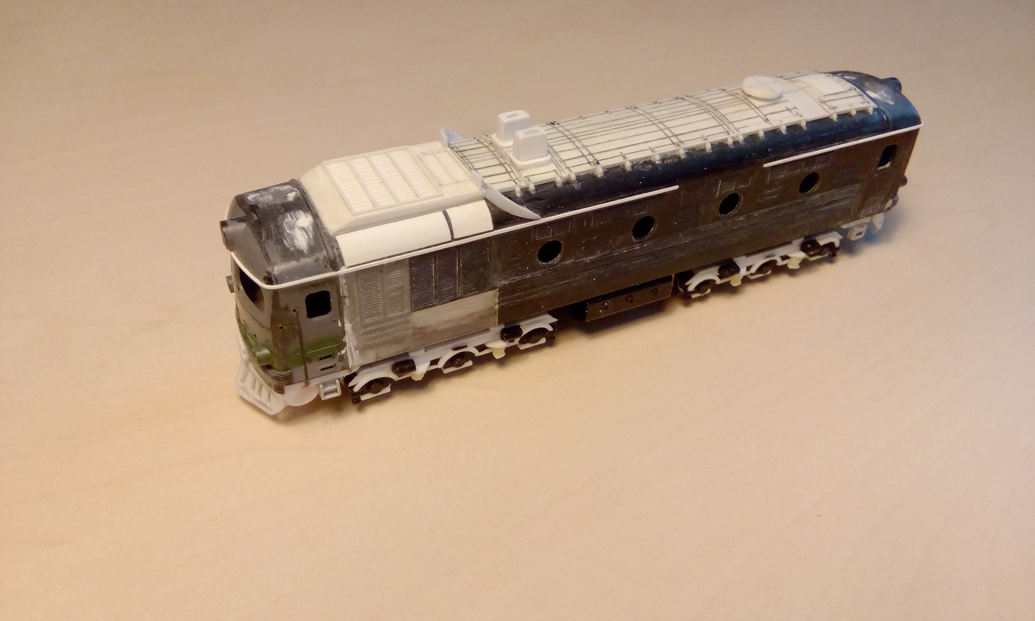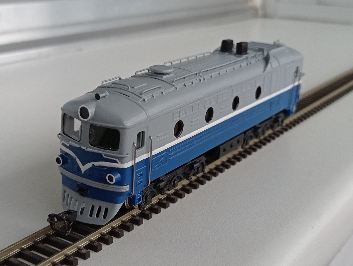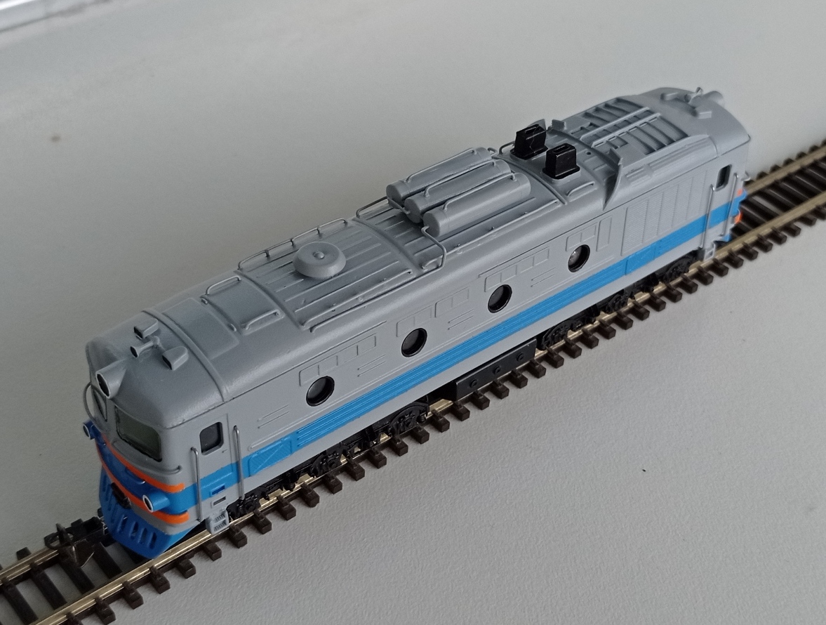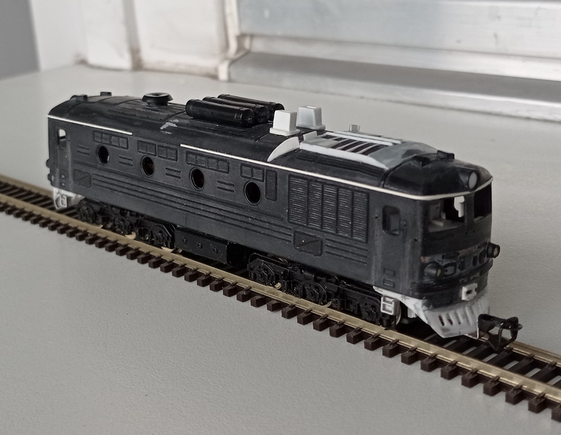 Про крышу я думал, но, во-первых, у меня слишком темный оттенок серого (было бы не очень), а во-вторых, захотелось оригинальный тепловоз без стыка цветов на границе с крышей, как у всех остальных.