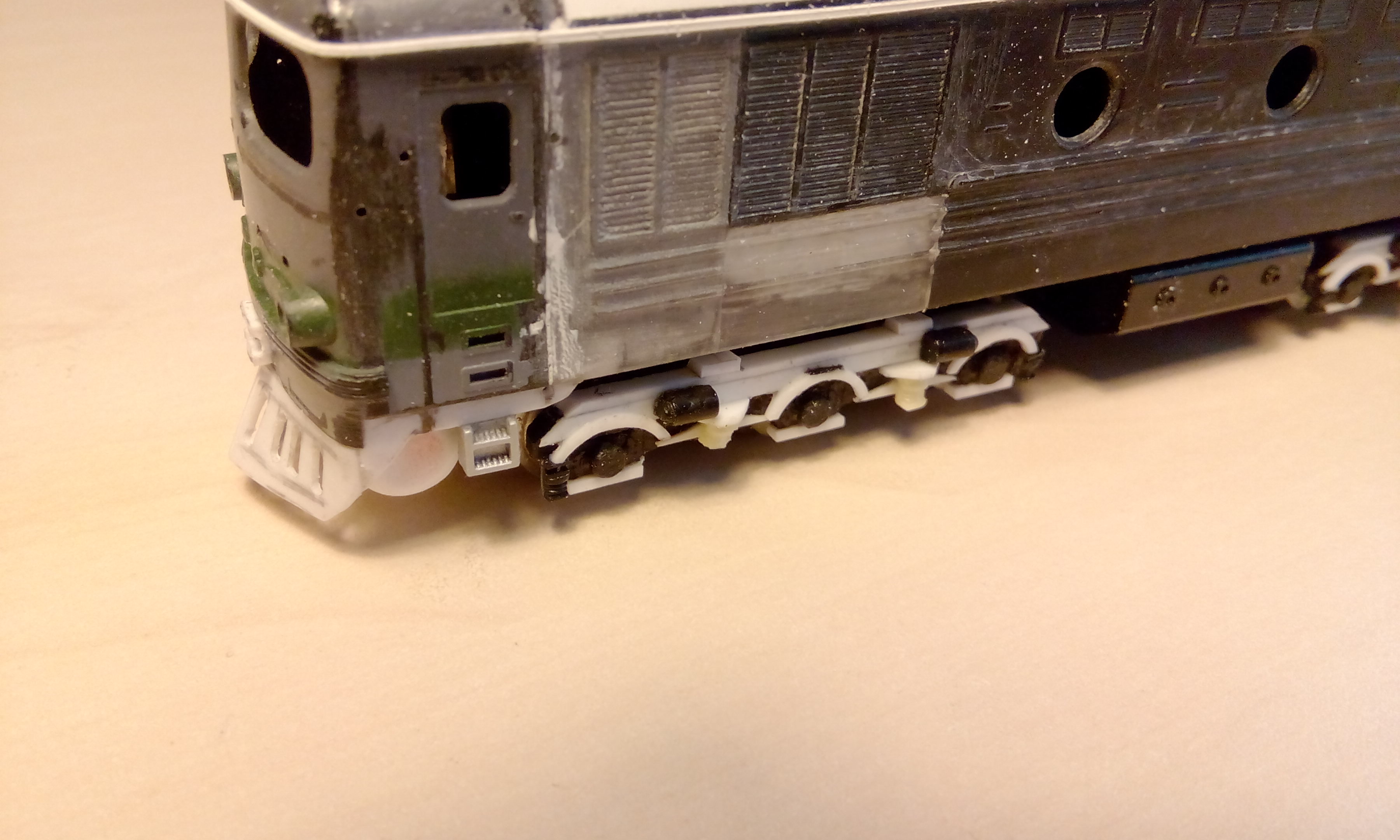 Я старался соблюсти принцип разумной достаточности. Чтобы вложенные силы давали ощутимый результат. На одном зеленом форуме кто-то перепилил ТЭП10 довольно сильно, вплоть до расчленения боковин на части и дальнейшего склеивания. Но результат, на мой взгляд, не стоит вложенных сил.