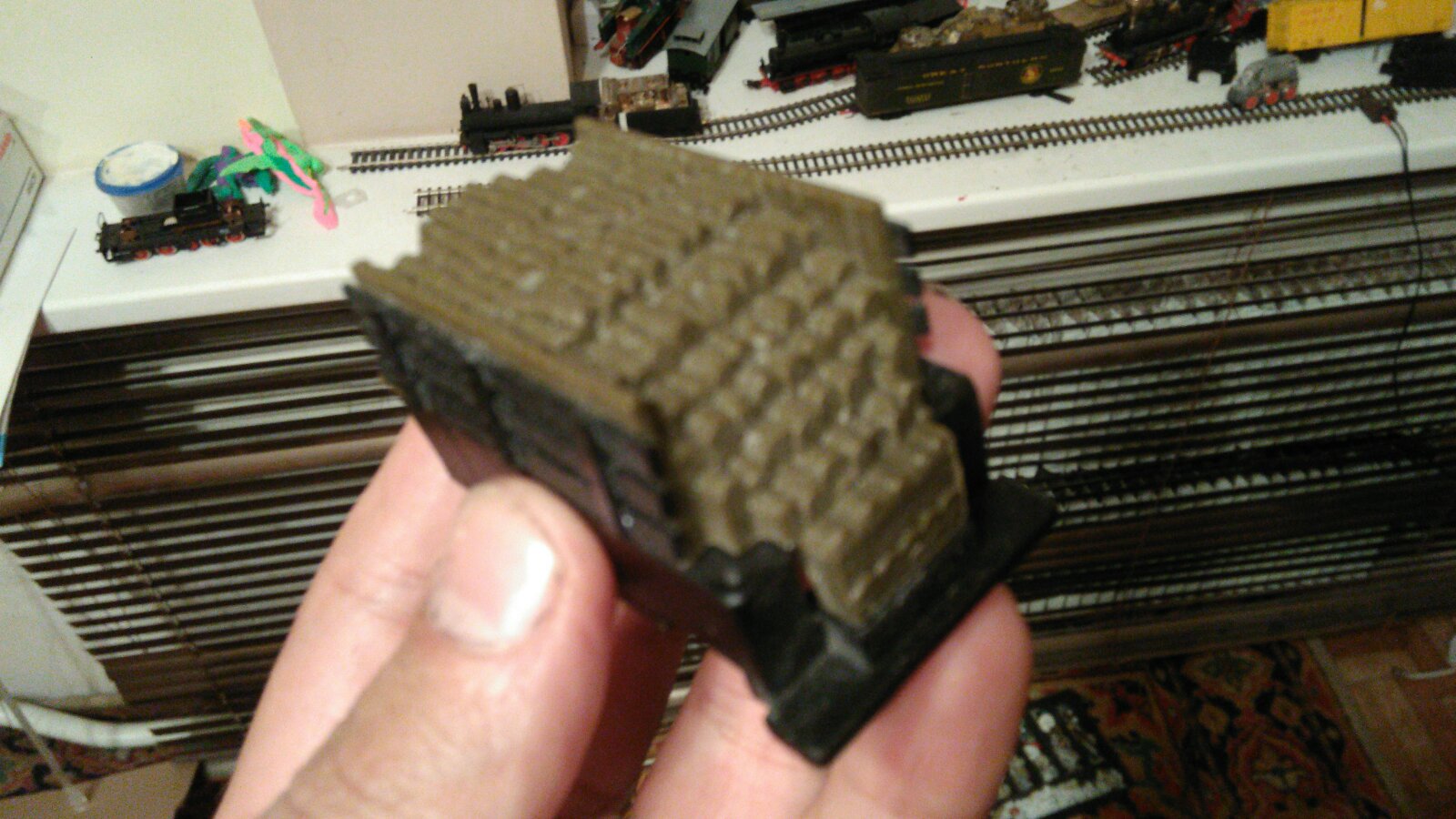 К сожалению идея с приводом в тендере не вышла. От нее отказался в последствии. Причина оказалась банальна, малая мощность двигателя. Малый сцепной вес и в добавок плохое поведение под нагрузкою.