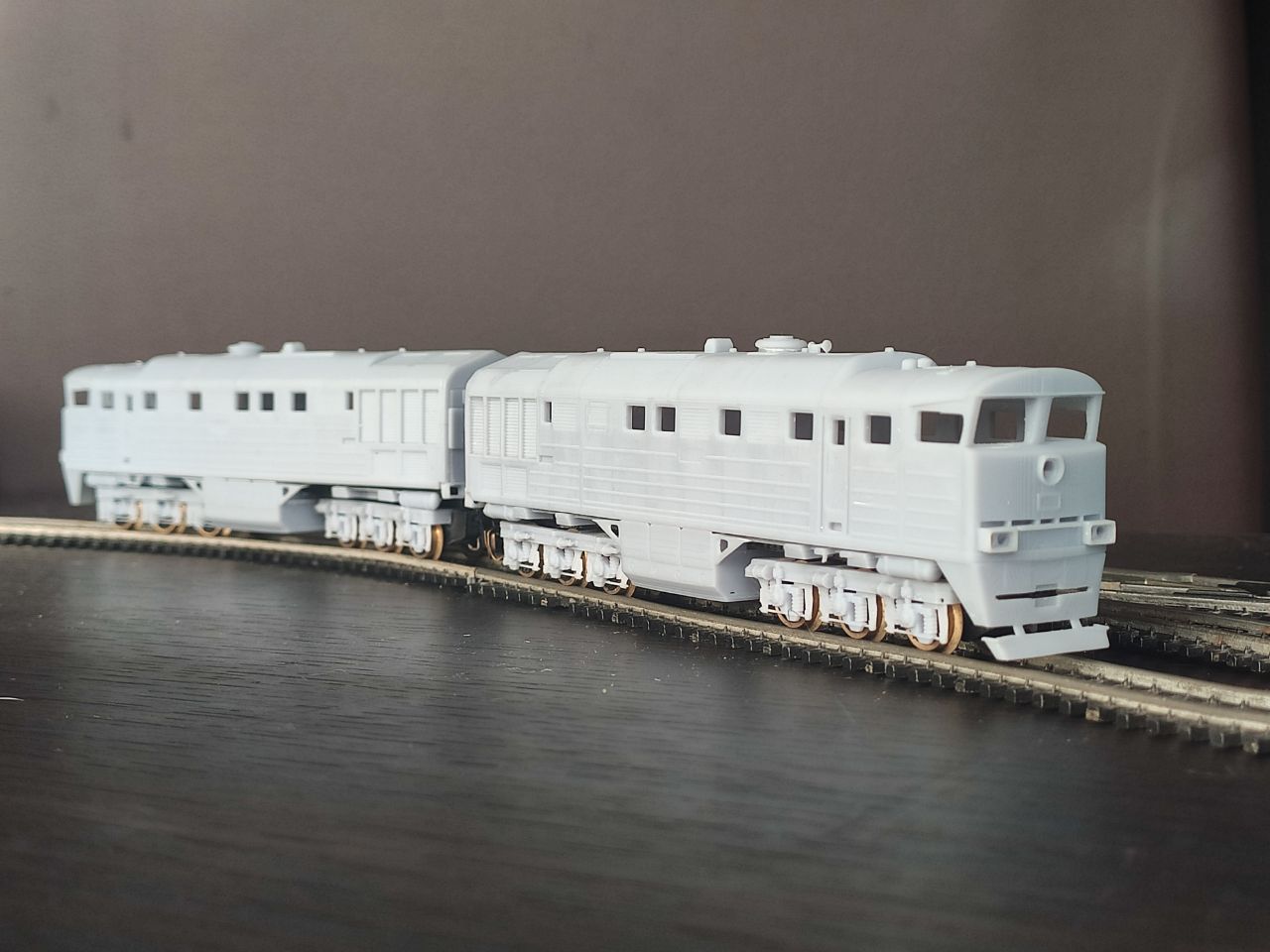 Глибока конверсія 130-го від БТТБ у 2ТЕ116. Поки лише перепил рами та примірка. Кузов та бак робив не я, матеріал - фотополімер. Кузов чорновий, у зеленому грунті.