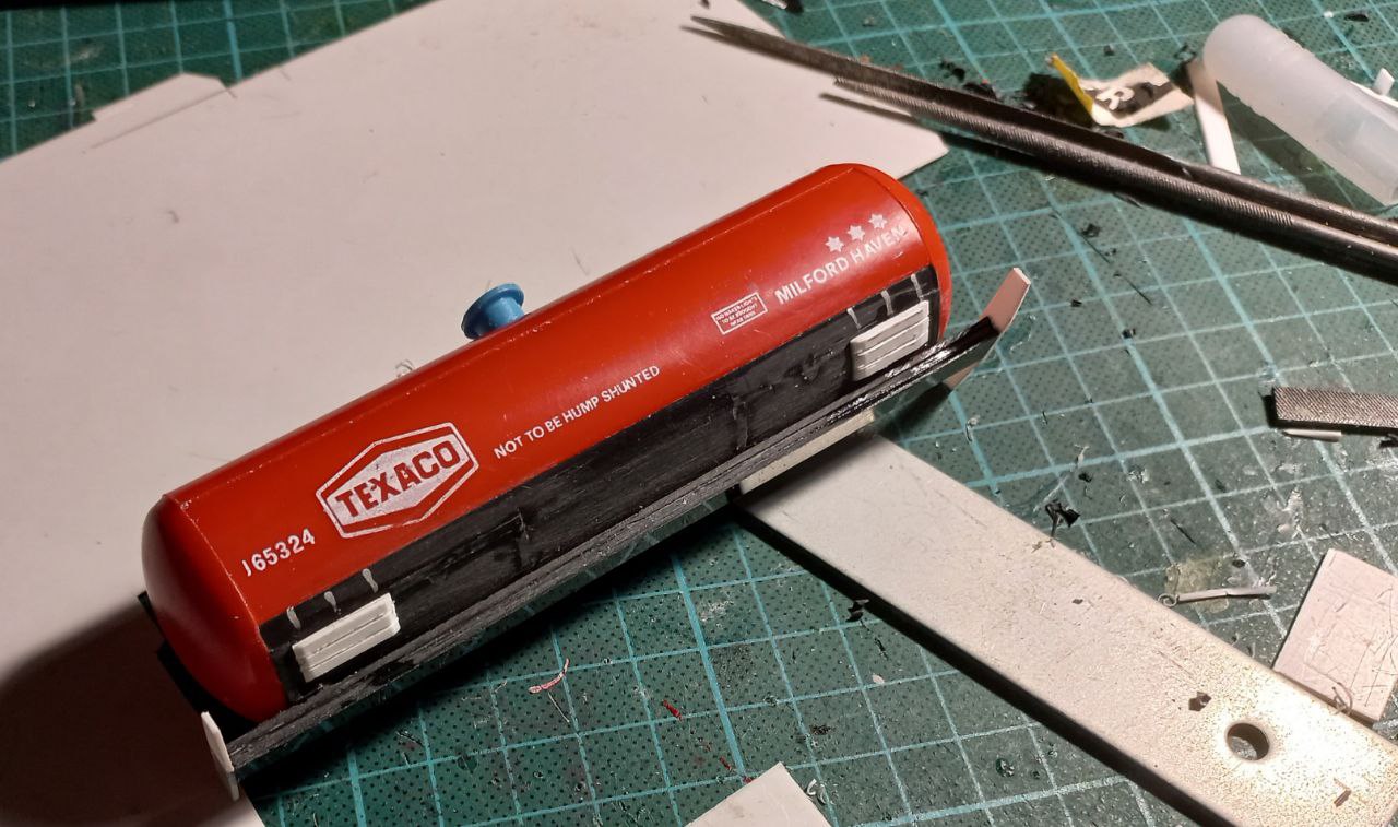 Вандалити сильно лок не хотілося, бо він гарний, і як не фарбуй все одно буде по мотивам. Отже зробив з декалей та полістиролу герби, які повісив на крапельку ПВА.