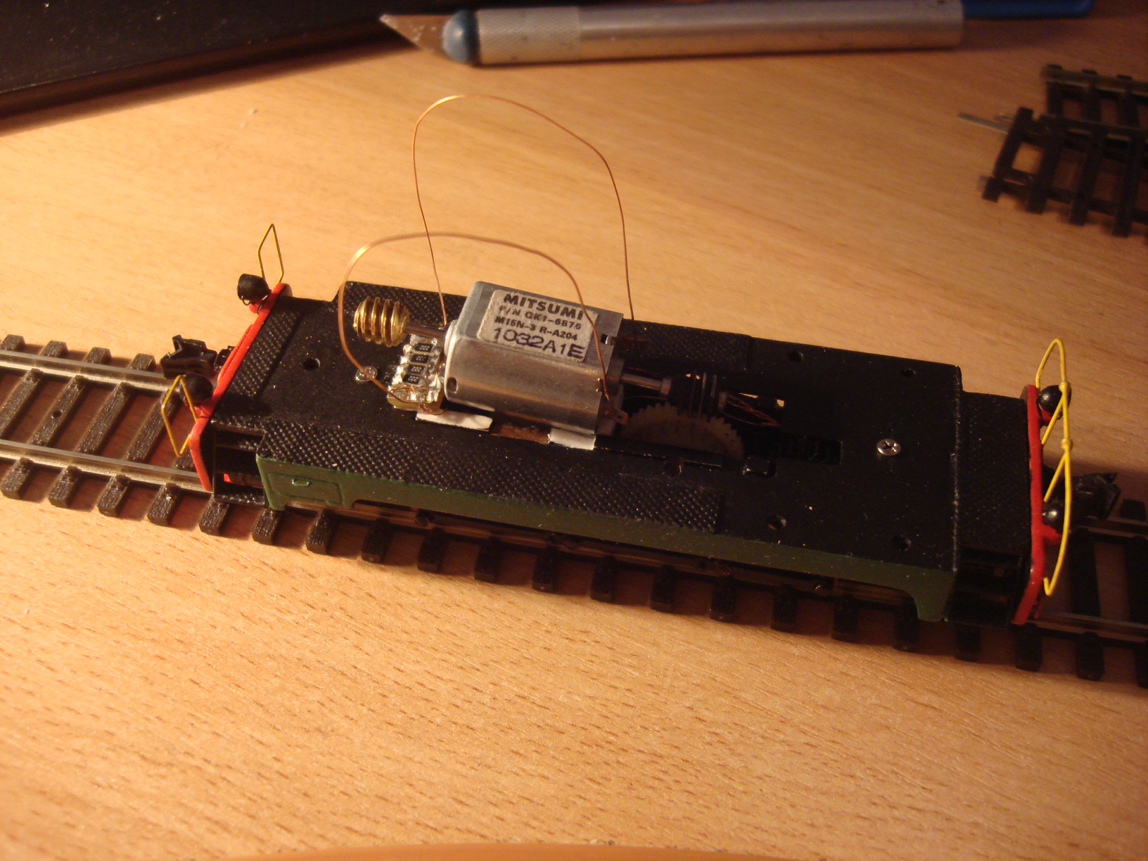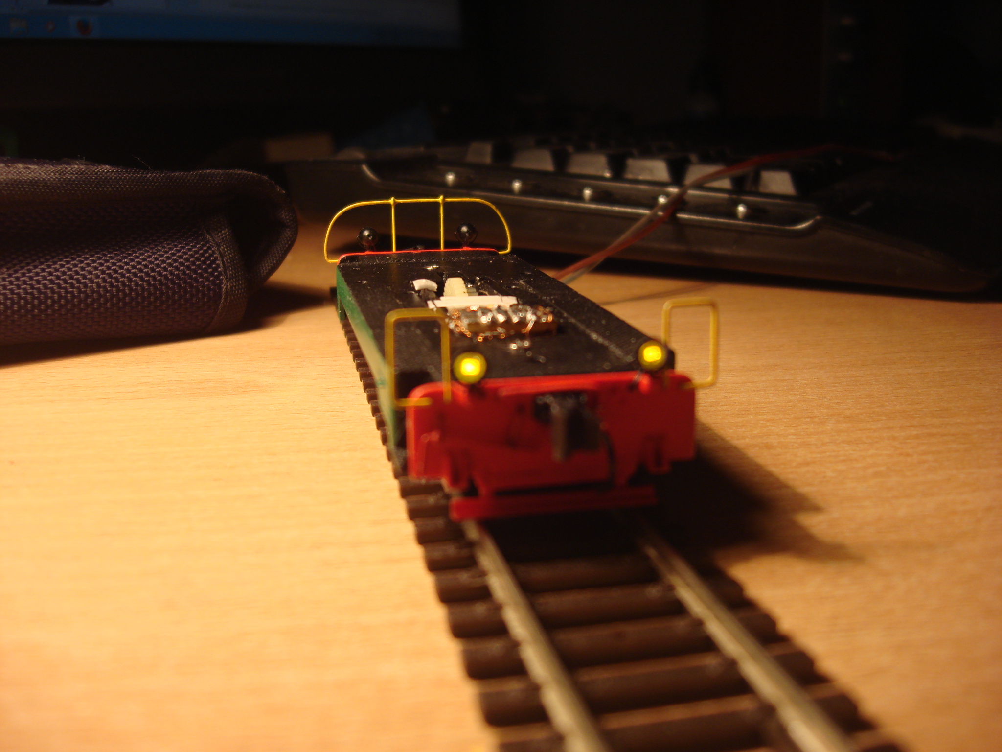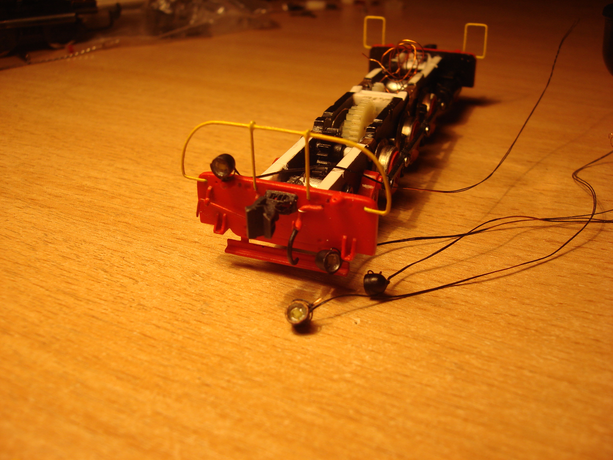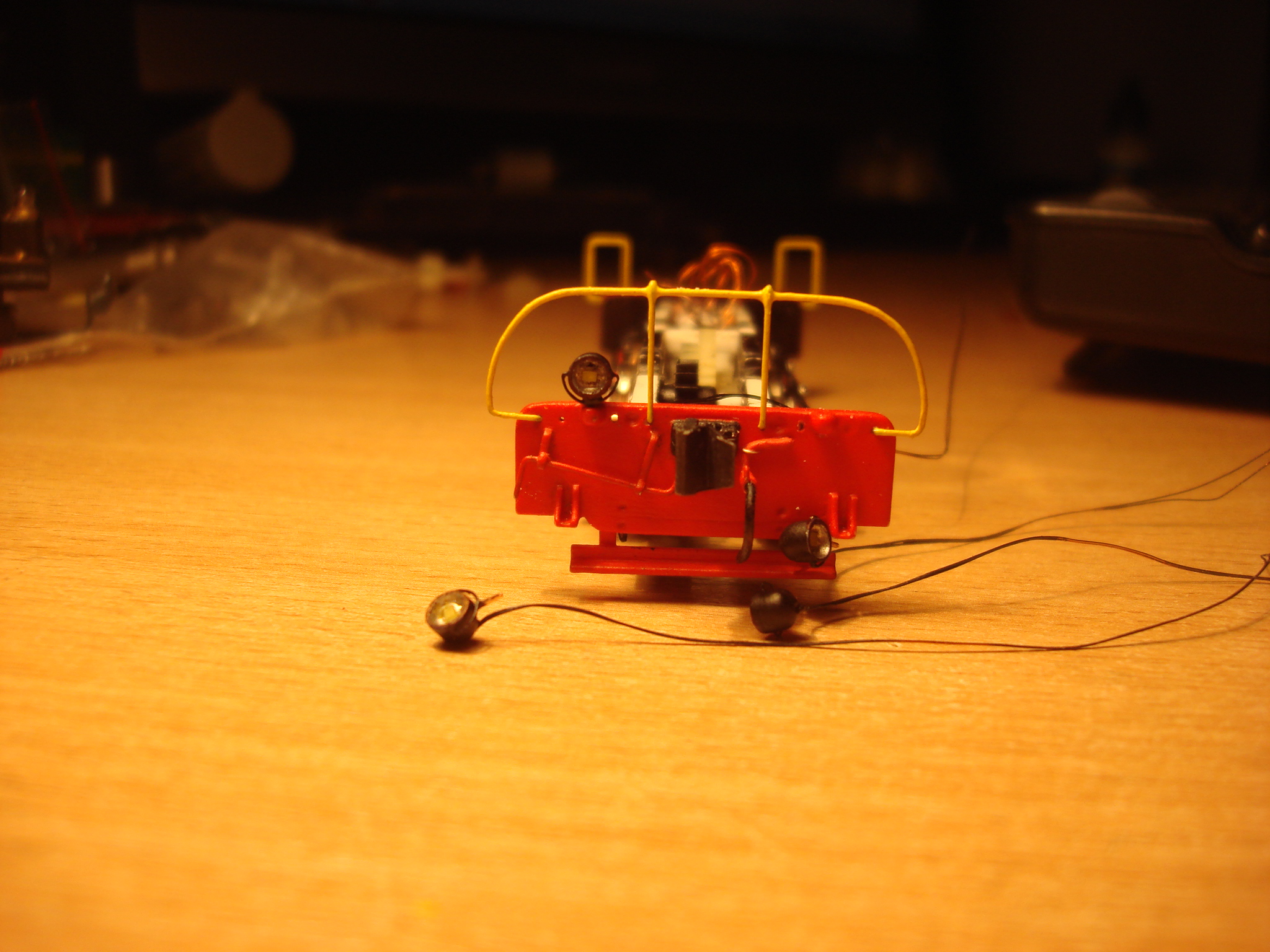 Подключил освещение. Пришлось покрасить диоды желтой краской. Теперь не так ярко светят и немного теплее оттенок. На очереди обмоторивание.